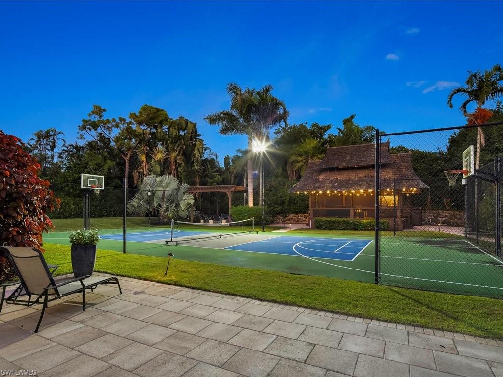 656 Hickory Road in Pine Ridge Estates captures the essence of refined Naples living—an expansive, fully developed two-acre compound where every element is designed for both grand entertaining and effortless everyday living. With over ten thousand square feet under air, this estate embodies sophistication, privacy, and resort-style comfort. Through stately glass doors, a dramatic foyer introduces interiors defined by natural light and understated elegance. The open dining room, complete with a wood-burning fireplace and seating for twelve, flows seamlessly into the great room and chef’s kitchen—a culinary showcase featuring Wolf and Viking appliances, bespoke cabinetry, a breakfast room, and a fully equipped bar. The primary wing is a private sanctuary unto itself, opening through pocketing glass doors to the courtyard pool. Dual closets, a spa-inspired bath with soaking tub and outdoor shower, a tranquil garden area, and a dedicated office complete this luxurious retreat. Six additional en suite bedrooms are thoughtfully arranged around the resort-style pool—complete with lap lanes, sunning shelves, and spa. The screened lanai offers an outdoor kitchen with gas grill, generous lounge seating, retractable projection screens, and a sunken fire-lit conversation pit designed for evenings under the stars. The two-story guest house extends the lifestyle experience with a home theater, billiards room, red-light sauna, HD golf simulator, and upper-level accommodations including a bunk suite and private guest quarters with balconies. Beyond, the rear grounds offer a pickleball and basketball court, Moroccan-inspired tiki pavilion, swim spa, fire pit, and pergola—creating an unparalleled setting for recreation and relaxation. Fully automated through a Control4 system, this property includes a full-house generator, dual wells, water filtration, home gym, and electric vehicle charging. 656 Hickory Road is a rare opportunity to own a true private resort in the heart of Naples’ most distinguished estate enclave.