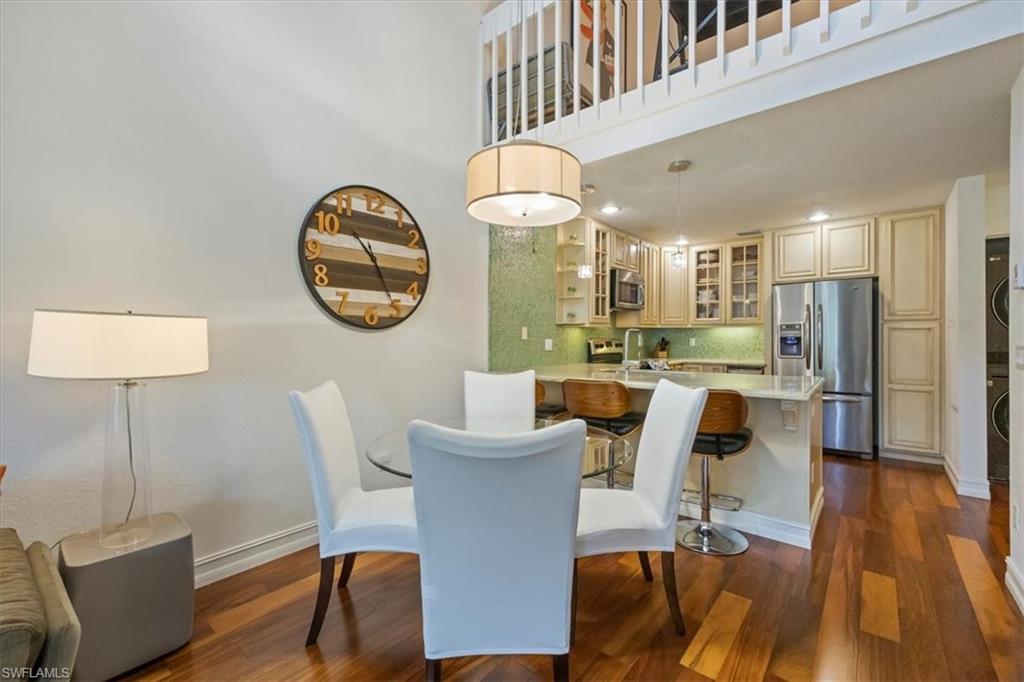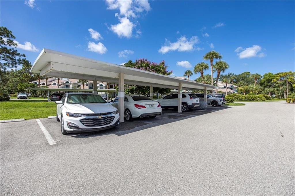 Discover the charm of Emerald Woods, one of Naples’ best-kept secrets, ideally located in the desirable Pine Ridge neighborhood. This beautifully maintained one-bedroom, 1.5-bath residence features soaring ceilings and a versatile loft—perfect for a home office, creative space, or extra sleeping area. This unit includes a covered carport and is being sold turnkey furnished, providing a convenient, move-in ready opportunity. The kitchen has been thoughtfully updated with stainless steel appliances, granite countertops, and a modern tiled backsplash, while both bathrooms have been stylishly renovated. The AC and hot water heater were both replaced in 2024 and an in-unit washer and dryer add everyday ease. Residents enjoy access to the beautiful community pool, spa, and social room! Just minutes from Naples’ pristine beaches, world-class shopping, and fine dining, this property combines comfort, elegance, and an unbeatable location. This is a wonderful opportunity for those who are seeking a year-round residence, seasonal getaway, or investment property.