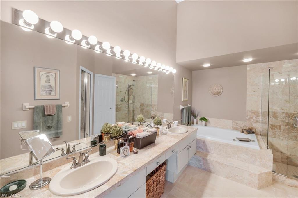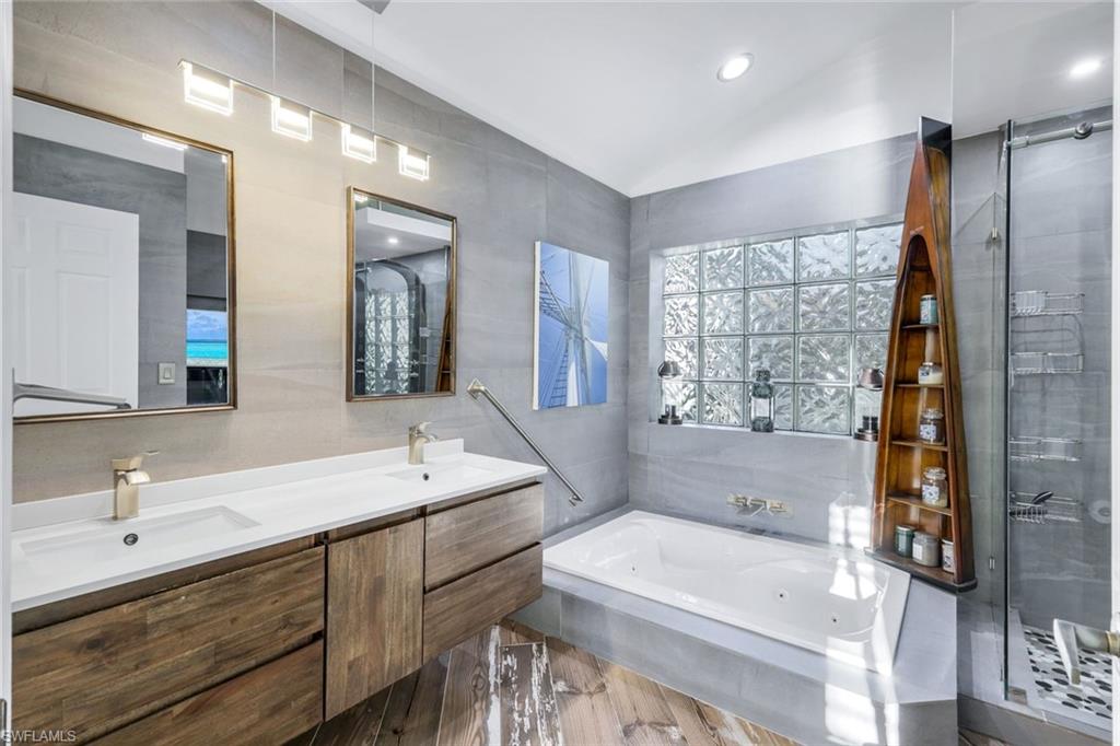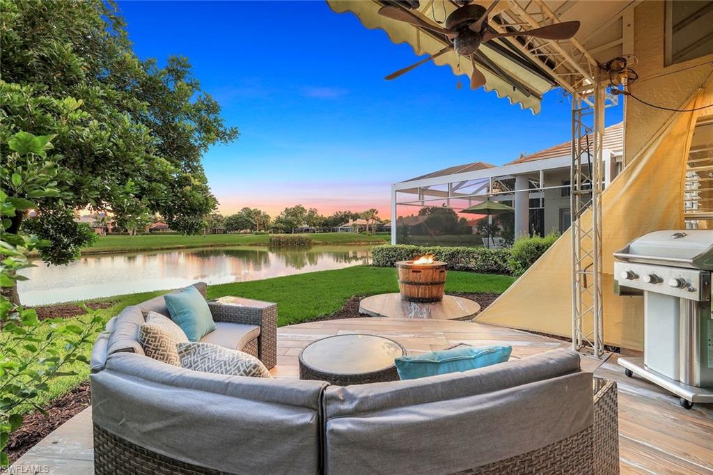 Can be purchased turnkey furnished!!!! Welcome to The Crow’s Nest, the coolest home in Quail Creek Village, and easily one of the most unforgettable homes in all of Naples. Strategically redesigned and rebuilt over nearly eight years, this 3 bedroom, 2.5 bath residence is the result of a true labor of love, combining contemporary chic design with a luxurious resort like atmosphere. One of a kind details have been carefully incorporated to create the ultimate lifestyle, starting in the modern chef's kitchen. Poured in place, thick concrete countertops, an induction hibachi cooktop with its own advanced vent hood, Samsung appliances, and extraordinary amounts of cabinetry check every box for both design and function. The open concept living space, made possible by demolishing and reconfiguring the original floor plan, is perfect for all sorts of gatherings and relaxed everyday living. Natural light floods the great room through plantation shutters, while crown molding and diagonally laid tile highlight the home’s blend of timeless and trendy elements. The newly built western facing addition is your canvas for a potential media room, stunning home office, or to be used how it is currently as a conversation sunroom where laughs are shared and views are enjoyed; this space can also be closed off from inside through French doors for true ‘al-fresco’ living. Onto the lakeside outdoor paradise, the tiled patio is fully loaded with furnishings, a gas firepit, a motorized sun awning, and electric shades and screens with sunsets even more remarkable than the gorgeous interior. The owner’s private sanctuary suite features a spa inspired bath with dual rain showerheads, a soaking jet tub, floor to ceiling tilework detail, a European style bidet, and even an electric fireplace. Guests enjoy equally inviting accommodations with two bedrooms and an eloquent bathroom setup with double showers, scalloped accent wall tile, a floating vanity, and ample closet space. The renovation’s new golf cart garage provides room for two cars and a golf cart as well as the home’s extended paver driveway. The Crow’s Nest comes complete with curated furniture, original one of one artwork, decor, kitchenware, televisions, fireplaces, and yes, even the golf cart. Exclusively located within the Quail’s Nest enclave of Quail Creek Village, you will enjoy access to a private cabana and pool steps away which only 53 properties can take advantage of. Homeowners also have the privilege of Social Membership included in the fees with unlimited summer golf, reciprocal play, bocce, tennis, pickleball, and social events at the redone clubhouse. With a proven history as a seasonal rental, this could also be an exceptional opportunity for investors seeking upside potential. Bring your clothes, toothbrush, and step into an unparalleled, resort like lifestyle. EXTENSIVE UPGRADE LIST IN SUPPLEMENTS!