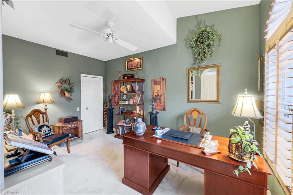 Welcome to this beautifully maintained “Aberdeen” model, nestled in the quaint golf community of Quail Creek Village in North Naples. From the moment you enter through the double doors into your private courtyard, you’ll be greeted by a bright, warm, and inviting atmosphere. The first floor features a spacious owner’s suite, a den/4th bedroom with a Murphy bed, a large formal dining room with custom built-ins, an expansive gathering room with two story ceilings, fireplace, and a pocketing sliding glass door to the lanai. The eat-in kitchen is generously sized, perfect for family meals or entertaining. The second floor offers two additional bedrooms, full bath, loft, and large air conditioned storage room/closet. FULL HURRICANE PROTECTION including electric roll down & accordion hurricane shutters throughout. The private lanai is an entertainer’s dream, featuring an outdoor kitchen and dining area, as well as a heated saltwater pool (built in 2016). The tranquil views of the golf course and lake make this outdoor living space a serene retreat, offering complete privacy. NEWER ROOF (2018). BRAND NEW 5 TON HVAC (JUNE 2025) W/ DEHUMIDIFIER. BRAND NEW SALT WATER POOL SYSTEM (JUNE 2025). Quail Creek Village is an intimate golf community of just 325 homes, surrounded by a lush 18-hole executive golf course, offering a peaceful and private living experience. The community amenities include a clubhouse (currently undergoing renovations), a resort-style pool and spa, dining services, a bar, and for the sports enthusiasts, bocce courts, pickleball, and tennis. As a bonus, the home includes a Social Golf Membership with ownership, while an Equity Membership is optional with no waitlist. The relaxed clubhouse offers tasty food for lunch seven days a week and themed dinners on Tuesday nights. Members also gather by Bogeys - a poolside pub on a shaded patio overlooking the golf course. Bogeys is popular after golf, swimming or tennis for its friendly service, good food and your favorite drink choice seven days a week. Social Committee members also offer special events throughout the year to dance and dine the night away! Come see what paradise living is all about in Quail Creek Village. Immediate occupancy is available, so don’t miss out on this breathtaking home!