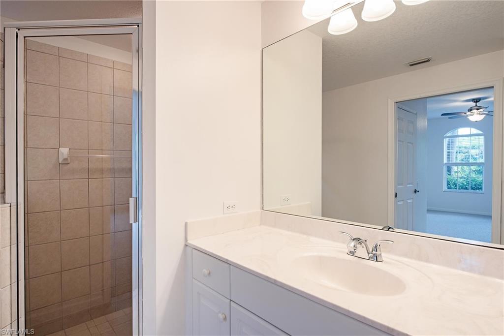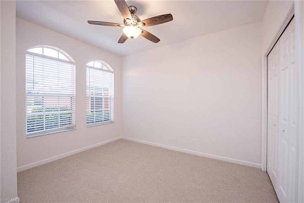 It’s not every day that a 3 bedroom, first floor end unit with sweeping golf course views becomes available, especially one this bright, open, and move in ready. No stairs to worry about in this lovely split floorplan where you’ll find a spacious eat in kitchen that offers ample room for cooking, entertaining, dining, and pantry storage! Plus, the newly installed stainless steel appliances bring a modern touch to the heart of the home. The bathrooms have already been made stunning for you with the owner’s suite featuring a double vanity, custom mirrors, a huge walk in closet, and an oversized shower. The two guest bedrooms, one tiled and the other newly carpeted, can easily be configured as a den or home office, providing flexibility for any lifestyle. The long golf course views are best enjoyed from the screened lanai, protected by electric storm shutters. Beyond the condo, Quail Creek Village boasts a magnificently renovated clubhouse with a vibrant social calendar and one of the most enjoyable and unique golf course designs in Naples. A social membership to the club is included in the HOA fees with affordable golf dues optional and available with no waitlist.