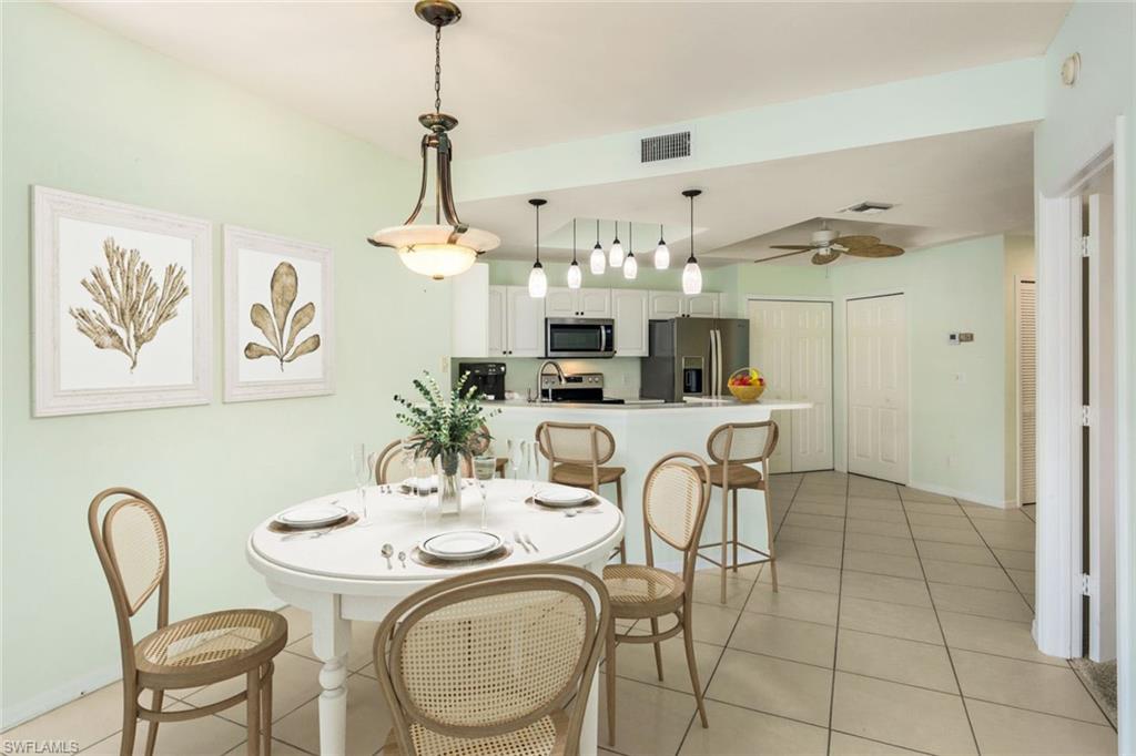 This gorgeous condo has been updated with tile floors throughout, all new kitchen cabinets and stainless steel appliances, new countertops, and new bathrooms. Situated in the highly sought after North Naples community of Quail Creek Village you are minutes to dining, shopping, community parks, beaches and close to I-75. This end unit is light and bright, lives like a single family home and is in a strong school district in Collier County. Residents enjoy golf privileges, a clubhouse with dining, pool, tennis, and a busy social calendar—all with maintenance-free living. HOA fees include landscaping, exterior care, cable, internet, and access to resort-style amenities. This condo and community have it all, it's just waiting for you!!!