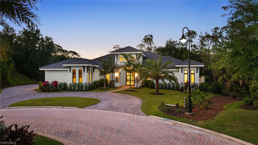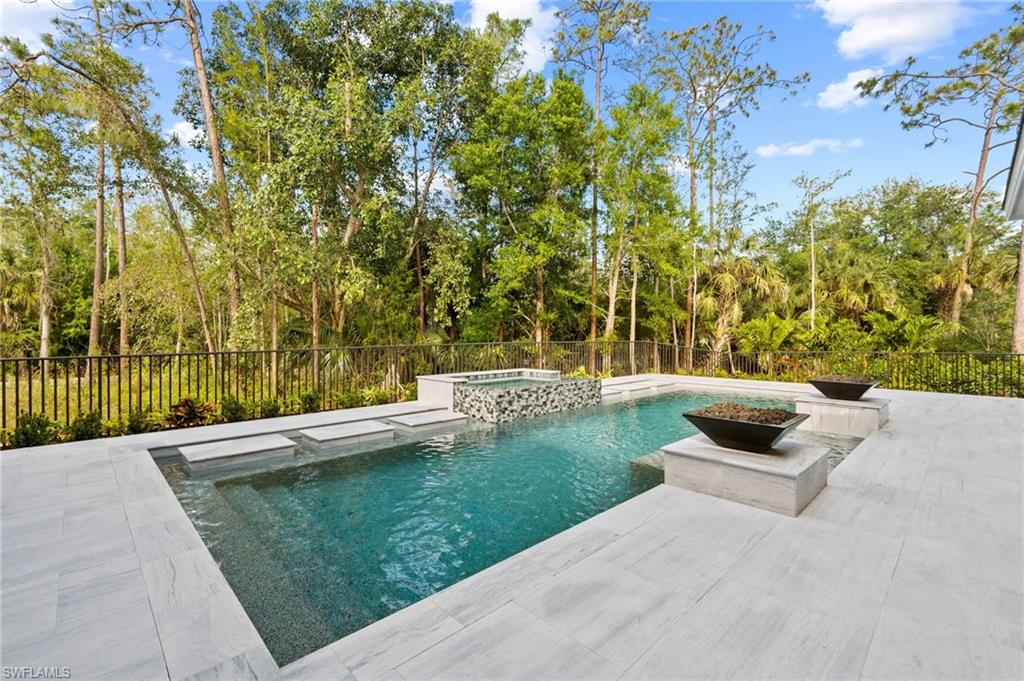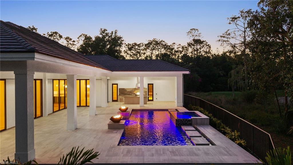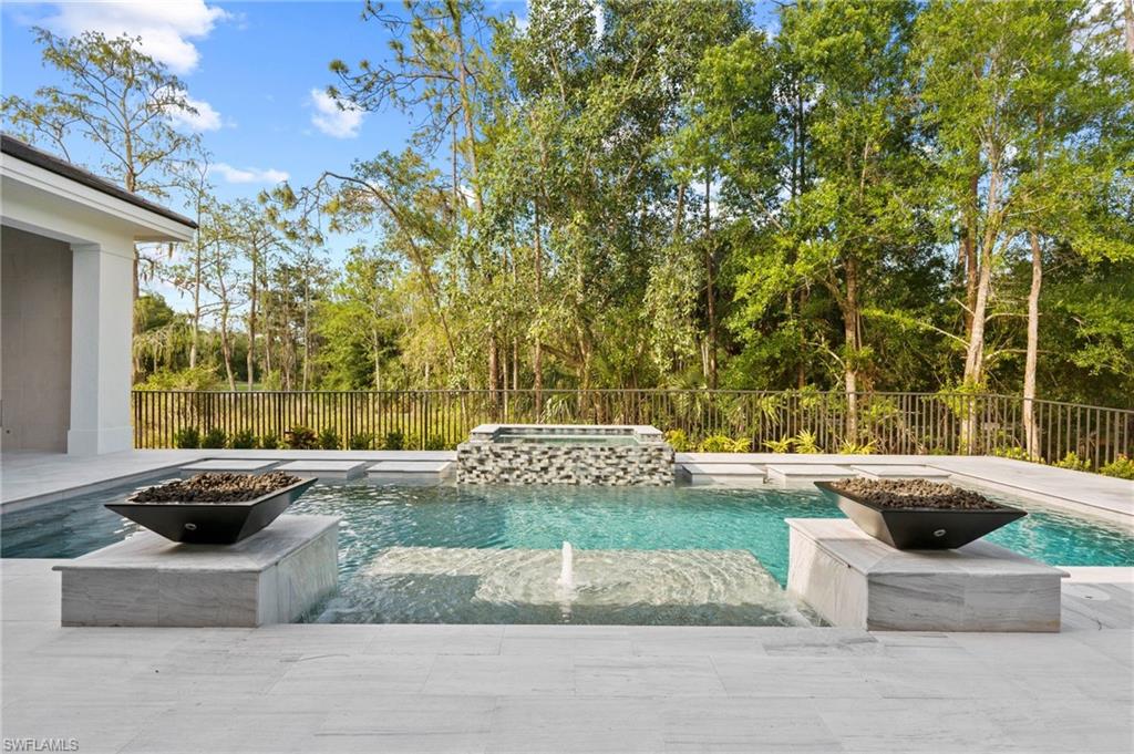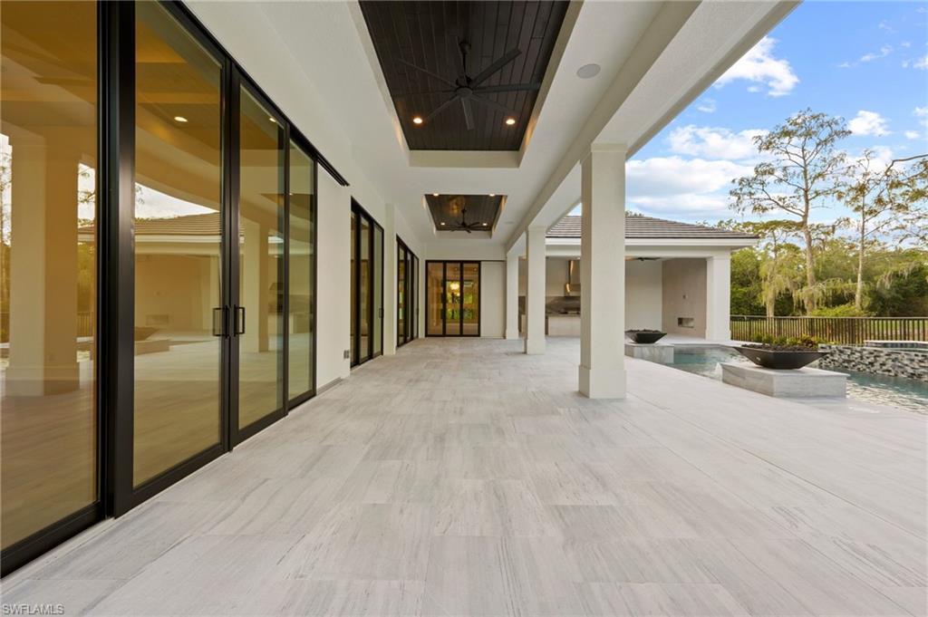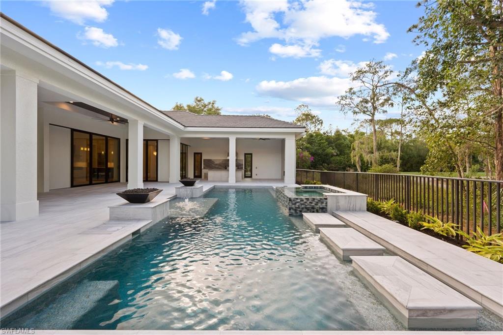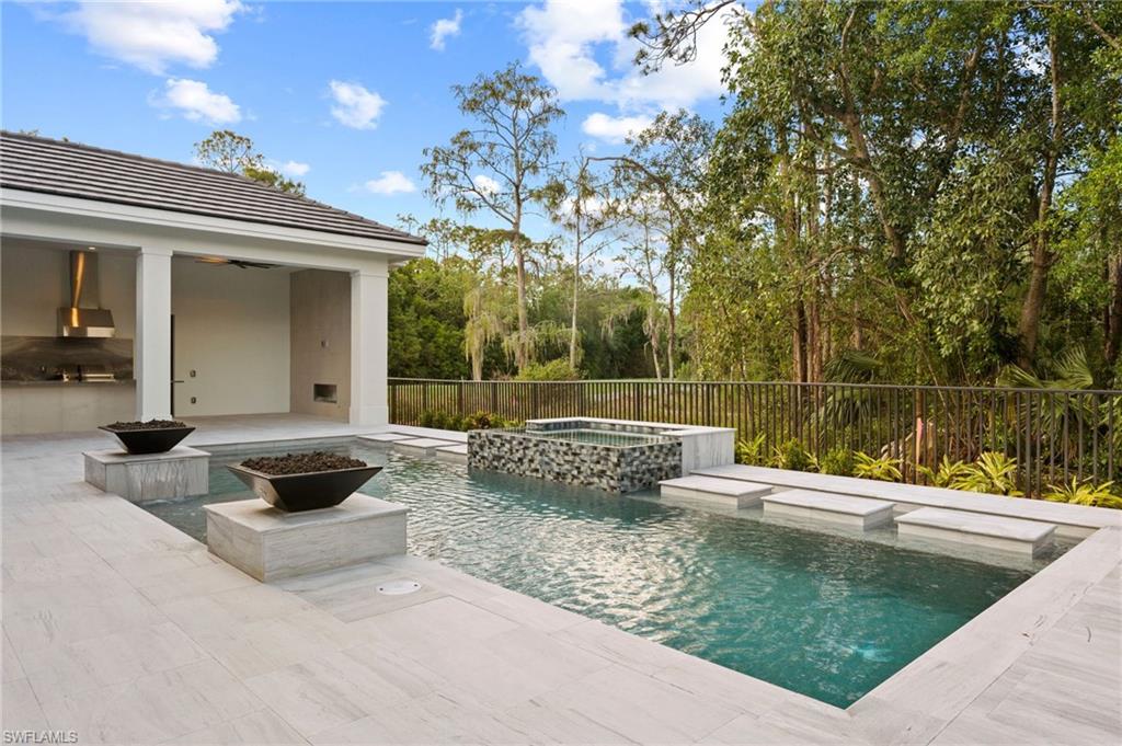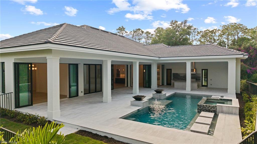TRANSFERABLE GOLF MEMBERSHIP AVAILABLE! Skip the golf wait list and enjoy an immediate golf membership with only a transfer fee. Be the first to live in this New Construction home built by "Florida Lifestyle" and enjoy privacy at the end of a cul de sac while still having a golf course view. The split floor plan features four en suite bedrooms and the zen-like primary suite offers large custom walk-in closets and a spa-style bath with large soaking tub, custom walk-in shower with multiple shower heads, dual vanities, and two separate water closets. The adjacent study is anchored by a custom shiplap wall and provides access to the lanai while the open concept of the main area of the house flows from the gathering room with coffered ceilings and custom lighting, into both the kitchen and dining room. An elegant, mirrored wall in the dining area is a perfect aesthetic and the gourmet kitchen makes entertaining a snap with dual ovens, Thermador appliances, and an ample breakfast bar.  Expanding the kitchen’s efficiency is a magnificent butler's pantry fully equipped with a second dishwasher, sink, microwave, wine refrigerator, a large walk-in pantry, and plenty of storage. Hurricane-rated sliding doors open to a spacious covered lanai featuring an outdoor kitchen and fireplace. Relax beside the gorgeous pool, lounge on the sun shelf, soak in the spa, and enjoy the tranquil water and fire features. Amenity-rich Quail West, a hidden gem in North Naples, holds the exclusive Platinum Club® status which is the pinnacle of recognition for Private Clubs around the world recognizing the top 1% globally. The world-class amenities include two championship golf courses, elegant clubhouse with a variety of dining options, a racquet sports complex, bocce courts, state-of-the-art fitness center, full-service salon/spa and unending activities for every interest.