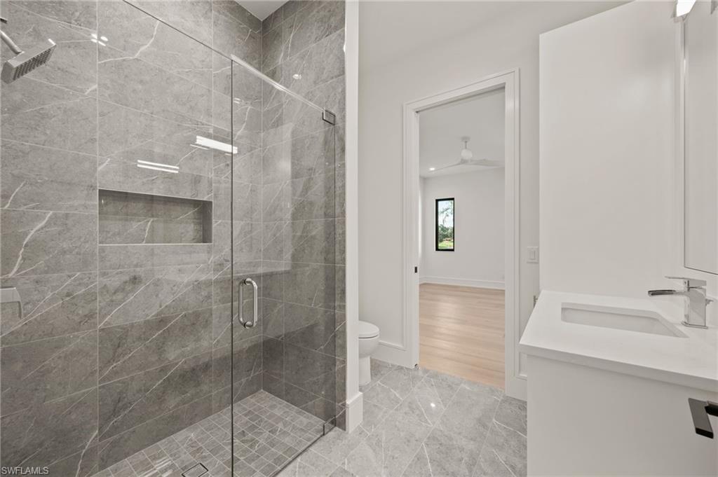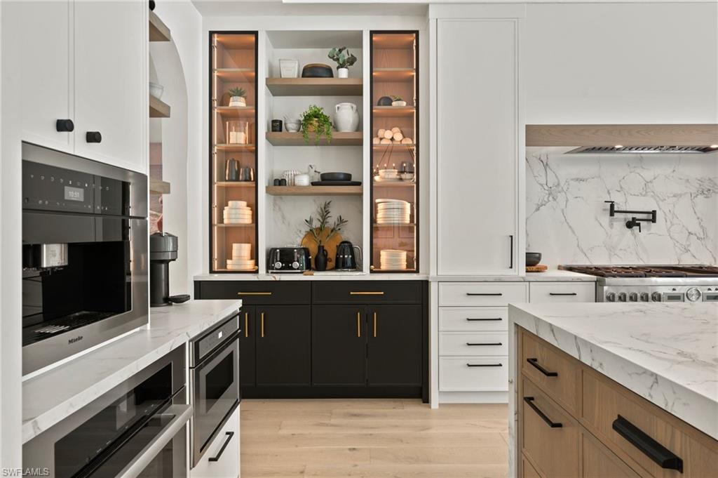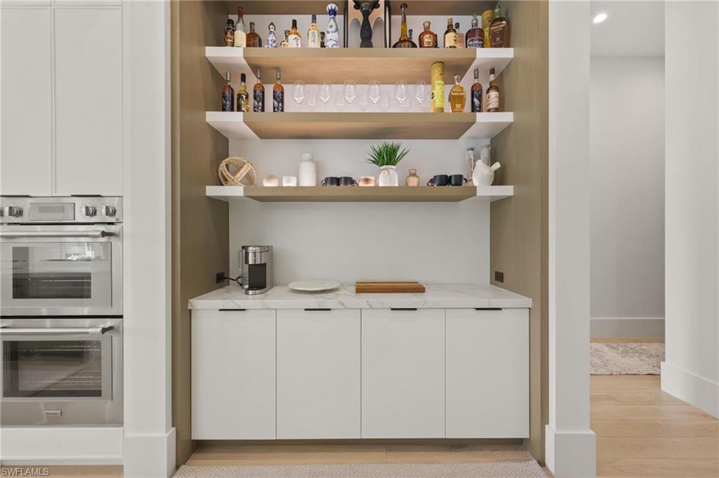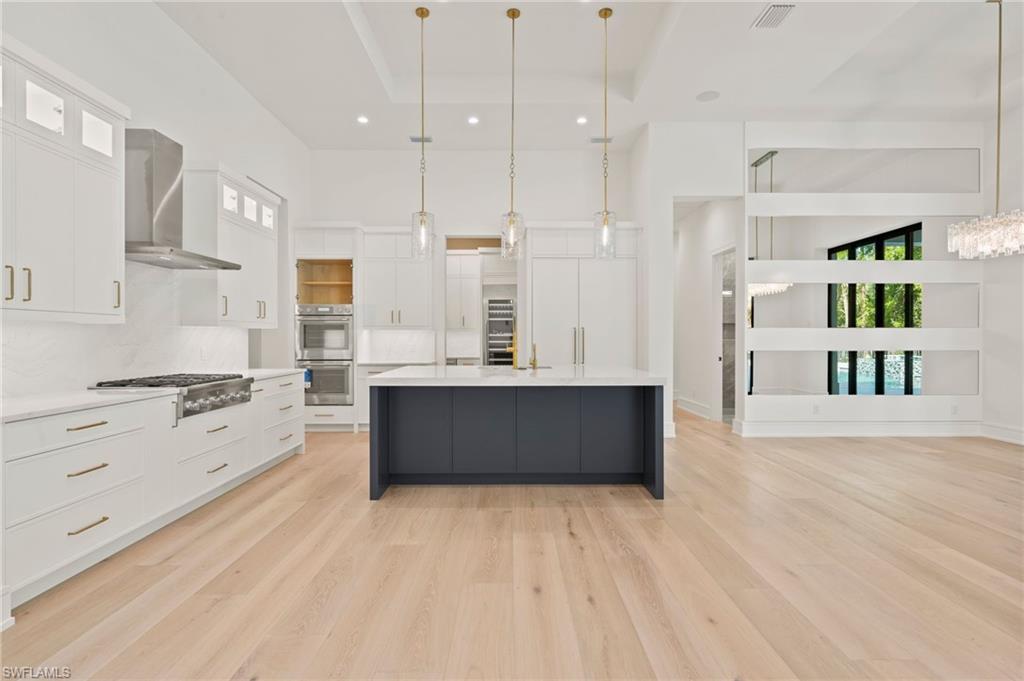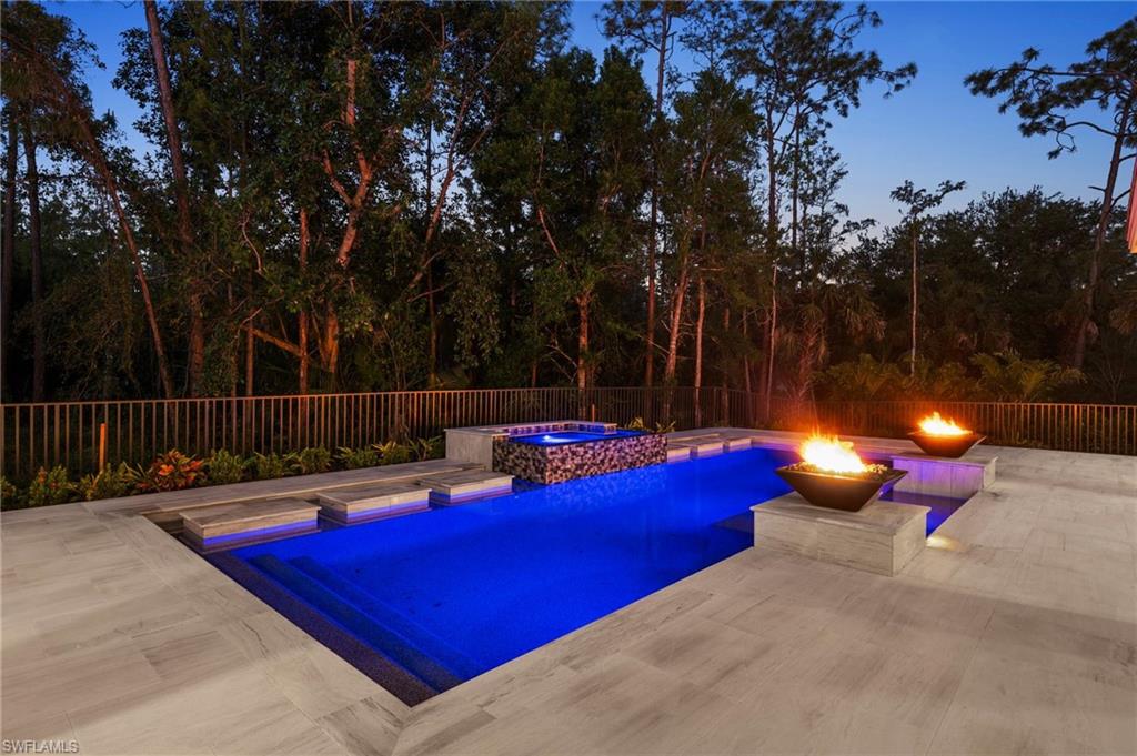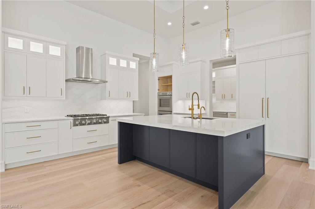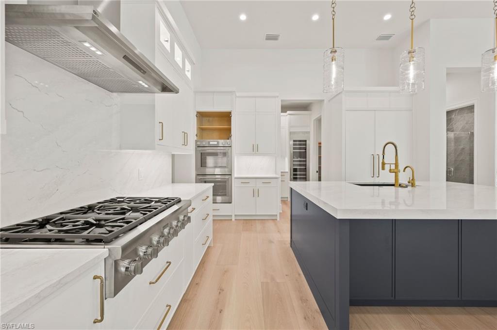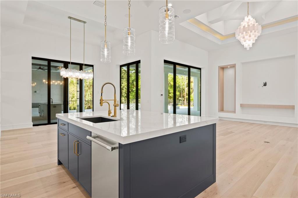 TRANSFERABLE GOLF MEMBERSHIP AVAILABLE! Skip the golf wait list and enjoy an immediate golf membership with only a transfer fee. Be the first to live in this New Construction home built by "Florida Lifestyle" and enjoy privacy at the end of a cul de sac while still having a golf course view. The split floor plan features four en suite bedrooms and the zen-like primary suite offers large custom walk-in closets and a spa-style bath with large soaking tub, custom walk-in shower with multiple shower heads, dual vanities, and two separate water closets. The adjacent study is anchored by a custom shiplap wall and provides access to the lanai while the open concept of the main area of the house flows from the gathering room with coffered ceilings and custom lighting, into both the kitchen and dining room. An elegant, mirrored wall in the dining area is a perfect aesthetic and the gourmet kitchen makes entertaining a snap with dual ovens, Thermador appliances, and an ample breakfast bar.  Expanding the kitchen’s efficiency is a magnificent butler's pantry fully equipped with a second dishwasher, sink, microwave, wine refrigerator, a large walk-in pantry, and plenty of storage. Hurricane-rated sliding doors open to a spacious covered lanai featuring an outdoor kitchen and fireplace. Relax beside the gorgeous pool, lounge on the sun shelf, soak in the spa, and enjoy the tranquil water and fire features. Amenity-rich Quail West, a hidden gem in North Naples, holds the exclusive Platinum Club® status which is the pinnacle of recognition for Private Clubs around the world recognizing the top 1% globally. The world-class amenities include two championship golf courses, elegant clubhouse with a variety of dining options, a racquet sports complex, bocce courts, state-of-the-art fitness center, full-service salon/spa and unending activities for every interest.