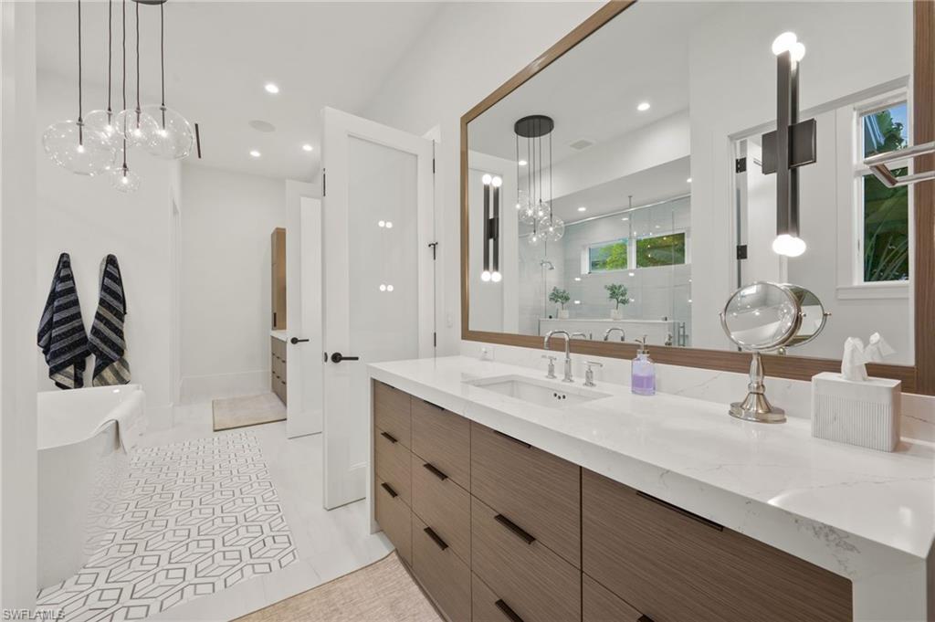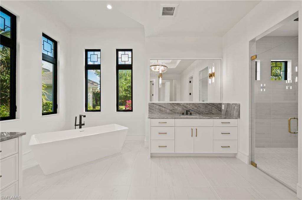 Welcome to a Signature luxury design, The "Atherton". From the moment you step inside, you'll notice the exceptional craftsmanship and meticulous attention to detail throughout. This newly updated and beautifully decorated and fully furnished residence is light and bright and designed for both comfort and style. The open concept floor plan features high vaulted ceilings and stunning private views. The home offers a split plan to 3 private guest ensuites and a 4th master bedroom with a striking island bathtub and large walk-in steam shower. Located in this almost 5000sqft estate is every amenity: a bar area, an open chef's kitchen with two large counter islands, a private dining area that seats up to 10, a home office, and an exercise room. This is a home that needs nothing! Leading from the living room with pocket sliders is a fantastic outdoor living space and a sun-drenched recrafted new pool and spa. This space has been well thought out and beautifully furnished to host all your family times and make gathering with friends effortless and entertaining! The outdoor fireplace and romantic pool fire feature allows for those cool Seasonal evenings when you just need to relax. This entire outdoor entertainment space includes auto screens and shutters. No options were spared in this former model including a whole home generator. The lush grounds of Quail West have made it the hidden gem of Southwest Florida for many years. 36-holes of golf designed by Arthur Hills. Amazing fitness Center, Salon, and exceptional private dining options make this home and private club a delicious opportunity. Golf Membership Available.