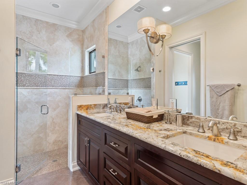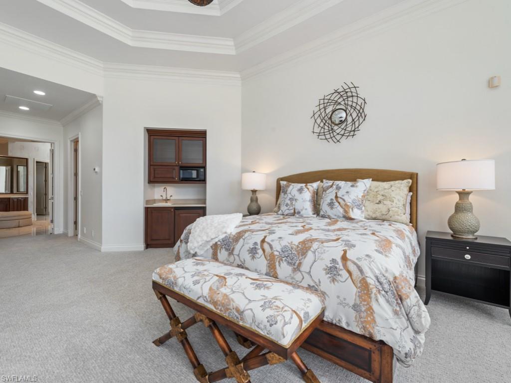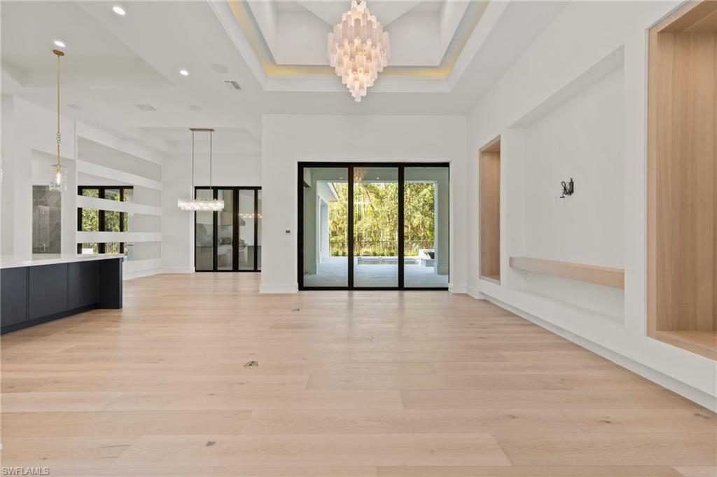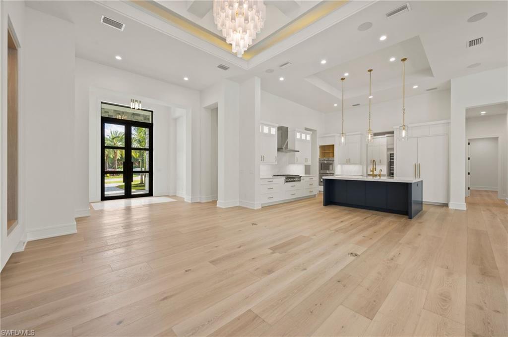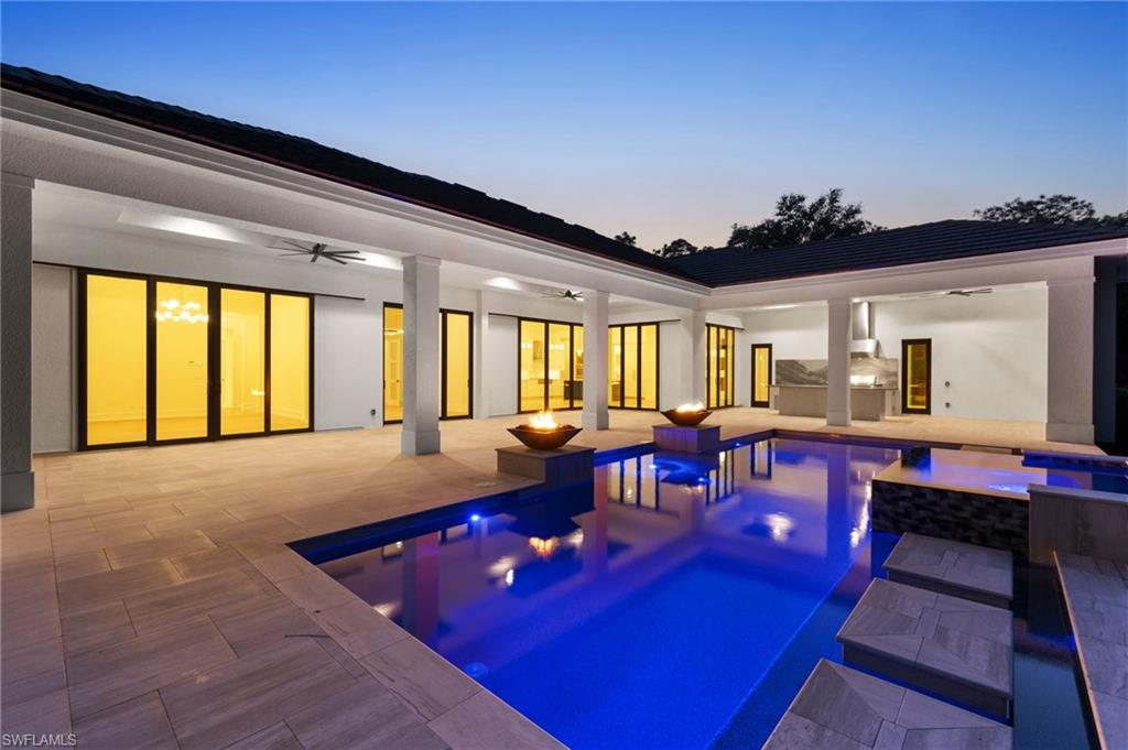 Introducing a masterpiece by Florida Lifestyle Homes in Quail West—one of Naples’ most prestigious golf course communities. This new construction residence blends timeless architecture with modern sophistication, crafted with meticulous attention to every detail. Step inside and be captivated by the expansive open floor plan, highlighted by stunning coffered ceilings with oak beams, ambient accent lighting, and elegant crown moulding. The state-of-the-art gourmet kitchen features Thermador appliances, a butler’s pantry, and designer finishes, perfect for culinary enthusiasts and entertainers alike. Each ensuite bedroom offers a private retreat with walk-in closets, while the split floor plan ensures both comfort and privacy. Additional interior highlights include wood flooring, art niches, custom moulding accents, and designer lighting throughout. The primary suite is a sanctuary of sophistication, showcasing intricate wall and ceiling treatments, dual walk-in closets, and a spa-inspired bath with two water closets, a dramatic back-lit feature wall, a soaking tub, and a luxurious pass-through shower. Transition seamlessly to the screened outdoor oasis, where expansive covered lanais with tongue-and-groove tray ceilings, recessed lighting, and a fully equipped outdoor kitchen set the stage for unforgettable gatherings. Relax by the fireplace or unwind in the designer pool and sunken spa with spillover and waterfall features. A 500-gallon buried propane tank powers the kitchen, fireplace, spa, and tankless water heater, ensuring both performance and efficiency. Perfectly situated on a wide, pie-shaped cul-de-sac lot with coveted southwest exposure, the home offers both privacy and breathtaking sunset views. Quail West residents enjoy access to two Arthur Hills-designed championship golf courses, a spectacular clubhouse with multiple dining venues, and world-class tennis and pickleball facilities. Adding to the value, this residence is offered with a Social Membership included ($100,000 value), granting you immediate access to Quail West’s vibrant lifestyle and exclusive amenities. Completion is anticipated in late November, with a full builder warranty and comprehensive buyer walk-through upon delivery. This is more than a home—it is a statement of elegance, privacy, and prestige.