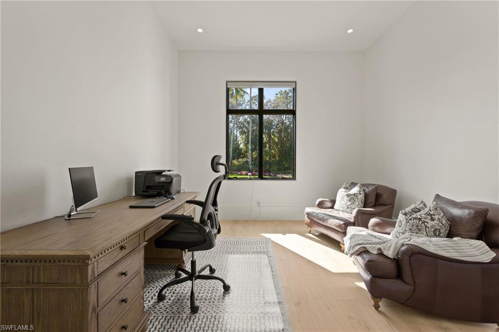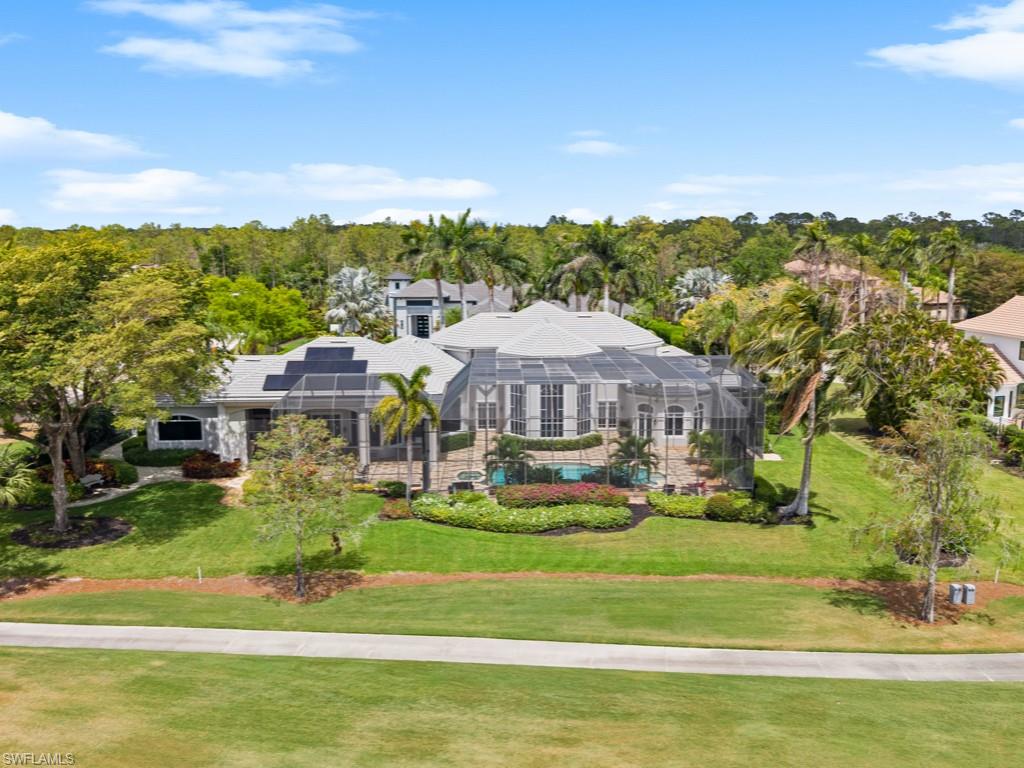 TRANSFERABLE GOLF MEMBERSHIP IMMEDIATELY AVAILABLE with this inviting estate home on almost an acre of land with sunny golf views. Upon entering the grand foyer you are immediately captured by the living room graced with a beautiful fireplace and adjacent formal dining room. The spacious home office offers custom built-ins to display your treasures and the floor plan invites at every turn. You are going to love entertaining in this home with a large kitchen offering stainless steel appliances, a large prep island and separate island with bar stool seating and a butler's pantry for even more storage and prep space. The family room with fireplace and zero corner sliders leading into the lanai is conveniently located just off the kitchen so for optimal entertaining. The three en suite bedrooms are tucked into a wing by themselves for privacy and the luxurious primary suite features a separate flex room surrounded by windows, double walk-in closets and an inviting wet bar/coffee bar. The spa-inspired primary bath features an oversized soaking tub, masterful shower and atmosphere of pure relaxation. The amazing lanai with expansive views of the 9th hole of the lakes course features a completely renovated pool with updated tiling and integrated spa. There is bathroom access directly from the pool area for maximum convenience. This home also features an enormous casita ready for your choice of uses be it a 5th guest suite, fitness area or media space. It is complete with a full kitchen and bath plus infrared sauna! The home features so many updates and upgrades including a full house generator, surround sound, 1000-gallon LP tank, 4 AC units (3 replaced in 2021), separate golf cart garage off the back of the casita with direct access to the golf course, pocket sliding doors to the lanai, two working chimneys but electric fireplaces now installed, 4 water heaters and gorgeous lighting throughout. Roof new in 2015 is equipped with comprehensive hurricane protection and lightning protection. The last 11 pictures are virtual renderings. Quail West offers an amenity rich lifestyle and is close to sandy gulf beaches, shopping, dining, arts destinations, nature and more.