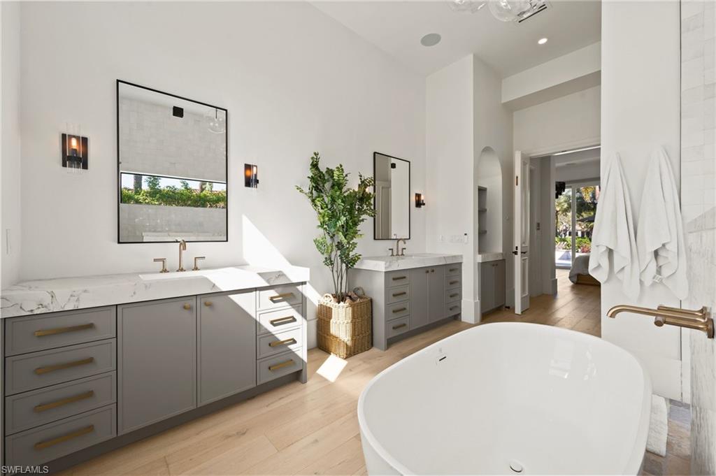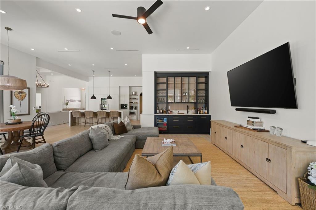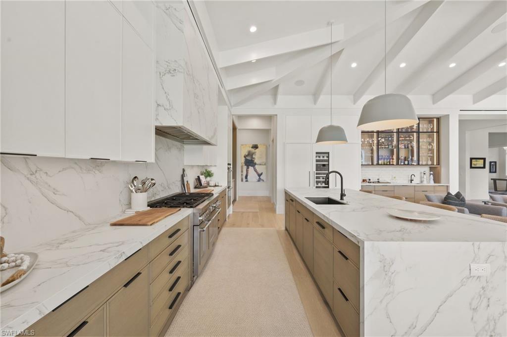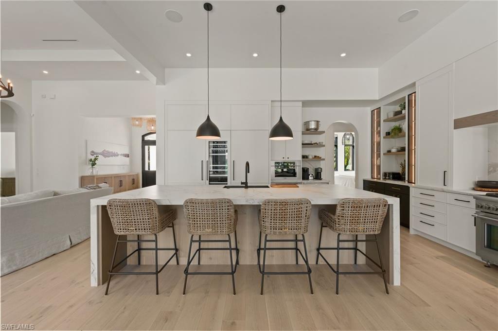 IMMEDIATE GOLF MEMBERSHIP AVAILABLE WITH THIS SALE (SKIP THE WAITLIST)! BUYER SAVES $225K ON GOLF INITIATION FEE BY TRANSFERRING SELLER'S GOLF MEMBERSHIP! Fully renovated, state-of-the-art estate situated in the highly sought-after Quail West community in Naples. This masterpiece sits on a nearly 1-acre lot with beautiful golf course views, a park-like setting & one of SWFL’s finest outdoor entertainment areas with resort-style pool/spa, water features, state-of-the-art outdoor kitchen/bar & super screen picture window enclosure. Designed for ultimate enjoyment, the outdoor kitchen and bar offer seating for nine, featuring exquisite Taj Mahal granite, a grill, cooktop, burners, dishwasher, fridge, and a cocktail station. Inside, no detail has been overlooked, with European oak hardwood floors, & brand newly redesigned high-end furnishings & decor, custom designer wall coverings throughout, impressive distinctive light fixtures & luxurious custom draperies. Boasting 4,972 sq ft of living space, this home offers 4 spacious bedrooms, a spacious bar room with a 650 bottle wine wall (could also be converted back to a den), stunning formal dining room, a large laundry room with plenty of storage, and two 2.5-car garages with a motorized gate. Immaculately maintained, the property features hurricane impact windows, new hot water heaters, 3 new HVAC units (2022), 2 generators, a water filtration system, smart home automation with Lutron lighting, and a Sonos sound system. The chef's kitchen is a true culinary masterpiece, with pristine white cabinetry, high-end granite countertops, an oversized island, expansive walk-in pantry, and top-tier appliances, including a Thermador double oven, dual Viking dishwashers, Sub-Zero refrigerator drawers, Dacor microwave, and a Wolf gas cooktop with a hood. The primary suite serves as the perfect retreat, offering stunning views of the pool area and golf course. Its spa-like bathroom features dual vanities, a makeup vanity, a standalone soaking tub, and a luxurious frameless glass shower with a bench. Quail West is known for its world-class amenities, including two championship golf courses, a newly renovated 100,000 sq ft clubhouse, a Racquet Sports complex, an indoor lagoon-style Junior Olympic pool, a variety of dining options, a state-of-the-art fitness center, and a full-service salon and spa with a sauna. Just minutes from Barefoot Beach, Mercato, Waterside Shops, and Naples’ iconic 5th Avenue, this prestigious community offers easy access to RSW and Naples airports.