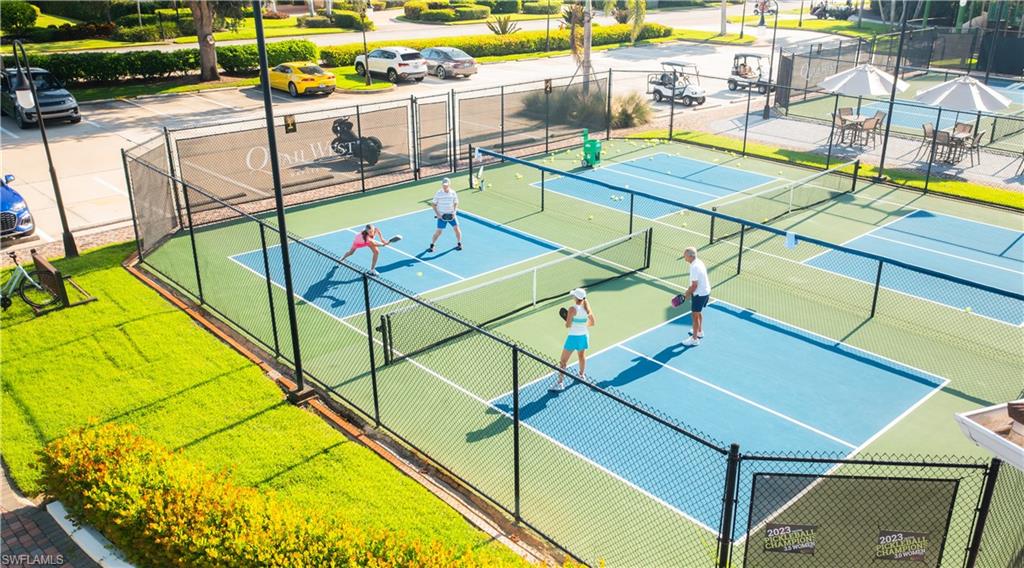 TRANSFERABLE GOLF MEMBERSHIP AVAILABLE. Built by Diamond Custom Homes with stunning Western exposure over the Golf course, this remarkable home features over 4700 sq feet under air. Step through the double glass door entry into the foyer and immediately you will be immersed in a Zen luxurious interior. Soaring, beamed ceilings offer an understated opulence, and the gleaming floors anchor the great room with built in feature wall including a fireplace. The masterfully curated kitchen has Thermador appliances featuring a gas stove w 6 burners, and griddle, wall ovens, specialty coffee maker and a three-panel refrigerator/freezer/wine refrigerator! The butler's pantry offers an additional refrigerator and loads of storage. Ideal open dining overlooks the lanai and the sparkling pool/spa beyond to Lakes course hole 11. Immerse yourself in relaxation in the spacious primary suite with seating space and generous walk-in closets. The primary bath is a beautifully private oasis with separate soaking tub, dual shower including a rainhead and multiple shower heads and handheld sprays. 3 additional guest suites all with motorized privacy shades for maximum comfort offered to your family and guests. 4 garages with a car lift and electric car charger and air conditioned with new mini splits and built in storage. Continue your fabulous lifestyle to your outdoor space, covered to protect from the elements, are the outdoor kitchen and seating area and overlooking the gorgeous "fire and water" saltwater pool/spa. There's a gas firepit perfectly situated for stargazing. The impact resistant windows and doors, lanai shutters and screens and a whole house generator offer peace of mind for those inclement times! Quail West Golf & Country Club is a designated Platinum Club of America making it one of the top 10 Country Clubs in the USA. Amenity rich and 2 golf courses, full-service spa, tennis and pickleball and a state-of-the-art fitness center, Bocce, playground for the children and a spectacular clubhouse. Dining options, casual and more refined, open bar and many social activities offered to facilitate your beautiful SWFL lifestyle. Easy access to sandy gulf beaches, downtown Naples and RSW and Naples airports.