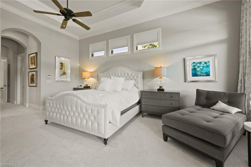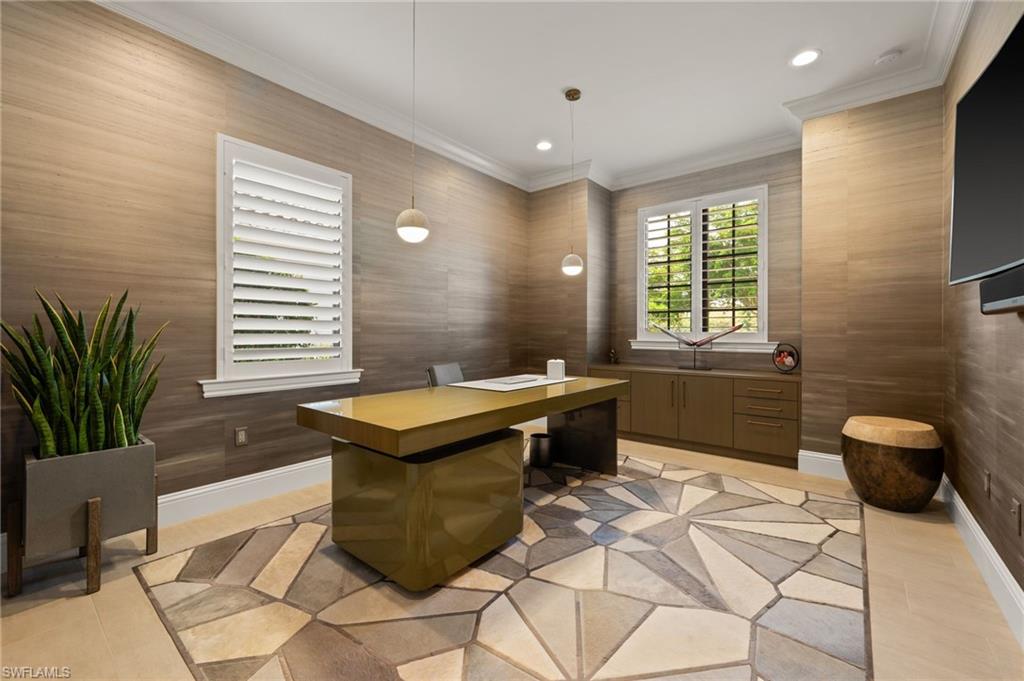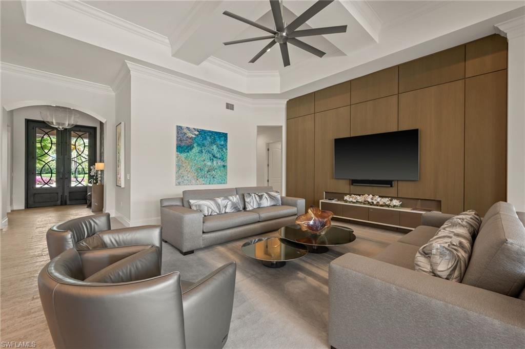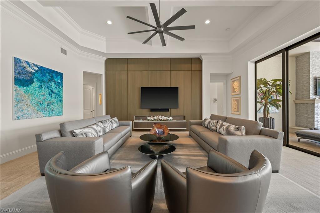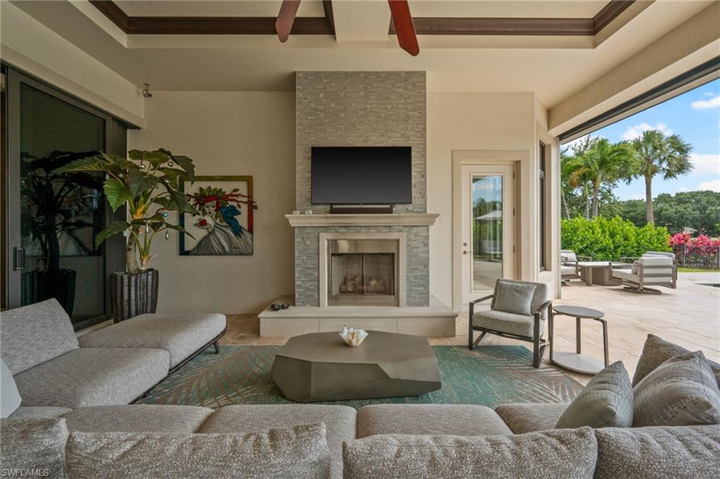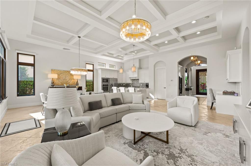 Step into this beautifully updated residence where classic architecture meets modern sophistication. Thoughtfully redesigned by Clive Daniels, this home blends Florida charm with contemporary flair. The open floor plan lends itself to entertaining with a bright and airy great room highlighted by a glamorous TV wall and opening to the gourmet kitchen with white cabinetry, stainless-steel appliances and a reverse osmosis system. The adjacent dining area offers spectacular outdoor views and features Clive Daniel custom-designed furniture and new chandelier lighting. As you tour the home, you will find that every detail has been curated with updated, upgraded elements to elevate the SWFL living experience such as spa-inspired bathrooms, room-darkening shades, stylish wallpaper, new window treatments and lighting. The emphasis is on living spaces for entertaining or simply a quiet retreat. Of course, the highlight of every Florida home is the outdoor space, and this home exceeds anyone’s wish list. Completely re-imagined by Clive Daniels is the new outdoor kitchen featuring a porcelain island and feature wall, new gas fireplace, television and outdoor furniture arranged to accommodate both dining and relaxation. New retractable screens and a new putting green add to this fun-filled space where you can drink in the water, golf and perfect southwest sunset views!