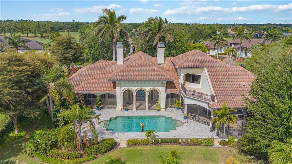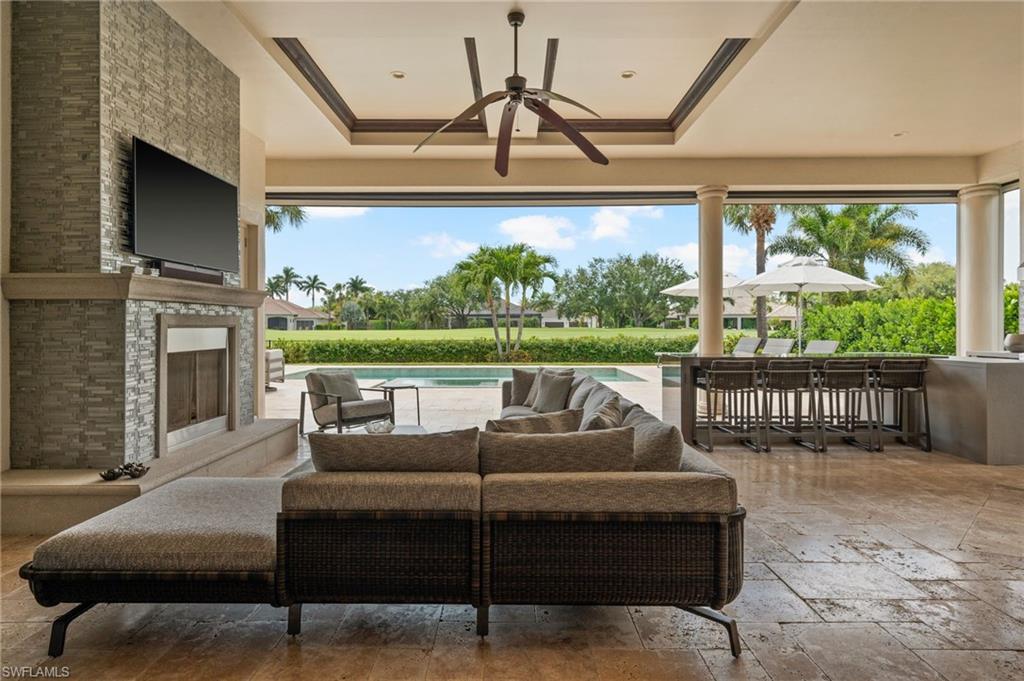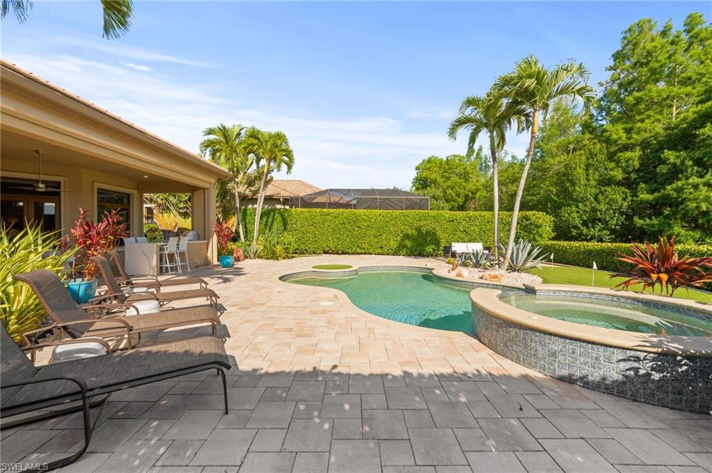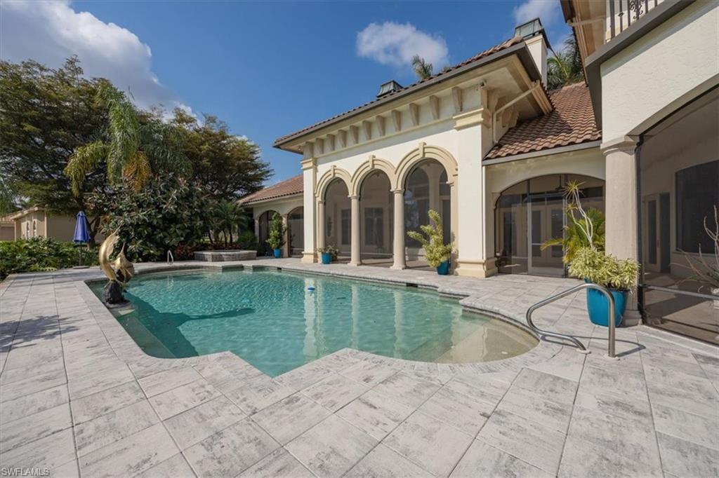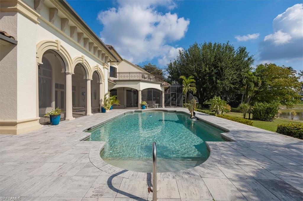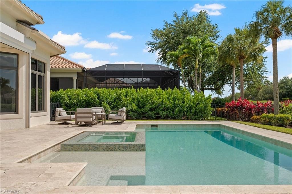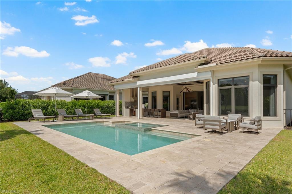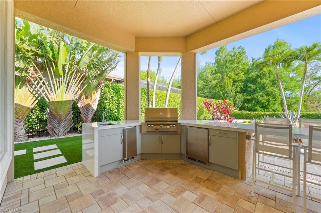 IMMEDIATE GOLF MEMBERSHIP AVAILABLE! Graceful Portico entrance to your front door welcomes you. Step into your beautifully detailed home with direct views to the golf course and long lake immediately ensuring you have reached your dream vision of SWFL living! This custom built McGarvey home is newly painted and features an open floor plan to maximize your entertaining possibilities, with the huge kitchen island anchoring the great room with a mini wet bar area for informal gatherings to the formal dining room, you will appreciate the beautiful oversized tiled flooring to the tray ceilings. You will enjoy culinary creations in the spacious kitchen, where the lovely basketweave backsplash sets off the granite countertops, GE Monogram appliances and wonderful under counter lighting. With sweeping views through the zero corner sliders to the screened lanai. Plenty of covered seating area and flanked by a fireplace, your outdoor living is spectacular. The outdoor kitchen and sparkling salt water pool, with new 2025 pool heater and integrated spa enhance your lifestyle. You will love beginning and completing your days in the luscious primary suite featuring 2 walk-in closets and the lovely primary bath offers a generous soaking tub, separate shower and double vanities/sinks and new 2025 AC unit. 2 guest bedrooms, en suite, are located in a split bedroom design to maximize privacy for all and the den is the ideal flex space, great as an office or fill with your work out equipment or yoga mat! This home includes a whole house 22KWH Kohler generator, impact resistant doors and windows, and electric hurricane screens. Gracious La Caille offers pool, lawn, pest maintenance and even includes exterior house painting! All located in amenity rich Quail West where you will find fantastic golf membership opportunities, tennis, pickleball, play area, community gathering at the gorgeous clubhouse, restaurant, bar, full state of the art fitness, relaxing full-service spa and so much more. Excellent location, easy access to I-75, fun on 5th, award winning sandy gulf beaches, ARTS, shopping and all that SWFL has to offer.