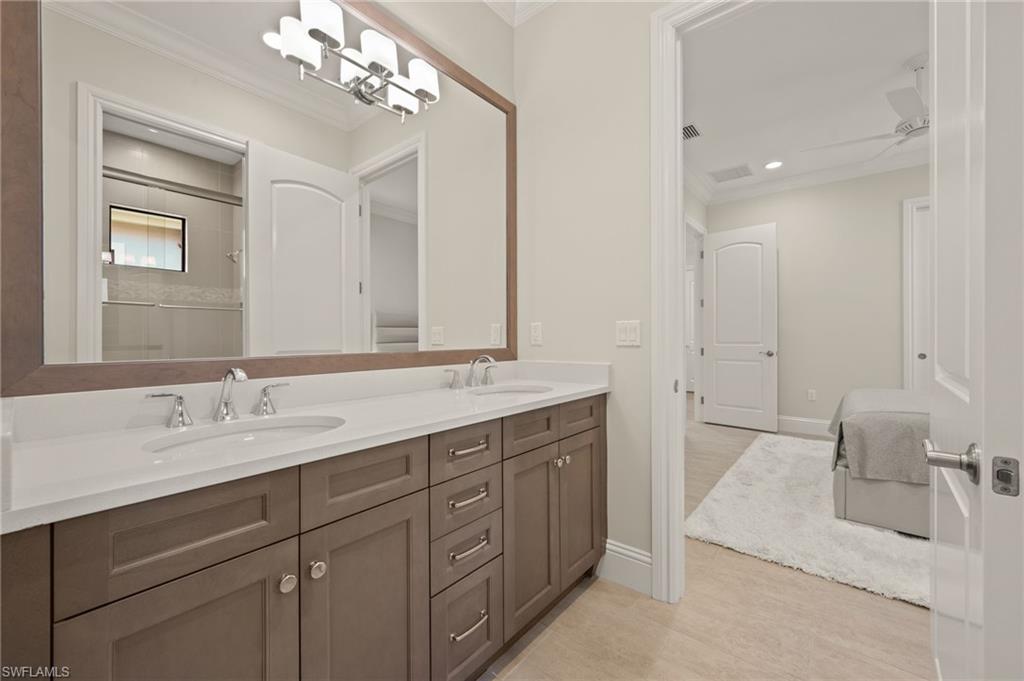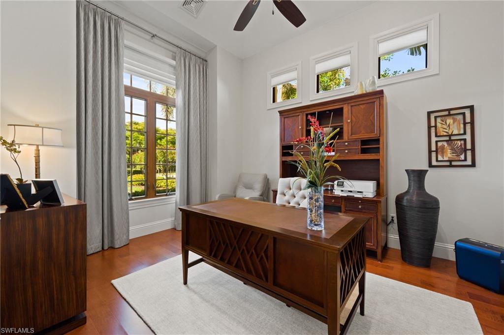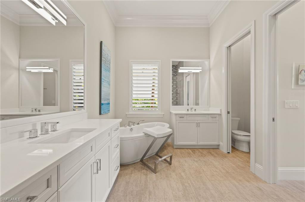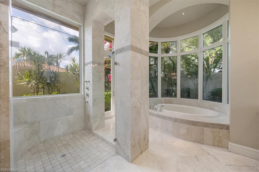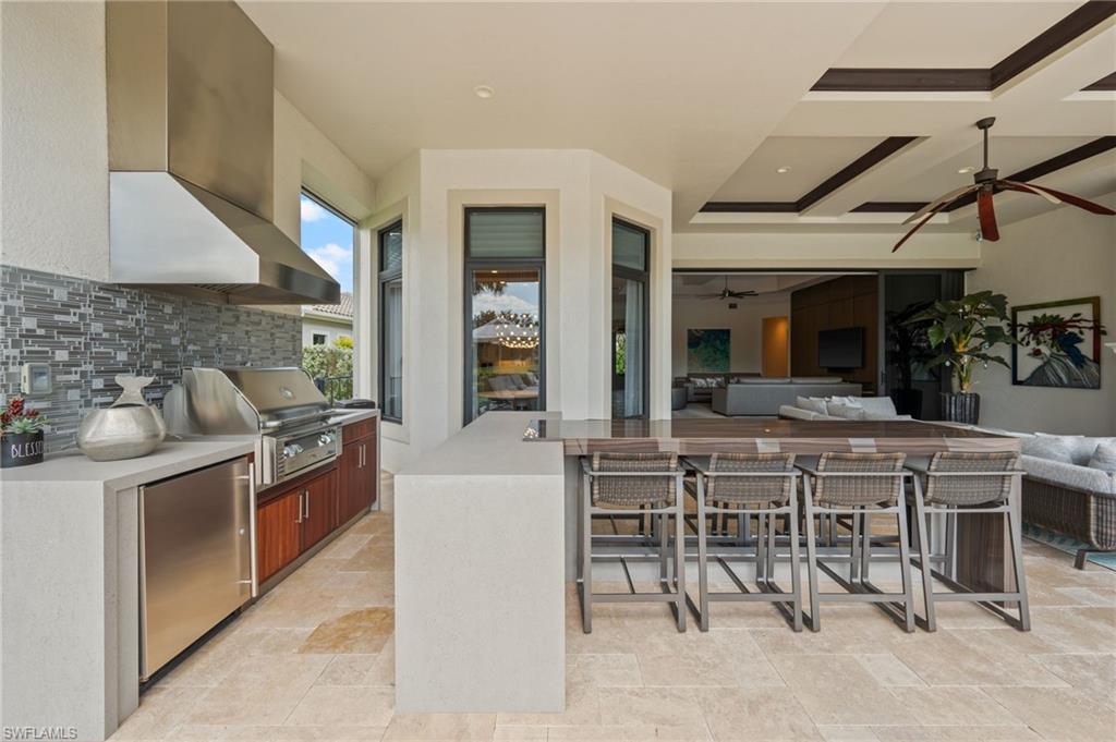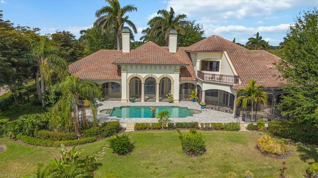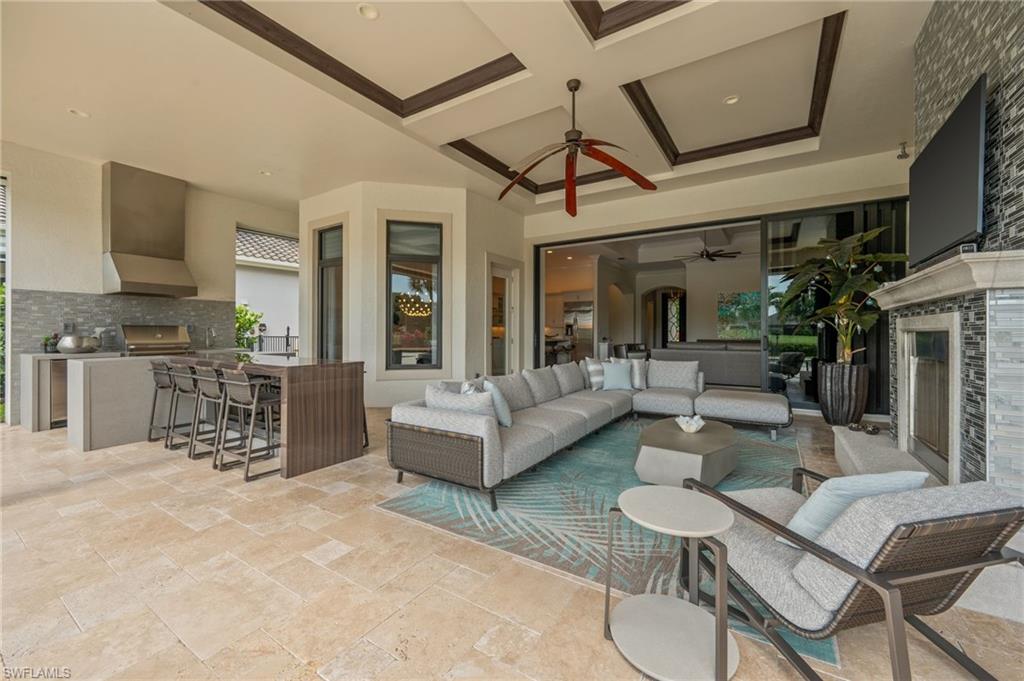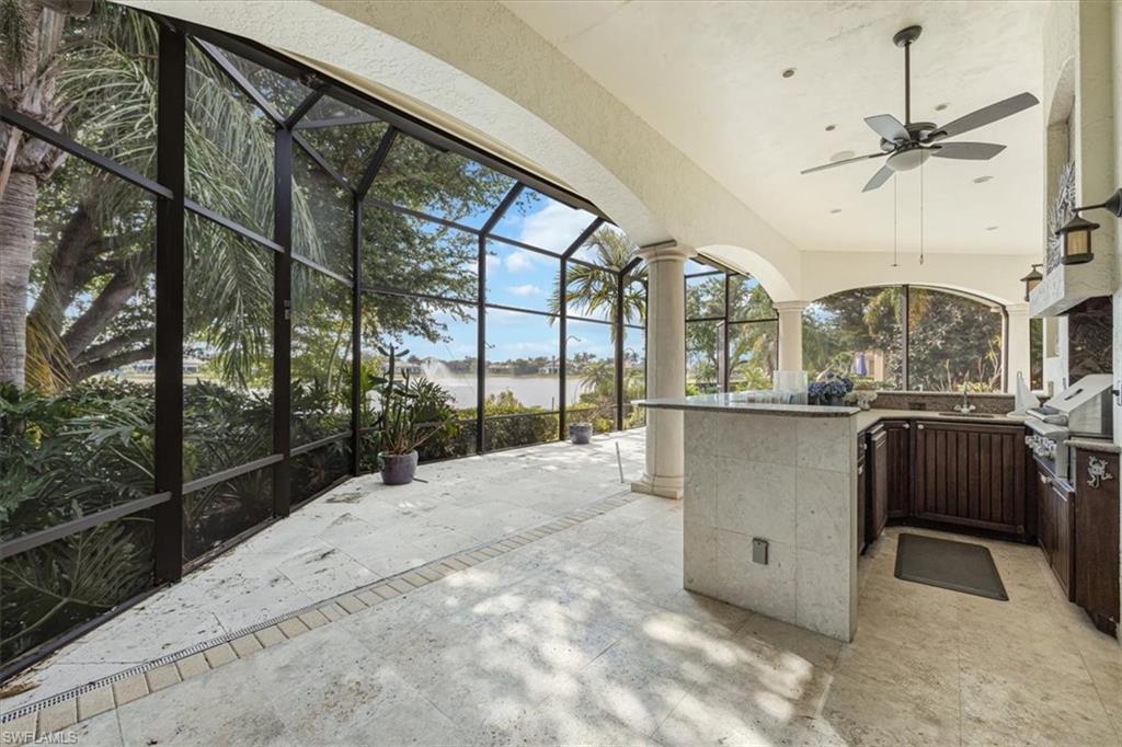 IMMEDIATE GOLF MEMBERSHIP AVAILABLE! Graceful Portico entrance to your front door welcomes you. Step into your beautifully detailed home with direct views to the golf course and long lake immediately ensuring you have reached your dream vision of SWFL living! This custom built McGarvey home is newly painted and features an open floor plan to maximize your entertaining possibilities, with the huge kitchen island anchoring the great room with a mini wet bar area for informal gatherings to the formal dining room, you will appreciate the beautiful oversized tiled flooring to the tray ceilings. You will enjoy culinary creations in the spacious kitchen, where the lovely basketweave backsplash sets off the granite countertops, GE Monogram appliances and wonderful under counter lighting. With sweeping views through the zero corner sliders to the screened lanai. Plenty of covered seating area and flanked by a fireplace, your outdoor living is spectacular. The outdoor kitchen and sparkling salt water pool, with new 2025 pool heater and integrated spa enhance your lifestyle. You will love beginning and completing your days in the luscious primary suite featuring 2 walk-in closets and the lovely primary bath offers a generous soaking tub, separate shower and double vanities/sinks and new 2025 AC unit. 2 guest bedrooms, en suite, are located in a split bedroom design to maximize privacy for all and the den is the ideal flex space, great as an office or fill with your work out equipment or yoga mat! This home includes a whole house 22KWH Kohler generator, impact resistant doors and windows, and electric hurricane screens. Gracious La Caille offers pool, lawn, pest maintenance and even includes exterior house painting! All located in amenity rich Quail West where you will find fantastic golf membership opportunities, tennis, pickleball, play area, community gathering at the gorgeous clubhouse, restaurant, bar, full state of the art fitness, relaxing full-service spa and so much more. Excellent location, easy access to I-75, fun on 5th, award winning sandy gulf beaches, ARTS, shopping and all that SWFL has to offer.