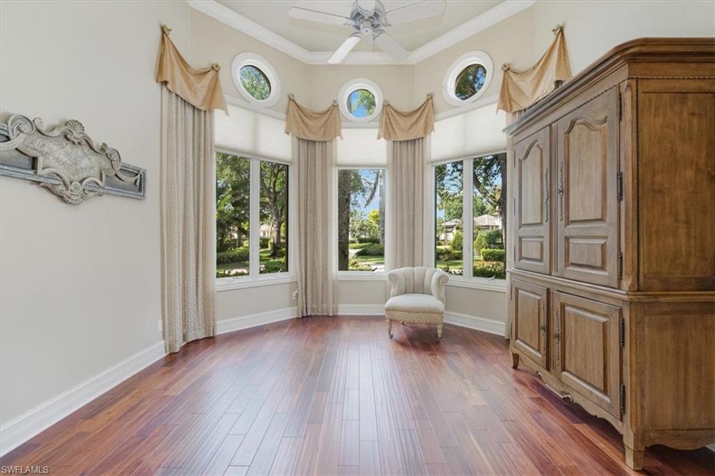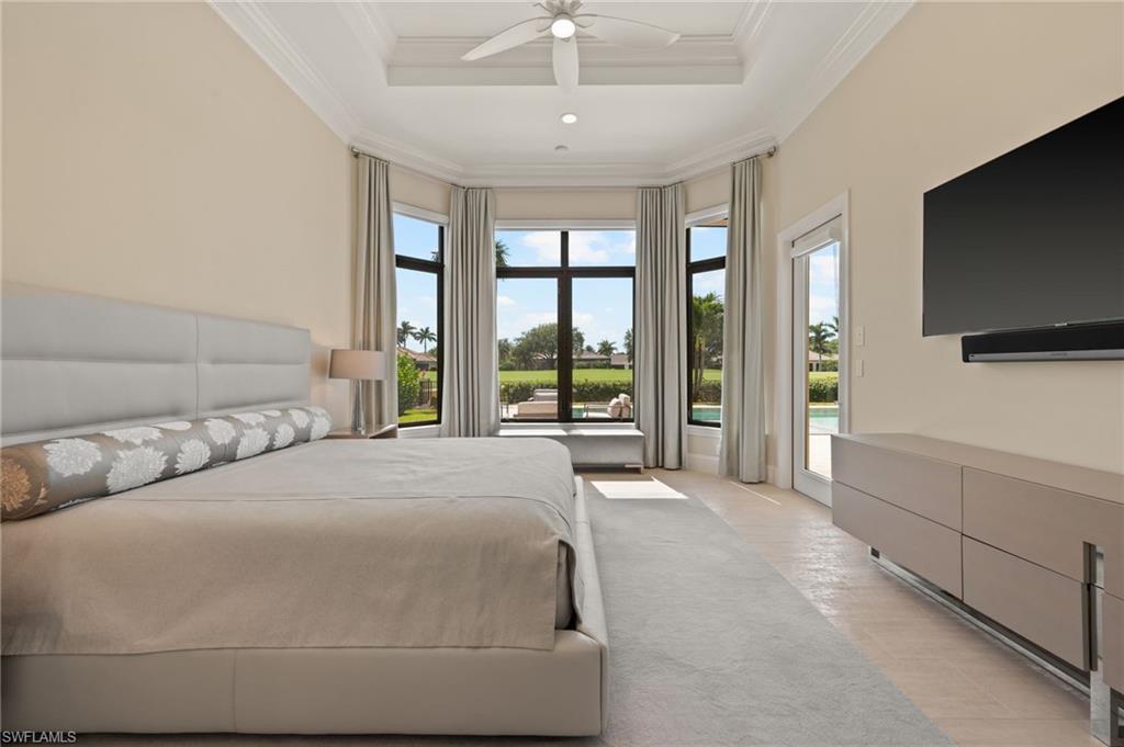 Sitting on a prime golf course lot on the 7th hole of The Lakes Course, this custom estate offers 5 spacious bedrooms, his and her primary separate baths and closets, plus an office with 6 full bathrooms and 1 half bathroom. Spread over 6,067 square feet, this is a two-story masterpiece. There have been numerous upgrades, including an oversized 4 car garage, granite counter-tops, upgraded appliances, impressive cabinetry, light and bathroom fixtures, extensive crown molding, wood ceiling details, Lutron Lighting system, a Home Audio system, newly painted interior and exterior, newer roof, led lighting, and much more. Also included is remarkable stone flooring throughout the main living areas of the home as well as wood and carpet in the other rooms. The backyard of the home includes an over-sized lanai with a pool and a raised spa, lush landscaping, and an enormous BBQ area complete with a morning kitchen.
