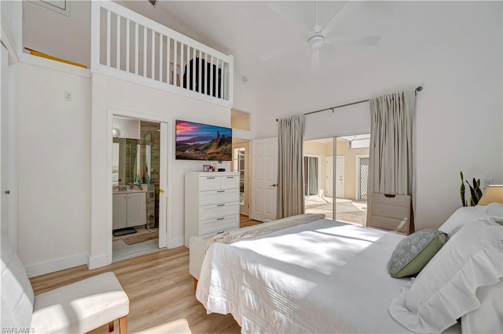 Discover the charm of this stunning Courtyard Villa, featuring a unique floor plan that offers the spaciousness and feel of a single-family home. Inside, two well-appointed bedroom suites grace the first floor, enhanced by impressive 22-foot volume ceilings and skylights that flood the space with natural light. Head to the second floor, where a versatile loft opens onto a sun-drenched terrace, perfect for basking in Florida's glorious weather. The expansive 20x20 courtyard is complete with a jacuzzi, ideal for grilling, unwinding, and soaking up the sun. Practicality meets luxury with a two-car garage and hurricane shutters, offering both convenience and peace of mind. The villa is an excellent choice for those seeking a serene primary residence or a delightful vacation home and is situated in a quiet and peaceful community that offers beautiful amenities, including a refreshing pool and tennis courts. The villa provides easy access to I-75 and is perfectly positioned within the complex, away from Immokalee Road and across the lake. It is conveniently located just minutes from North Naples' pristine white sandy beaches, the vibrant Mercato, and the bustling shopping and dining of 5th Avenue. Come and experience the tranquility and luxury of North Naples living.