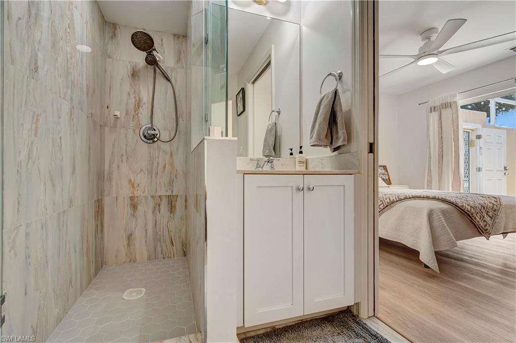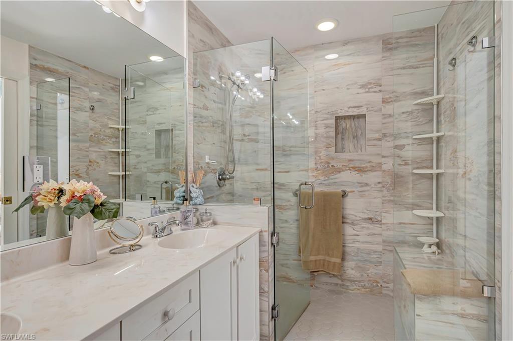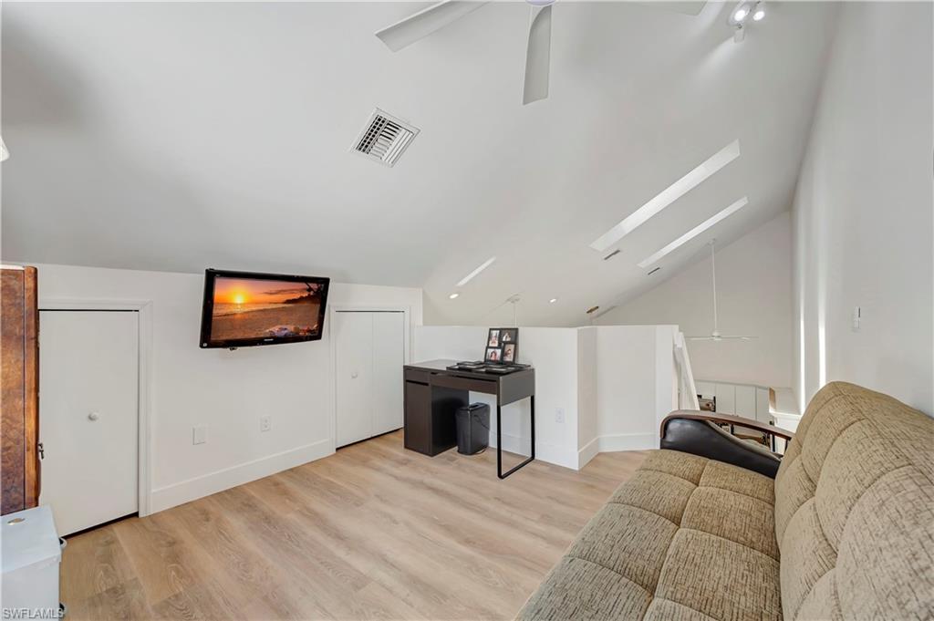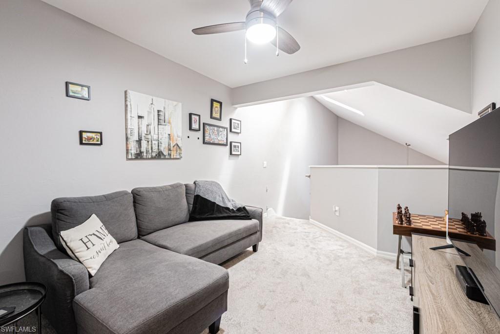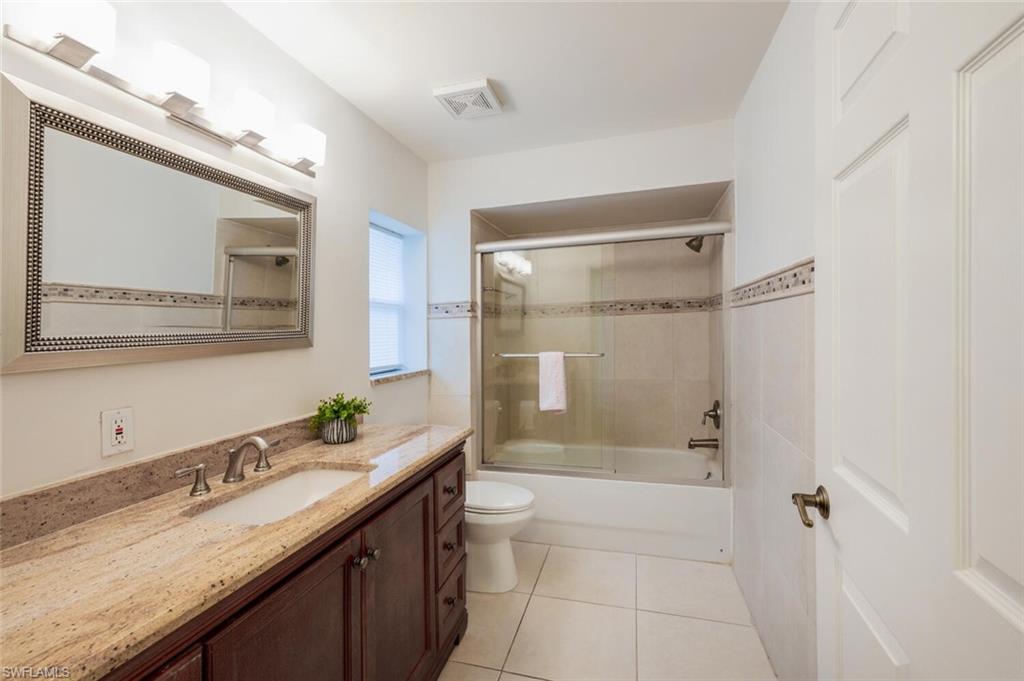 Welcome to this beautifully remodeled villa in the heart of North Naples, just 10–15 minutes from the beach, Mercato, Trader Joe’s, and with easy access to I-75 and SWFL International Airport. This 2-bedroom plus den, 2-bath home offers thoughtful upgrades and a flexible floor plan perfect for both relaxing and entertaining. The kitchen opens up to the living and dining areas, featuring an eat-up granite breakfast bar. Two skylights and cathedral ceilings fill the home with natural light all day long. The master suite includes a cozy loft—ideal for an office or extra storage. Upstairs, you’ll find a den that can serve as a home office or hobby room, complete with extended storage cupboards. Step outside to enjoy not one but two patios: a screened-in area downstairs for breezy evenings and a large private sun deck upstairs—perfect for sunbathing or sunset views. This villa has been smartly modified so guests can access the bathroom directly from the living area, adding convenience and privacy. Additional features include brand-new flooring, a recently replaced AC (2024) and a spacious 2-car attached garage. The community offers a large lap pool, tennis courts, and more—all in a serene North Naples setting.