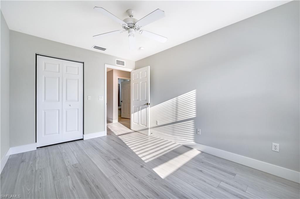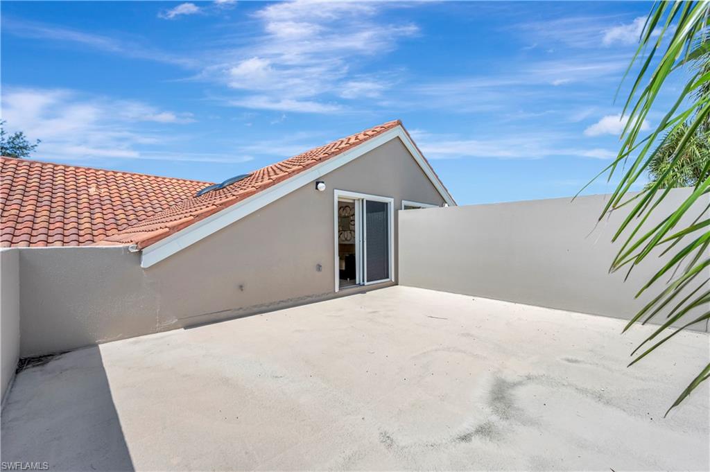 Unbeatable value in the heart of Naples! This exceptional villa offers one of the most unique and spacious floor plans in the area—priced well below comparable properties. Featuring two bedrooms plus a den, two bathrooms, and a private two-car attached garage, this home perfectly blends comfort, functionality, and outdoor living. Enjoy two expansive outdoor spaces, including a private screened courtyard designed for entertaining and a tranquil upper patio ideal for relaxing under the stars. Inside, the open-concept layout showcases vaulted ceilings, a remodeled kitchen, and brand-new 30-year laminate flooring with updated baseboards. The first-floor primary suite provides privacy and convenience with its own full bath, while the second bedroom and bath are also located on the main level. Upstairs, the versatile den with a private terrace can serve as a third bedroom, guest space, or home office. Major updates include new roofs (2018–2019) with a 30-year warranty, refinished deck (2020–2021), new A/C (2020), new hot water heater (2020–2021), and a freshly redone paver pool deck (2023). The Quail Woods community offers affordable HOA fees covering a temperature-controlled pool, two hard tennis courts, landscaping, lake maintenance, and water/sewer. Ideally located just minutes from shopping, dining, entertainment, medical facilities, and Southwest Florida International Airport—and only four miles from Naples’ world-class beaches—this property is a rare find. Offering an unbeatable combination of location, updates, and price, it’s the perfect opportunity for a year-round home, winter retreat, or investment.