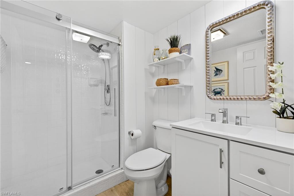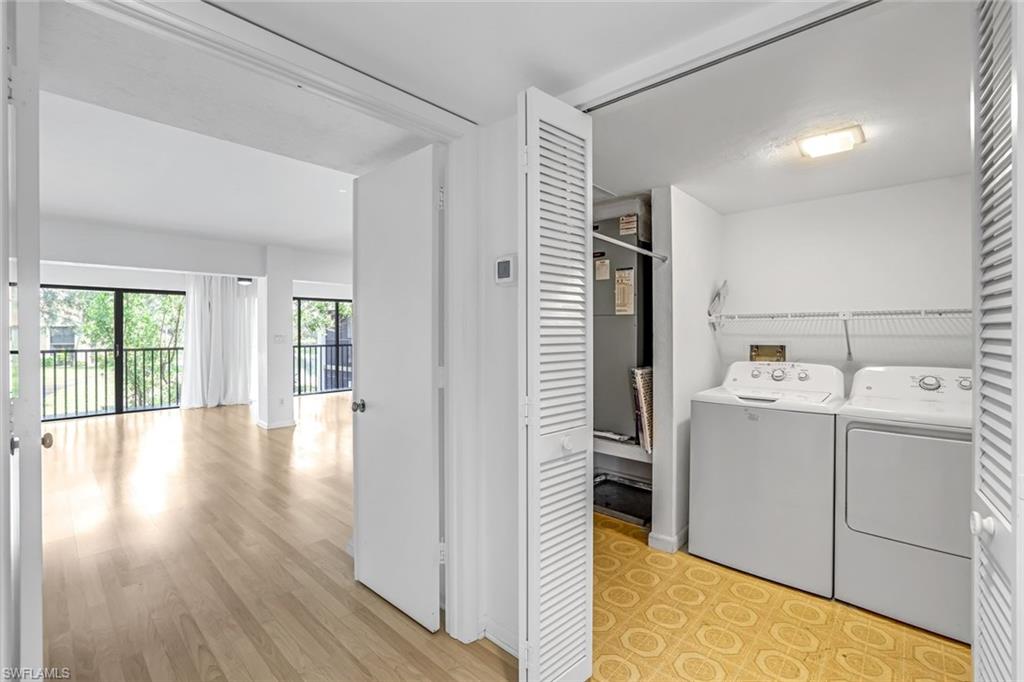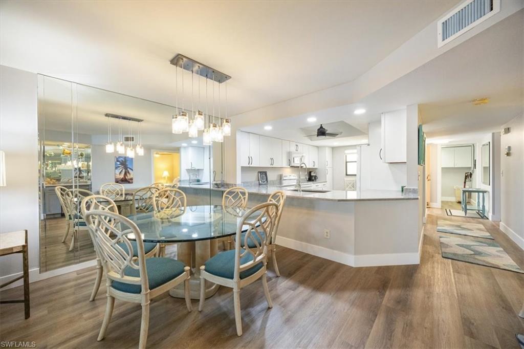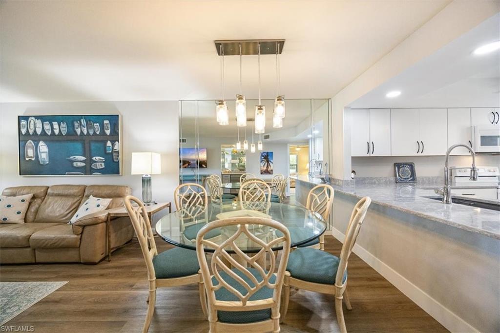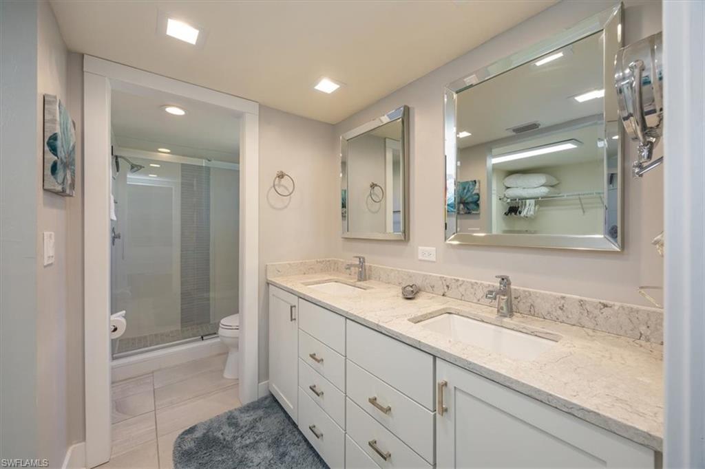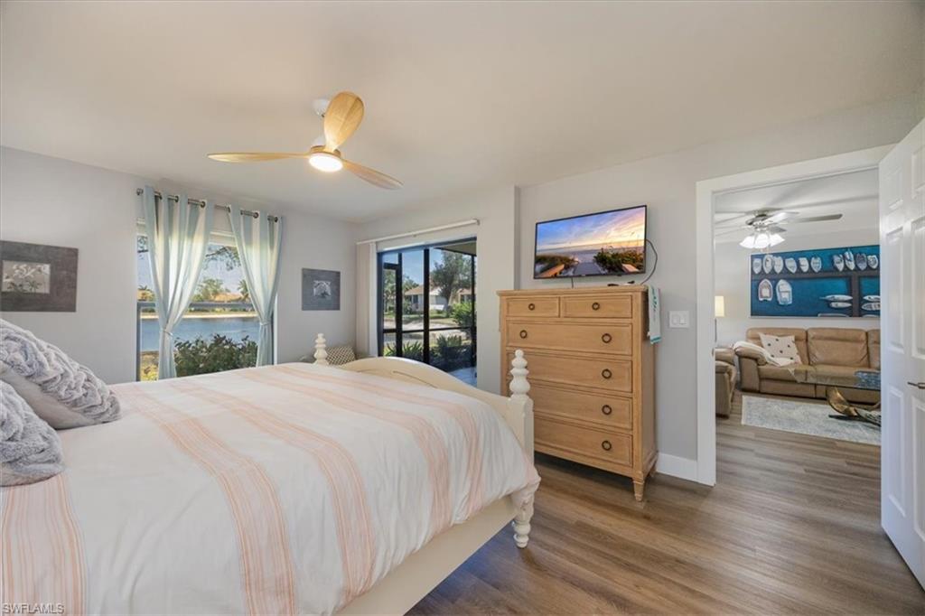 Experience coastal living at its finest in this beautifully remodeled, first-floor END-UNIT condo that feels like a villa! From the moment you arrive, you’ll love the courtyard entrance that leads from your garage directly into your home. Inside, an additional spacious South-facing lanai showcases wide Lake Views, filling the entire residence with vibrant natural light. This stunning 3-bedroom, 2-bath home shines with flowing tile flooring throughout the main living areas, kitchen, and baths, complemented by stylish wood-vinyl flooring in two of the bedrooms. The chef-inspired kitchen is a true showpiece, featuring sleek quartz countertops, a custom tiled backsplash, top-of-the-line Bosch stainless-steel appliances, and rich custom wood cabinetry with soft-close features and convenient pull-out drawers with Large Farm house s/s sink. For peace of mind, the home is equipped with newer electric hurricane shutters on the southern lanai, an electric shutter on the guest bedroom slider, and a manual shutter on the small bedroom window—plus elegant Hunter Douglas blinds. Unwind on your lake side lanai with your favorite drink and nature as your backdrop—otters, graceful birds, and even majestic eagles are known to visit the surrounding trees. Located within a prestigious guard-gated community with a residents-only back entrance off Vanderbilt and 24-hour patrol, The Retreat offers tranquility and natural beauty at every turn. Enjoy scenic walking paths, charming wooden bridges, and approximately five miles of biking and jogging trails winding through a lush wildlife estuary. All this, just minutes from the white-sandy beaches off Vanderbilt, Bonita, and Wiggins State Park, plus an array of shops, restaurants. The heated saltwater community pool offers the perfect place to relax and soak in the sunshine. Retreat ONE is the only association that includes “Hotwire” Internet service included in your condo fee. This is more than a home—it’s a lifestyle. Bring the family and start creating unforgettable memories today!