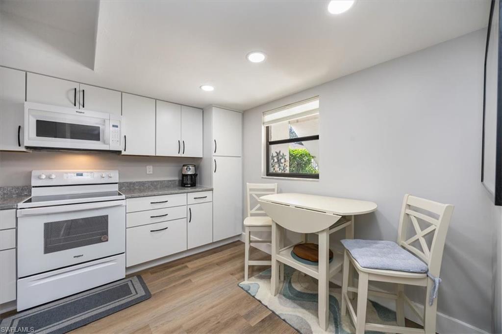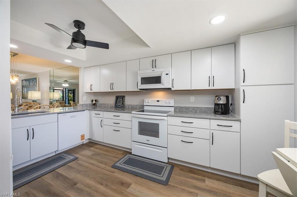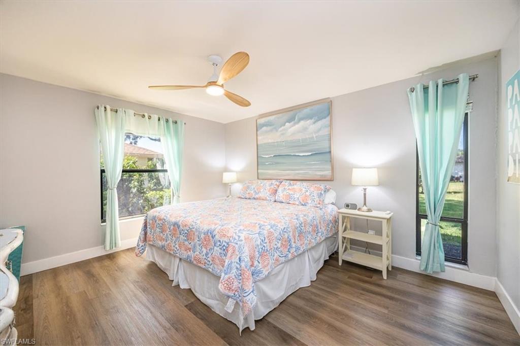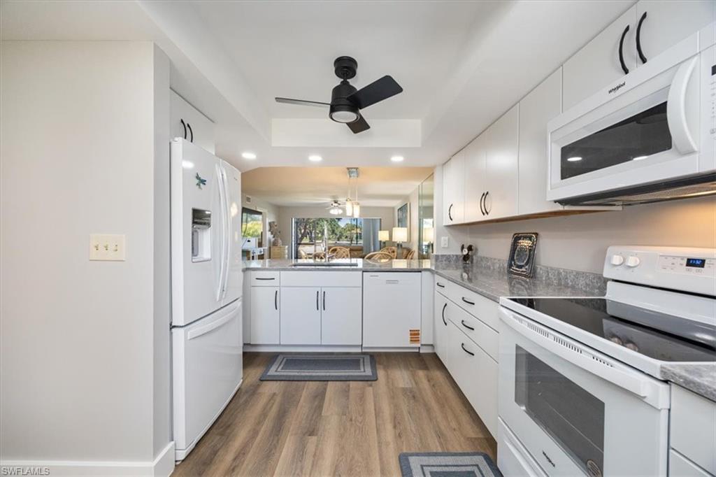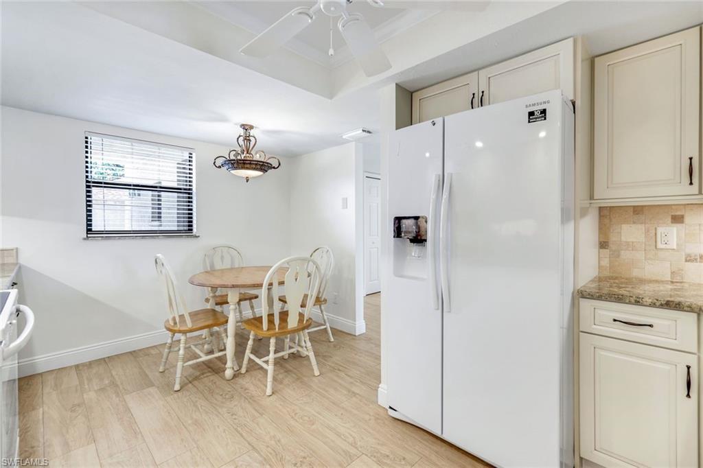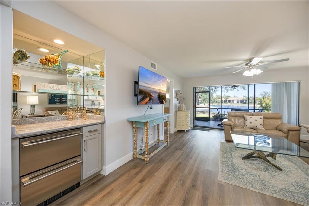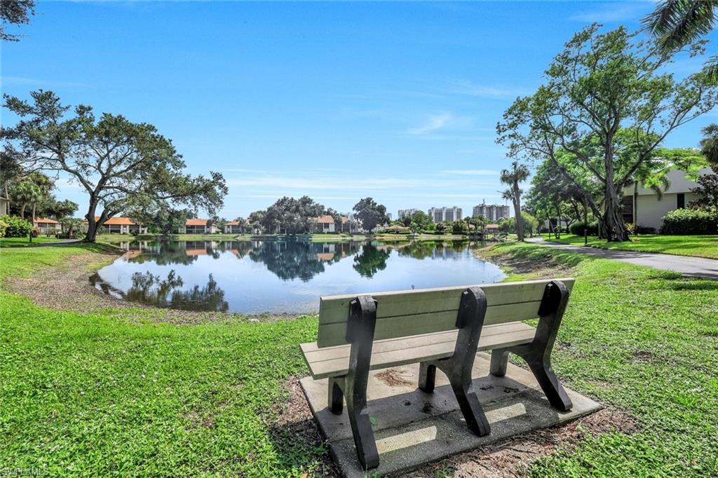 Welcome to Your Dream Retreat! This beautifully remodeled first-floor end unit offers breathtaking lake views from the living room, dining area, kitchen, and primary suite. It’s the perfect place to relax and unwind. This charming 2-bedroom, plus den, 2-bathroom home comes with a detached 1-car garage and is being offered turnkey, with just a few exceptions for artwork. The light-filled, open floor plan invites you to enjoy every space to the fullest. Special features include stunning Cortec vinyl plank flooring throughout, with tile accents in the bathrooms. The kitchen, remodeled within the last year, boasts gorgeous quartz countertops, brand-new Whirlpool appliances, soft-close kitchen cabinets, and a sleek gray Blanco-style sink. The primary suite is a true sanctuary, complete with a stylish bathroom featuring a granite vanity with dual sinks and a custom-designed glass-enclosed shower. Bar with new 2 drawer beverage refridg. Start your mornings on the newly rescreened lanai, with easy-to-maintain tiled flooring, and take in the natural beauty that surrounds you. Exciting news: A new driveway will be installed from May 3rd to 11th, making your home even more welcoming. The Retreat offers scenic walkways with wooden bridges along the wildlife estuary that winds along miles of bike and jogging paths. Minutes to Vanderbilt, Bonita, or Wiggins State Park white sandy beaches. the Retreat is a gated and 24hr. patrolled community, w/back gate off Vanderbilt for easy access. One small pet up to 25lb is allowed. Enjoy the heated/Saltwater Community pool w/grills and spa just steps away from unit. Bring your family and start making new memories today!