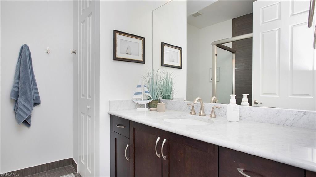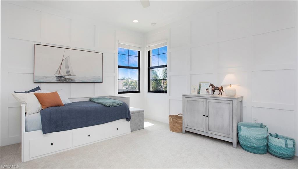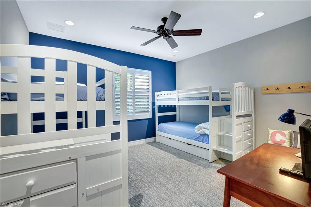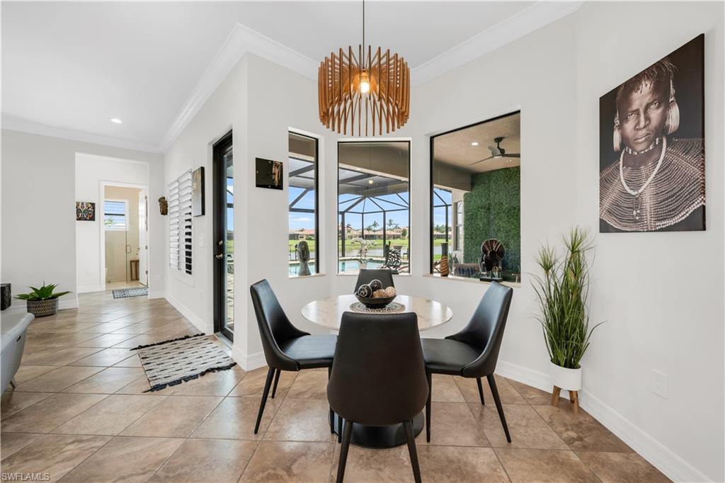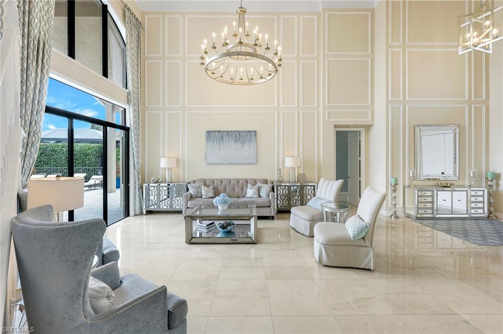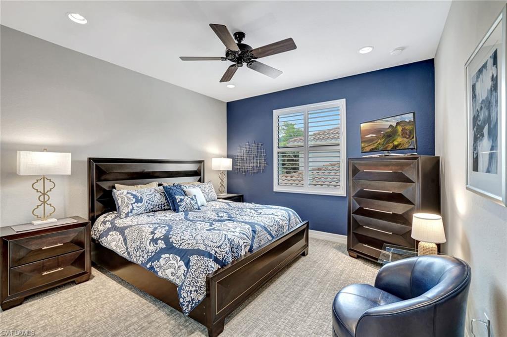 Behind the gated courtyard of this thoughtfully curated Carlyle lies a home designed for effortless living & unforgettable entertaining, where every day feels like a vacation. The interior has just been freshly painted, creating a crisp, inviting backdrop that complements the home’s refined finishes & sunlit spaces. Step through decorative glass entry doors into an expansive, entertainer’s dream layout, where the wet bar, great room, flexible dining area, and gourmet kitchen flow seamlessly to the outdoors. A sparkling lake view beckons you to the screened lanai, which offers ample room to relax or dine alfresco. Spend your days lounging by the saltwater pool, then prepare dinner in the outdoor kitchen—equipped with marine-grade cabinetry, a sink, granite surfaces, dual burners & a 60,000 BTU wok-capable burner, all powered by a buried 120-gallon propane tank. Inside, no detail has been overlooked. The chef’s kitchen features upgraded white cabinetry, granite counters, a new GE Café four-door refrigerator, double wall ovens, newer microwave, range with vented hood, custom pull-out shelves & a professionally painted island. Glass atrium doors with side panels enclose the dining space, adding elegance & allowing for flexible usage. The luxurious primary suite overlooking the lake includes dual custom closets, a serene sitting area & a renovated spa-like bath. The primary bath has been updated with a newly tiled walk-in shower with linear drain and new fixtures. Vanities feature new quartz counters, professionally painted cabinetry, framed mirrors & Rohl sinks. Both guest suites offer private baths & walk-in closets. One ensuite bath includes a remodeled shower with frameless glass doors & new tile. The versatile club room adapts to your needs—ideal as an office, den, or media space. Additional highlights include 18" porcelain tile throughout, plantation shutters, crown molding, Hunter Douglas Luminette sheers & built-in closets. A well-appointed laundry room offers a newer GE Profile washer and dryer, abundant cabinetry, a laundry tub, and a secondary refrigerator. The garage is equally refined with epoxy floors, insulated doors & built-in storage. Peace of mind comes standard with impact glass throughout, a Ring doorbell, fenced yard for pets, and a generator transfer switch. Additional upgrades include a new whole-house water softener system, UV lights on the A/C, & landscape lighting. Riverstone offers a vibrant, vacation-inspired lifestyle for all ages. Located in North Naples, just minutes from I-75 and zoned for "A"-rated schools, the community features a fitness center, social hall, resort-style pool, lap pool, spa, five lighted tennis courts, outdoor basketball and pickleball, a full indoor basketball court, tot lot, children’s water play area, game room, and an activities coordinator; making it easy to meet new friends. Whether hosting, relaxing, or simply enjoying the view, this home delivers the ideal setting for your Naples lifestyle.
