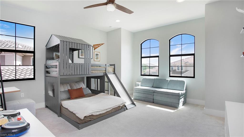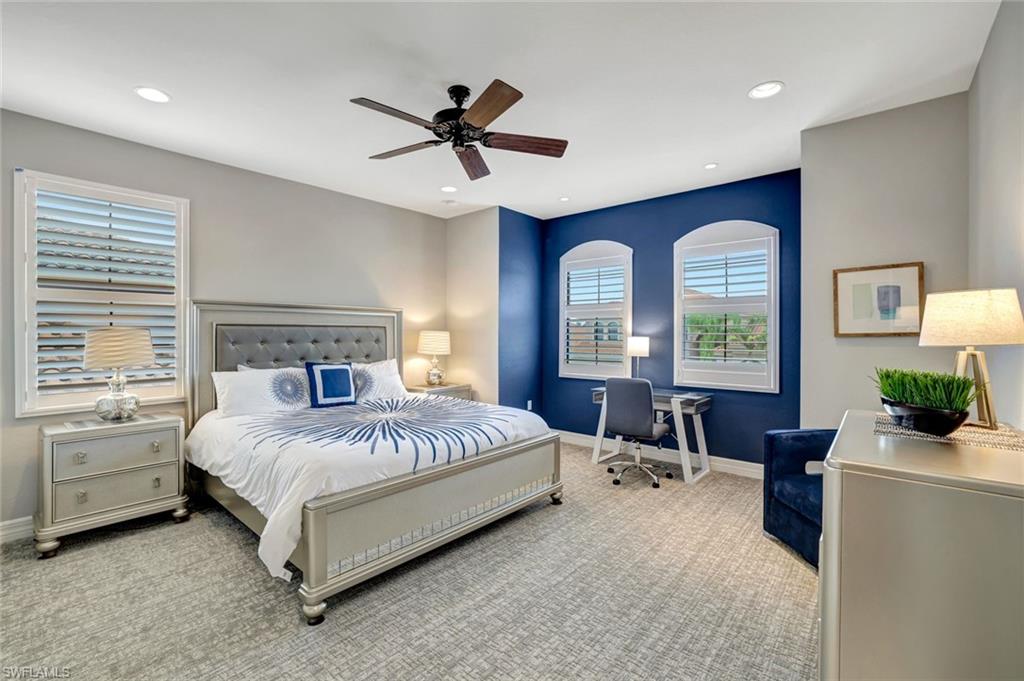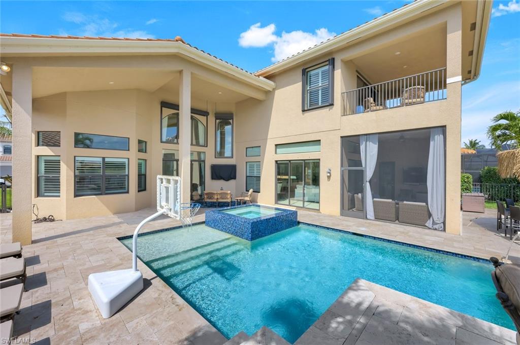 Welcome to this stunning six-bedroom, five-bath stucco home, perfectly situated in the exclusive Riverstone gated community in North Naples! This exquisite residence masterfully blends luxury and comfort, offering spacious living areas designed for relaxation and memorable entertaining experiences. Step inside to discover an expansive layout that provides ample living space for the entire family. The open-concept design creates a warm and inviting atmosphere, perfect for gatherings. The spacious loft area offers a cozy retreat, ideal for family movie nights, game sessions, or simply unwinding with friends. The primary suite serves as a private sanctuary, featuring custom walk-in closets and a luxurious spa-inspired bathroom. Enjoy the elegance of dual vanities, separate "his and hers" spaces, and a stunning double shower, all meticulously designed for your comfort. Step outside onto your private balcony, where you can savor quiet mornings with coffee or unwind in the evening under a starlit sky. Attention to detail is evident throughout the home, from plantation shutters adorning every window to the gourmet kitchen, equipped with premium upgrades, ample counter space, and abundant seating for family gatherings and entertaining guests. This gorgeous GL home features the desirable Shiraz floor plan, thoughtfully designed to provide ample space for everyone in the family. With six generously sized bedrooms, this residence is perfect for accommodating family members, guests, or even creating dedicated home offices. Each bedroom offers a cozy retreat, complete with large windows that fill the rooms with natural light, enhancing the warm and inviting atmosphere. The well-appointed layout ensures that every resident enjoys their own private space while still being part of a cohesive living environment. The open concept living areas flow seamlessly, making it easy to entertain guests or enjoy family time together. Whether it’s hosting gatherings in the spacious living room or enjoying family meals in the dining space, this home is designed for modern living and comfort. The outdoor living space is truly a resort-like oasis, complete with a sparkling heated saltwater pool, a cozy lounge area, and plenty of room for entertaining—perfect for cultivating that “vacation-at-home” lifestyle. As part of this community, you will enjoy incredible amenities, including two expansive pools, a relaxing hot tub, children’s water play area, an indoor gym, and a state-of-the-art workout center and covered playground. For leisure and entertainment, the community also features a game room, providing endless opportunities for family fun and friendly competitions. Don’t miss out on this exceptional opportunity to make this remarkable home your own. Schedule a viewing today, and start envisioning the life you could lead in this unparalleled residence!