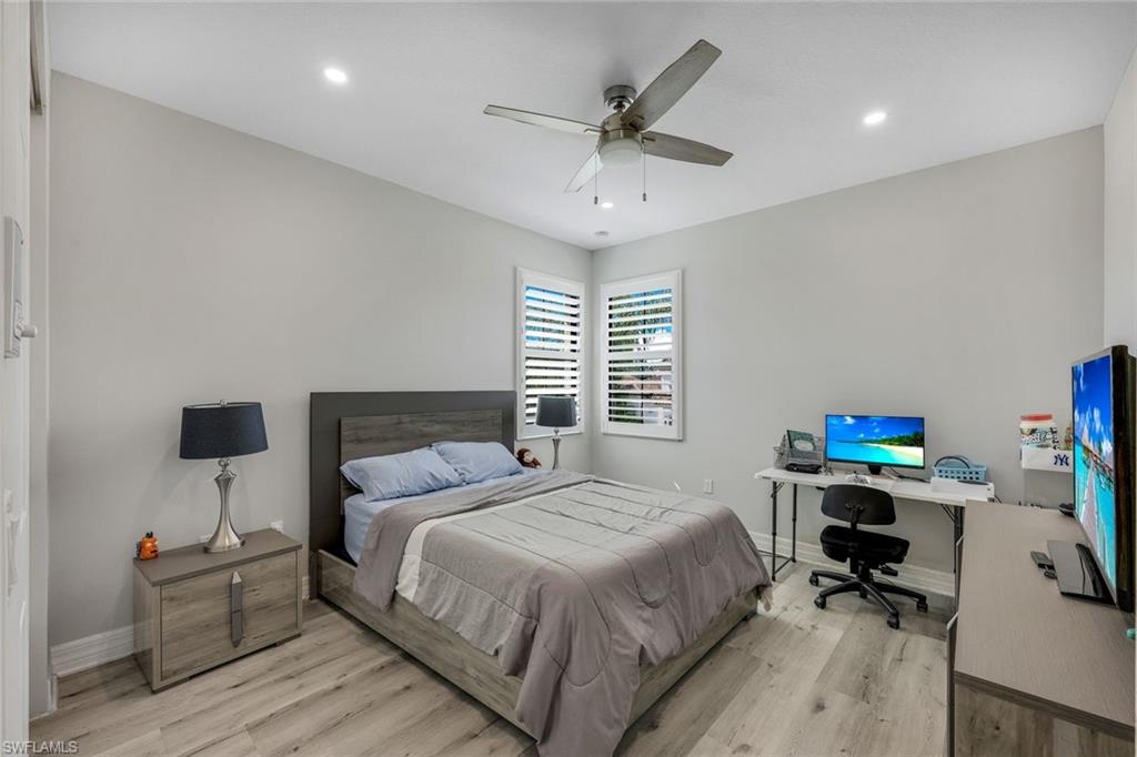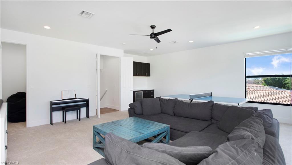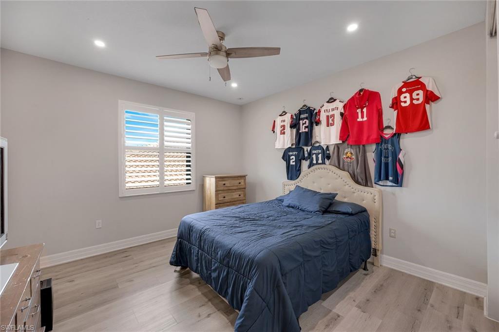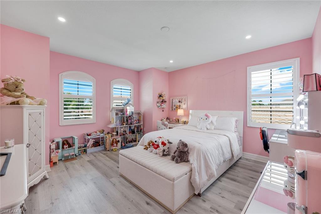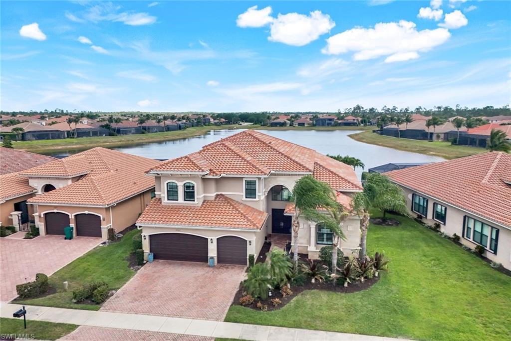 Perfectly positioned on a peaceful cul-de-sac in the sought-after Riverstone community, this expansive and crafted Shiraz home offers 4,100+ sqft. of stylish, well-planned living for today’s modern household. With six bedrooms, five bathrooms, a 3-car garage, covered entry, and an upper-level loft, the home accommodates large households and guests with ease. The floor plan flows beautifully, offering generous gathering spaces, a chef-ready kitchen, and a serene primary suite on the second level. The gourmet kitchen stands out with a double oven, vented hood, custom cabinets, a center island with a wine fridge, a walk-in pantry, and a striking backsplash window framing for additional lighting. Throughout the home, you’ll find designer lighting & fans, custom shades, plantation shutters, and built-ins that elevate both style and functionality. Additional enhancements include a mud room, (2yr) A/C, Leaf-Home water filtration system, a whole-home camera system, a wet-bar on the 2nd floor, and luxury wallpaper. The primary bedroom features a private veranda overlooking the lake, dual vanities, two walk-in closets crafted by Inspired Closets, upgraded hardwood flooring, and a tray ceiling trimmed with crown molding. The upstairs laundry room includes a utility tub for added convenience. The garage features epoxy flooring and custom-built storage closets, complemented by wall and overhead storage for exceptional organization. Outdoor living shines in this home. The paver areas have been restored, lifted, reset, and sealed, creating a fresh, durable foundation for entertainment. The expansive backyard was fully fenced in 2025—features a screened enclosure, outdoor shower, and pre-wiring for a large future pool, offering endless opportunities to personalize your Florida oasis. The neighborhood is zoned for highly rated schools and conveniently located near I-75, offering quick access to regional destinations, RSW Airport, and Naples’ premier shopping and dining. Famous SWFL Beaches are only 9 miles away. Riverstone residents enjoy an impressive array of amenities, including a 13,000 sqft. clubhouse, multiple pools, Har-Tru tennis courts, indoor and outdoor basketball/pickleball facilities, fitness center, yoga studio, game room, social rooms, a covered pavilion, tot lot, splash zone, and an active event calendar. A guarded, 24/7 gated entrance ensures an added level of security and peace of mind.