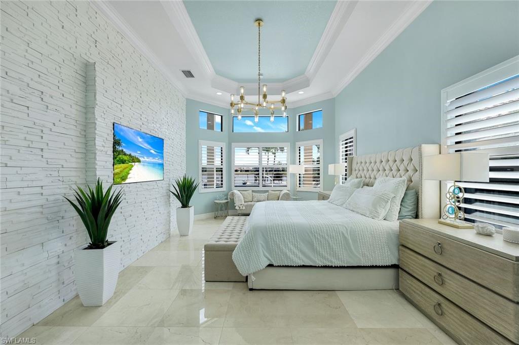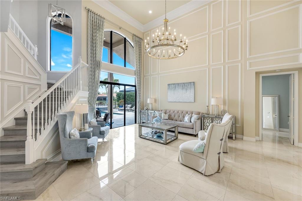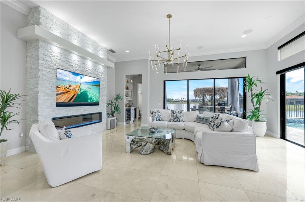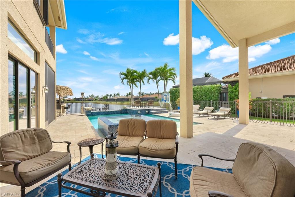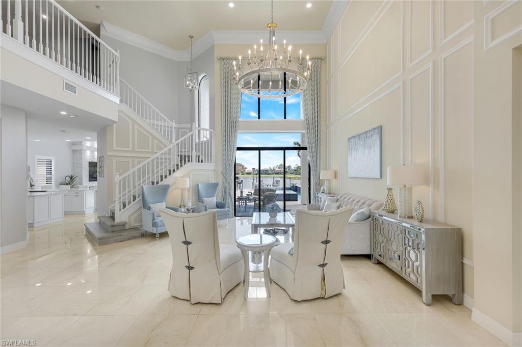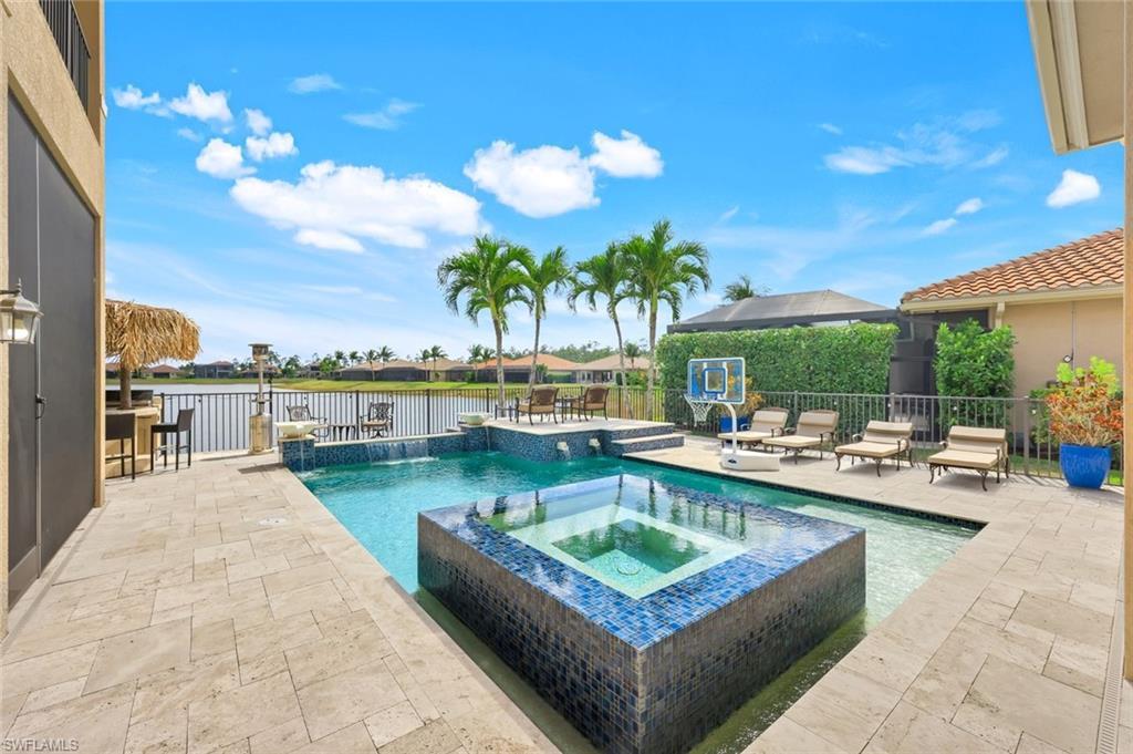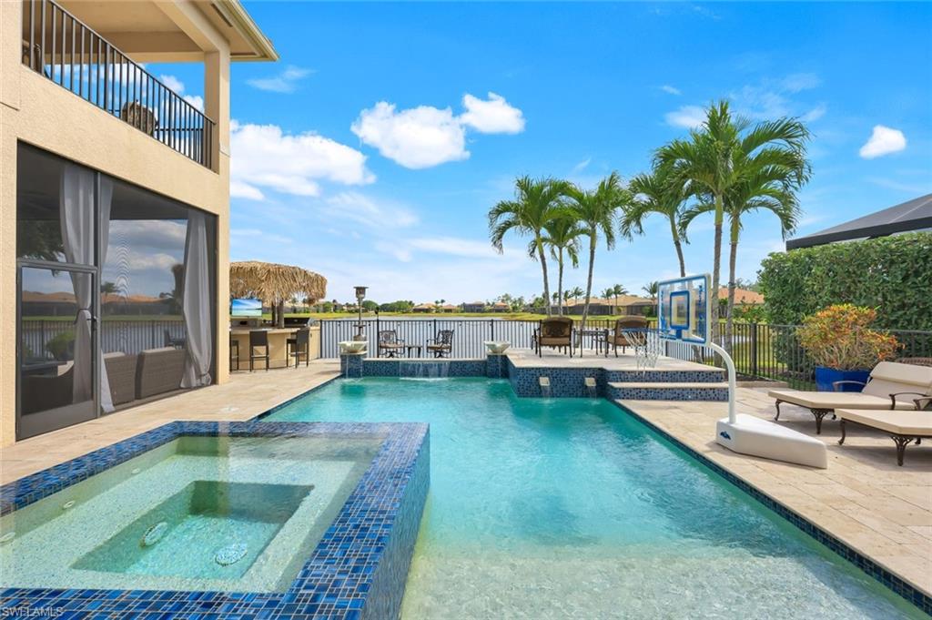 MOTIVATED SELLER...This extraordinary highly sought-after Dubonnet Grande Model located on a premium lakefront lot is a true masterpiece with over $350,000 in upgrades. This sprawling estate home features over 4980 sqft, 2 story entrance foyer and great room, 5 bed, 5.5 BA, loft, game/movie Room. Detailed crown molding. Plantation Shutters. Crema Marfil Marble flooring throughout entire first floor. Entire 2nd floor all new luxury Vinyl flooring. Formal dining room area, beautifully appointed kitchen with transom window, Island, dual sinks, double oven and casual dining space. Expanded "Built out" Family room with custom built fireplace with tv and surround sound. Bar with wine fridge and cigar humidor. Primary bedroom with custom built wall with enclosed tv, spa-like bath with dual sinks, walk in shower with multi shower heads, Roman bath tub, built in hamper/linen. Upstairs 3 BR, loft, game/movie room with reclining seats, custom wet bar and opening to large balcony overlooking the lake. Entertainment paradise resort style backyard travertine, saltwater pool, integrated vanishing edge spa and fountains, Tiki bar with fridge, tv, speakers and grill. 3 car garage with Electric Vehicle Charger. Impact glass, accordion/electric shutters. Located in North Naples, minutes to I-75 & zoned for "A" rated schools. Recreation area includes a fitness center, social hall, resort style pool, lap pool, spa, 5 lighted tennis courts, outdoor basketball/pickleball, full indoor basketball court, tot lot, children's water play area & game room & an activities coordinator. Don’t miss your chance to experience the Southwest Florida lifestyle you’ve been dreaming of. Paradise is waiting for you!
