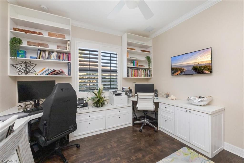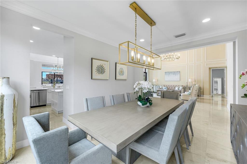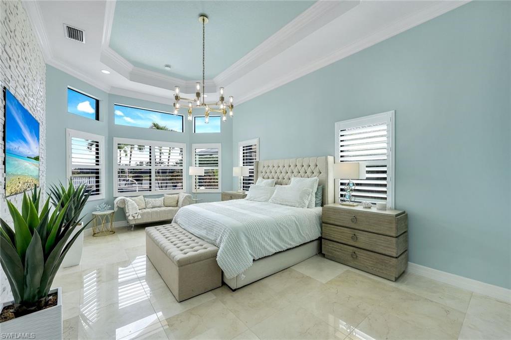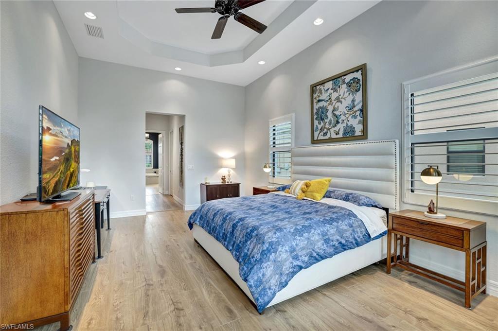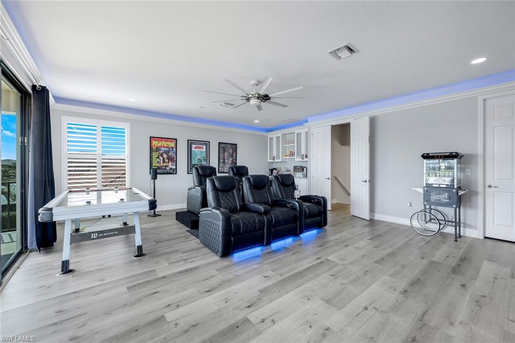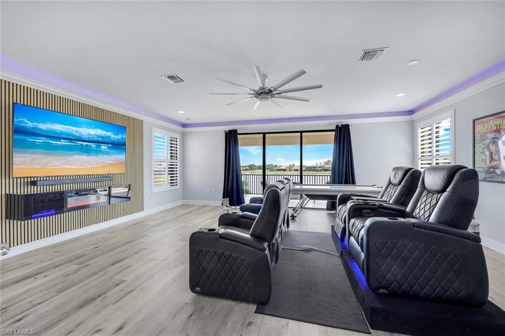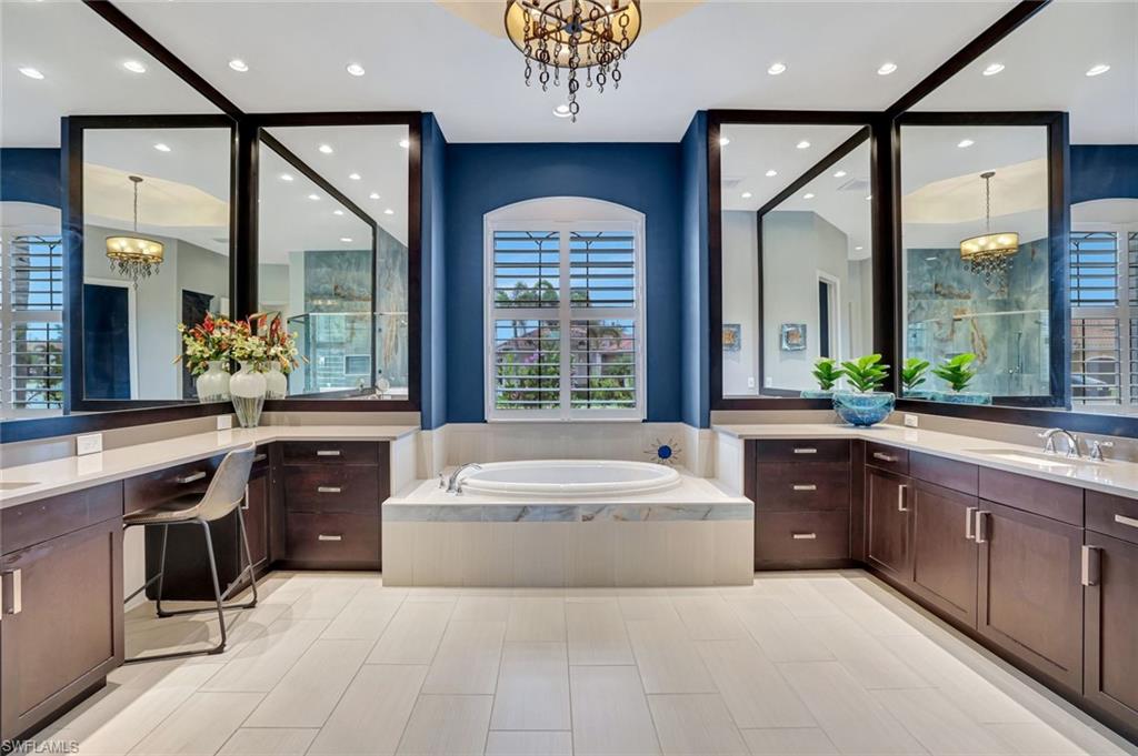 MOTIVATED SELLER...This extraordinary highly sought-after Dubonnet Grande Model located on a premium lakefront lot is a true masterpiece with over $350,000 in upgrades. This sprawling estate home features over 4980 sqft, 2 story entrance foyer and great room, 5 bed, 5.5 BA, loft, game/movie Room. Detailed crown molding. Plantation Shutters. Crema Marfil Marble flooring throughout entire first floor. Entire 2nd floor all new luxury Vinyl flooring. Formal dining room area, beautifully appointed kitchen with transom window, Island, dual sinks, double oven and casual dining space. Expanded "Built out" Family room with custom built fireplace with tv and surround sound. Bar with wine fridge and cigar humidor. Primary bedroom with custom built wall with enclosed tv, spa-like bath with dual sinks, walk in shower with multi shower heads, Roman bath tub, built in hamper/linen. Upstairs 3 BR, loft, game/movie room with reclining seats, custom wet bar and opening to large balcony overlooking the lake. Entertainment paradise resort style backyard travertine, saltwater pool, integrated vanishing edge spa and fountains, Tiki bar with fridge, tv, speakers and grill. 3 car garage with Electric Vehicle Charger. Impact glass, accordion/electric shutters. Located in North Naples, minutes to I-75 & zoned for "A" rated schools. Recreation area includes a fitness center, social hall, resort style pool, lap pool, spa, 5 lighted tennis courts, outdoor basketball/pickleball, full indoor basketball court, tot lot, children's water play area & game room & an activities coordinator. Don’t miss your chance to experience the Southwest Florida lifestyle you’ve been dreaming of. Paradise is waiting for you!
