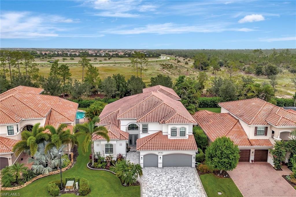 Nestled overlooking a private and protected preserve, this meticulously maintained "Venetian" floorplan home offers just over 4,500 sq. ft. of luxurious living space. With 5 bedrooms, den, loft, 5 full baths, and a 3-car garage, this residence provides ample room for family living and entertaining. The split floorplan includes formal living and dining rooms, an updated chef’s kitchen, a spacious family room, and a den with an ensuite bath that can easily be used as a 6th bedroom all on the ground floor. Upstairs, you’ll find a generously sized loft, 4 guest bedrooms (3 of which have ensuite baths), and a magnificent primary suite featuring a sitting area, his and her walk-in closets with built-ins, and a luxurious bath with oversized vanities, center soaking tub, and walk-in shower. Both the loft and the primary suite open to a 35’x11’ screened balcony, offering serene views of the preserve. The home is designed for both comfort and entertaining, with a stunning outdoor living area complete with a fully-equipped outdoor kitchen, and heated saltwater pool with raised spa. Special features abound, including a recently remodeled kitchen (2023) with custom cabinetry, double-thick quartz countertops, and high-end appliances, including a 48” built-in Sub-Zero refrigerator/freezer, Wolf oven, microwave, and induction cooktop. Additional updates include two newer HVAC systems with all-new ductwork; a two-story screen cage with super screen (installed 2019); freshly painted exterior (2024); whole-house water softener; glued-down engineered wood floors on the first floor and updated sculpted carpeting in the den and second floor; custom built-in in the family room; crown molding throughout the common areas and primary suite; plantation shutters; in-ceiling speakers; fenced rear yard; and more! Storm safety and convenience are top priorities with hurricane impact windows on the front of the home, accordion shutters on side windows, and Stormsmart electric roll-down hurricane screens on the rear of the home, enclosing both covered lanais. Located in Riverstone, North Naples' premier community, this home offers access to incredible amenities, including a clubhouse with a fitness center, indoor/outdoor basketball courts, a resort-style pool, lap pool, kiddie water park, playground, 5 tennis courts, billiards room, social hall, game room, and more. Riverstone’s prime location is just minutes from I-75, the beach, Mercato, RSW, and downtown Naples. Top-rated schools are nearby, including Laurel Oak Elementary, Oakridge Middle School, and Aubrey Rogers High School. Low HOA Fees of just $1450/quarter which includes all clubhouse amenities, gated entry, home landscaping, home irrigation water, and home irrigation system maintenance.