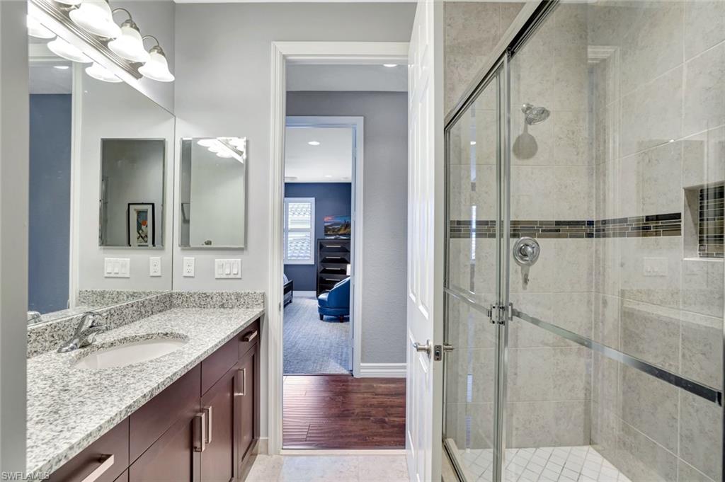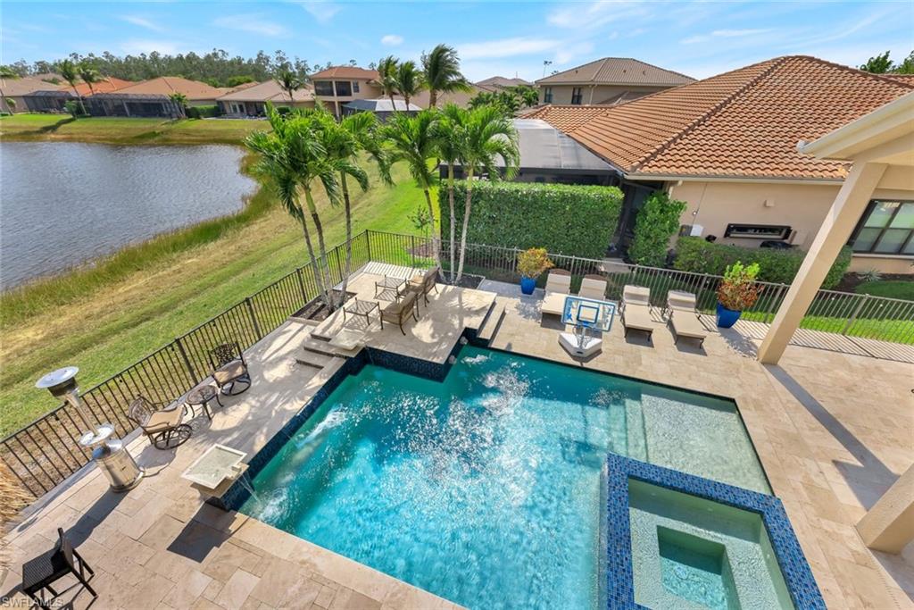 Substantial Price Adjustment=Tremendous Value! Rarely does a home of this caliber become available at such a reduced price. Welcome to this stunning estate home in the highly sought-after Riverstone community in Naples, FL. This Venetian floor plan home is perfect for families seeking both luxury living and a vacation-inspired lifestyle. Offering 6 spacious bedrooms, 5 baths, and a versatile loft, this home provides 4,503 SF of living space. Situated on an oversized .39-acre lot with beautifully landscaped grounds, the property also boasts a serene lake view, creating a peaceful retreat. Step outside to your own private oasis as the entire outdoor space is designed to enhance your vacation-style living. The expansive two-story screened lanai features a sparkling pool with fountain bowls and a relaxing spa. The outdoor kitchen makes it easy to host barbecues and gatherings, while the fenced yard offers plenty of space for kids to play or dogs to run. Inside, the gourmet kitchen is a chef’s dream, equipped with an extended walk-in pantry, new accent lighting, a wall oven, an electric GE cooktop with vented hood, both quartz & granite counters & upgraded cream-colored cabinets. The kitchen is located in the heart of the home and flows seamlessly into the family room, formal living & dining areas. Downstairs you will also find a bedroom with a Murphy bed, which makes for fantastic office space or guest room. Upstairs, the primary suite offers a spacious retreat, complete with dual walk-in closets and an ensuite bath featuring a newer frameless glass shower door and a soaking tub. The upstairs also features a balcony that offers multiple access points, providing an ideal place to relax, enjoy the serene lake view, and experience Florida’s beautiful sunrises. Fine finishes include plantation shutters, an upgraded wood/iron staircase, hardwood floors upstairs, decorator lighting & fans and crown molding. For added convenience and comfort, this home features a finished laundry room with upgraded LG washer & dryer, a sink, folding counter, and cabinetry. The home is freshly painted on the exterior & has new exterior lighting. Two newer A/C units ensure comfort year-round. A whole home generator with 500-gallon propane tank plus impact windows and doors provide convenience & peace of mind during and after a storm. Riverstone offers a social, vacation-inspired lifestyle for all ages. Located in North Naples, minutes to I-75 & zoned for "A" rated schools. Recreation area includes a fitness center, social hall, resort style pool, lap pool, spa, 5 lighted tennis courts, outdoor basketball/pickleball, full indoor basketball court, tot lot, children's water play area & game room & an activities coordinator so it is easy to make new friends. If you’re looking for a home that combines comfortable living with a vacation lifestyle, look no further. This stunning property in Riverstone is the perfect place to create lasting memories with your loved ones!