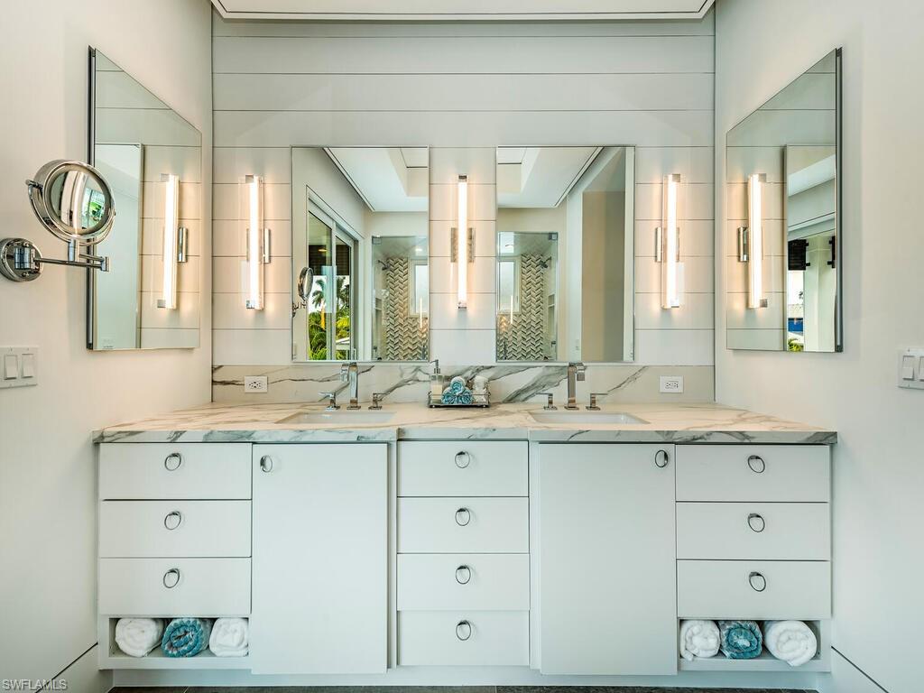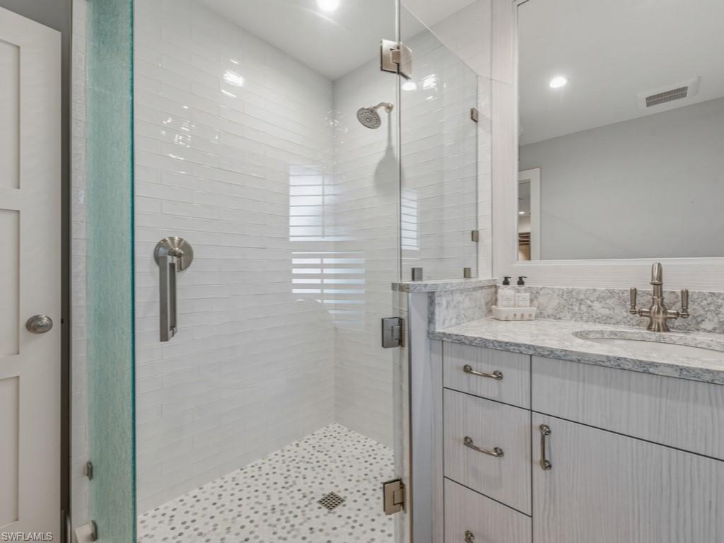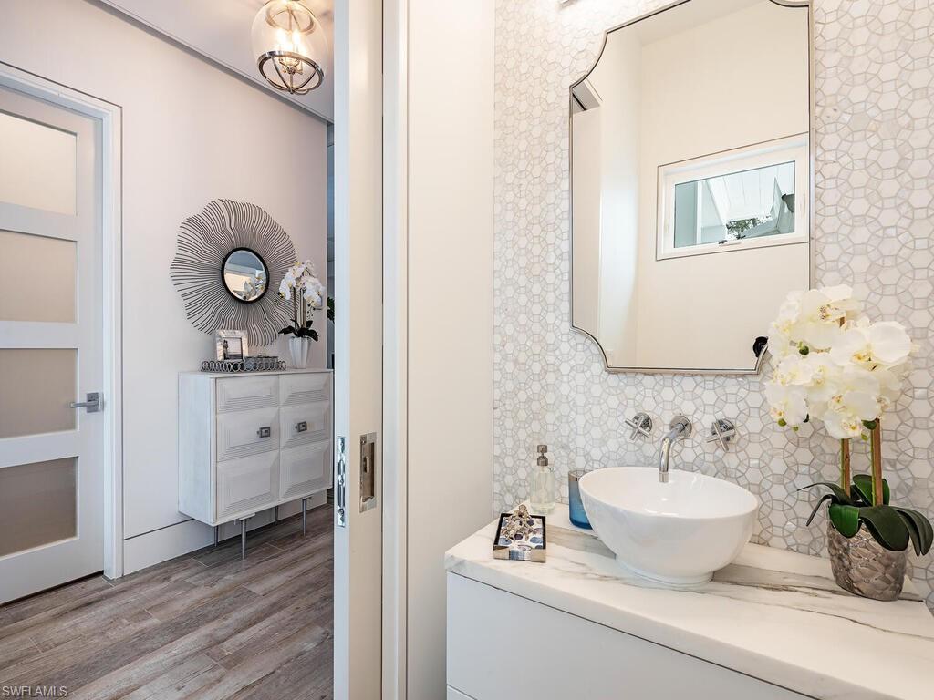 Completely reimagined and rebuilt, this very private 3 bedroom , 3 1/2 bath , 2 car garage coastal-contemporary residence lives like a brand-new home and offers the rare combination of modern luxury, full-home storm protection, and exceptional upgrades throughout. Every major system—roof, plumbing, electrical, windows, mechanicals, insulation, and structural components was replaced, providing peace of mind and long-term value just minutes from downtown Naples. A 1000 gal propane tank, tankless water heater , water filtration system, security system , ring cameras ,a fully fenced in back yard ,plus generator will complete your wishlist. Step inside to a warm, inviting interior enhanced by wide-plank flooring, designer fixtures, custom millwork, and a beautifully curated color palette. The chef’s kitchen features quartz countertops, custom cabinetry with glass accents, soft-beige tile work, floating shelves, and a gas range perfectly complemented by the home’s natural textures and refined finishes. The foyer and living room showcase custom ceiling beams, adding architectural interest that pairs seamlessly with the elegant lighting and craftsmanship throughout. The great room centers around the gas fireplace, accented with layered lighting and elevated materials. Updated bathrooms include contemporary tile selections, walk-in showers, modern vanities, and soft neutral tones that reflect the home’s cohesive design aesthetic. The outdoor living area has been fully renewed with a travertine outdoor deck, pool, spa ,pool bath , odor shower and lanai, offering generous space for dining, lounging, and enjoying the mature landscape, including beautifully established oak trees. The entryway & patio features chicago reclaimed brick that gives that unique first impression of the home. Spray-foam attic insulation and hurricane reinforcement further enhance efficiency, comfort, and long-term durability. The result is a residence that blends new-construction integrity with sophisticated design—modern, efficient, and finished with timeless style in a prime Naples location close to beaches, the Gordon River Greenway, Baker Park, shopping, dining and entertainment. A must see to appreciate this unique home.