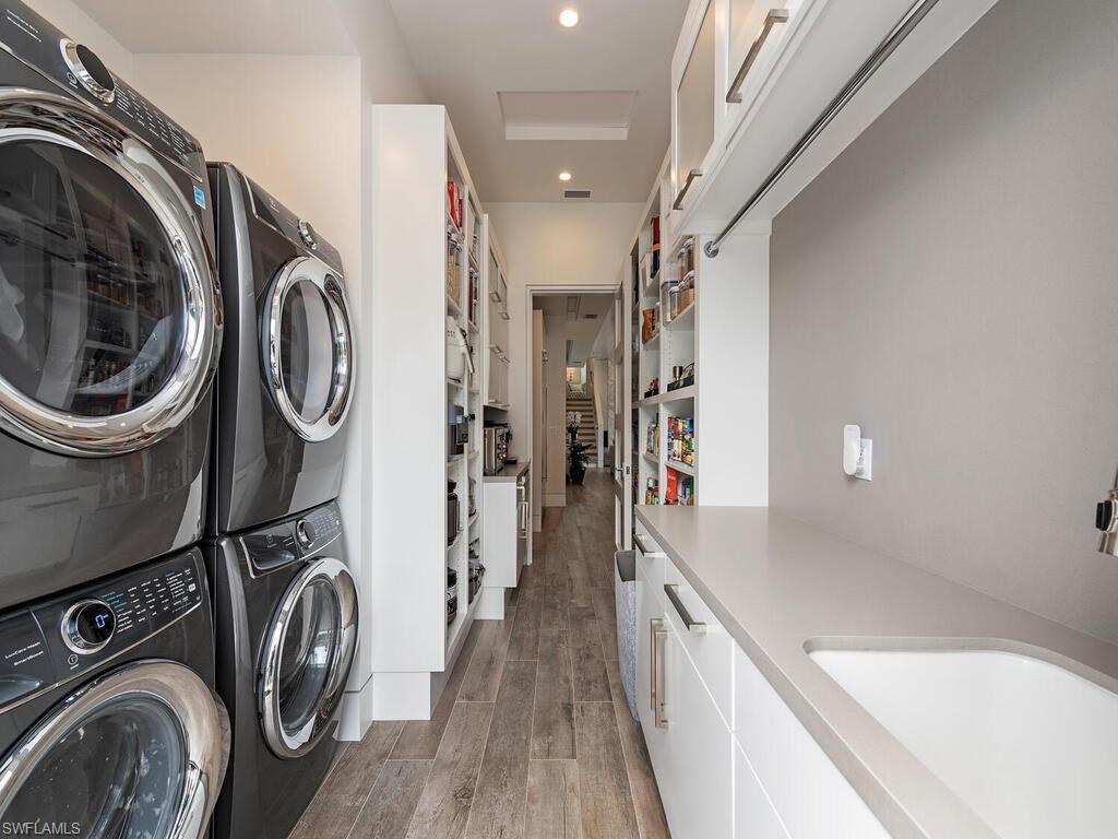 Prepare to be captivated by this exceptional waterfront residence, custom built by JVM and located in one of Naples’ most desirable communities — notably with no flooding or storm damage from recent hurricanes. This beautifully designed one-story home showcases a seamless blend of timeless craftsmanship and modern luxury. The open-concept great room floor plan is flooded with natural light and offers stunning water views throughout. Soaring volume ceilings with elegant wood beam accents, wide-plank engineered hardwood flooring, and sophisticated finishes set the tone for effortless coastal living. The heart of the home is the chef’s kitchen, featuring a 12-foot quartz island, Viking stainless steel appliances, a gas range, farmhouse sink, pristine white cabinetry, and a spacious walk-in pantry. A walk-through butler’s pantry—with second refrigerator, laundry area, sink, and custom cabinetry—adds both convenience and charm. With three generously sized bedrooms, a private den, and four impeccably appointed full baths, the layout offers comfort, style, and flexibility. Step outside to a true waterfront oasis: a saltwater pool, oversized spa, sun shelf, and a screened-in covered boathouse create the ultimate backdrop for relaxation or entertaining. A private dock with 15,000 lb lift, water and electric, provides quick Gulf access and puts downtown Naples, Keewaydin Island, and Marco Island just minutes away by boat. Additional highlights include a spacious three-car garage, 30- and 50-amp service ideal for generators or EV charging, and a rare combination of location, protection, and premium finishes. This is coastal living at its finest—schedule your private showing today.