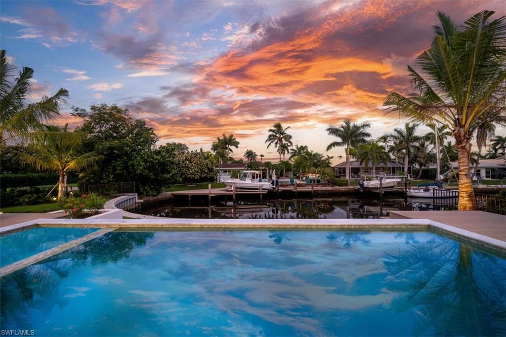 On a prized Kingfish Road open-bay lot in the exclusive Royal Harbor community, this impeccably renovated four-bedroom, four-bath residence, with an additional dedicated office, offers one of Naples exceptional assets: expansive western exposure with panoramic views of Naples Bay. Designed to maximize its breathtaking setting, the home is positioned to capture unparalleled sunsets that paint the sky with vivid color each evening. During the day, you will be able to watch sailboats glide through the Bay. High ceilings and walls of glass invite abundant natural light, framing sweeping water views from nearly every room, and creating a seamless connection between indoor luxury and outdoor beauty. The open-concept interior flows effortlessly for contemporary living and elegant entertaining. A chef-inspired kitchen serves as heart of the home, featuring a gas cooktop, top-tier appliances, stylish custom cabinetry and an oversized island with ample seating, ideal for gatherings of any size. Within five miles of Naples renowned beaches and just moments from the famed dining and boutique shopping of 5th Avenue South, this home blends waterfront tranquility with unmatched convenience. A rare opportunity to own a beautifully updated, sunset-facing estate on one of Royal Harbor’s desired open-bay parcels, where every day feels like a postcard.