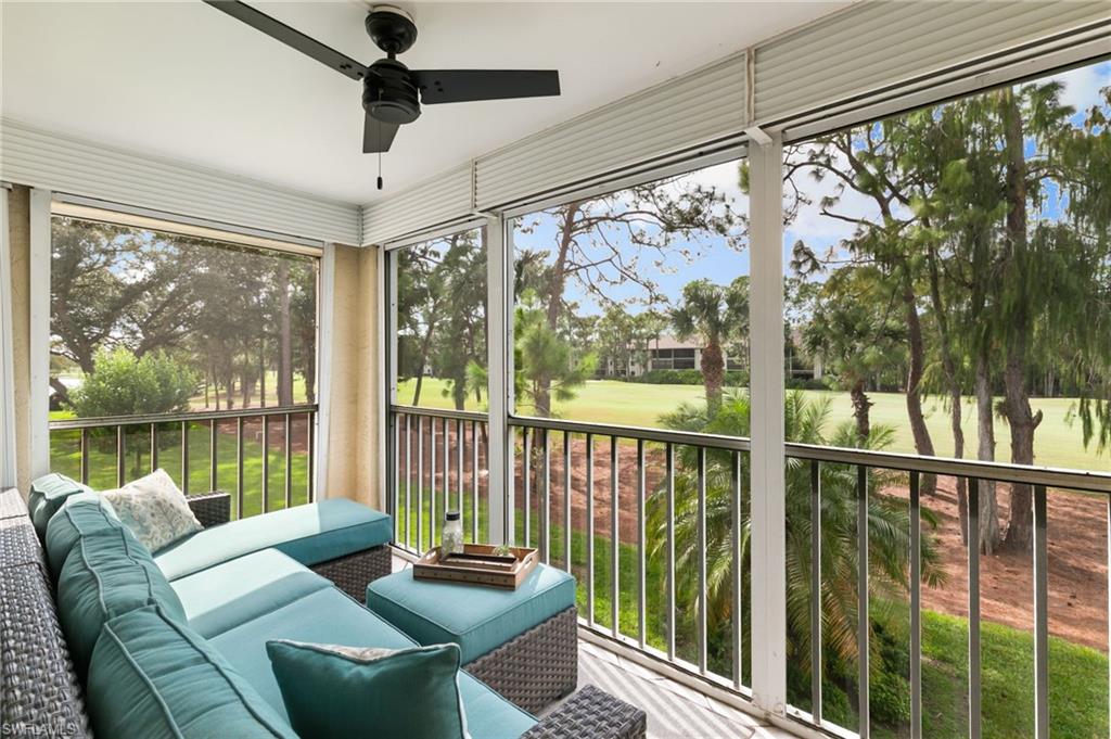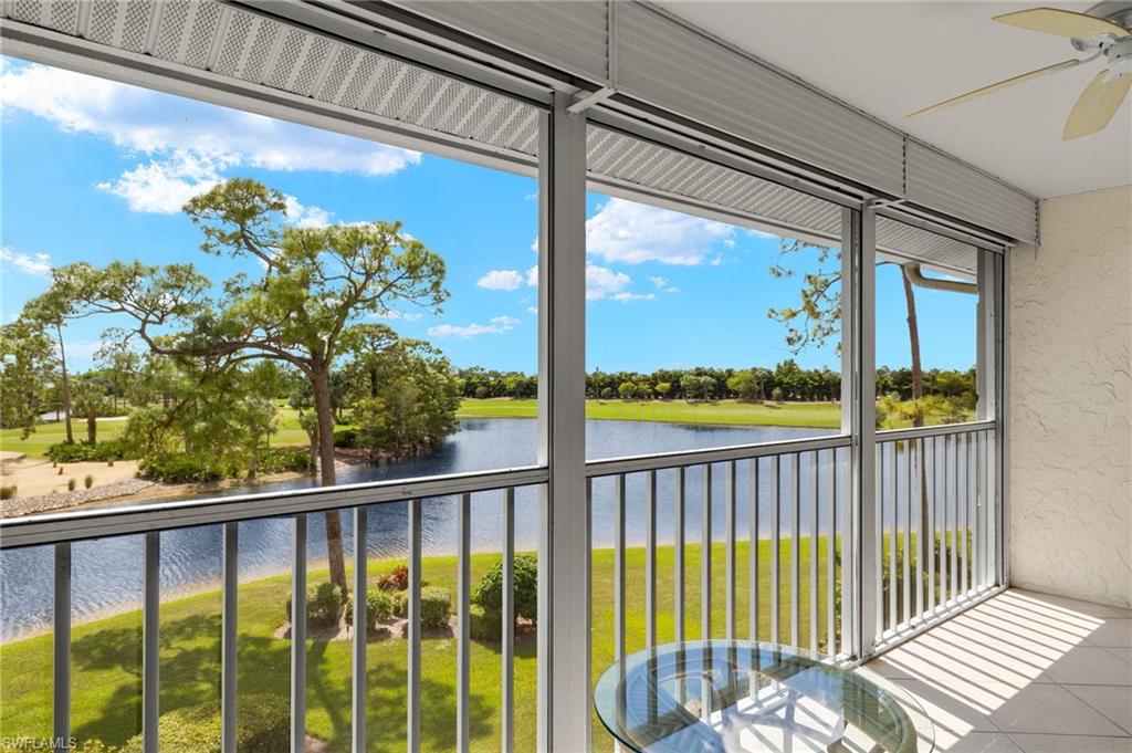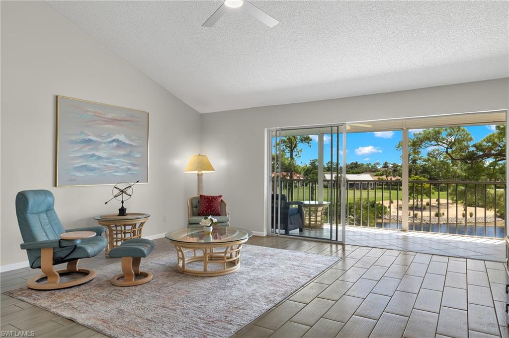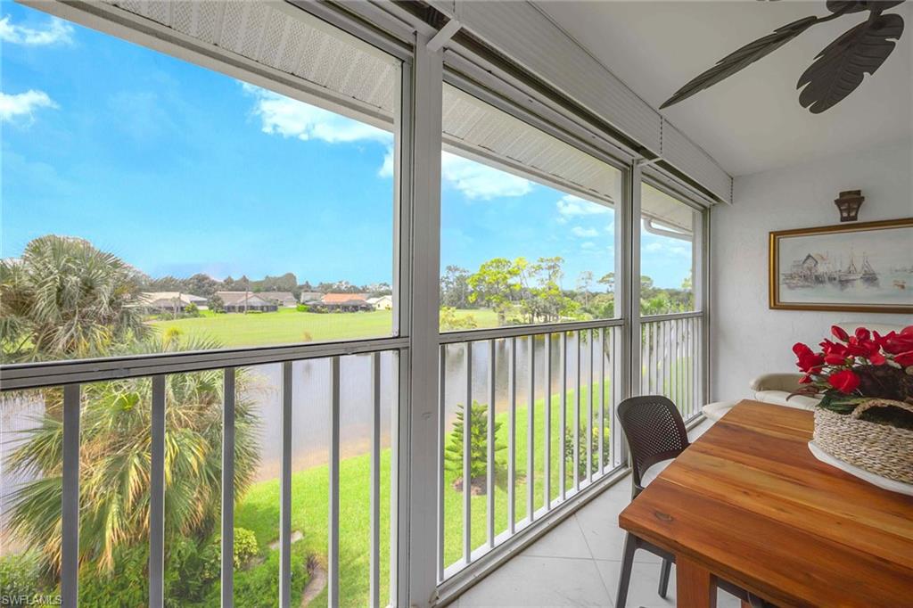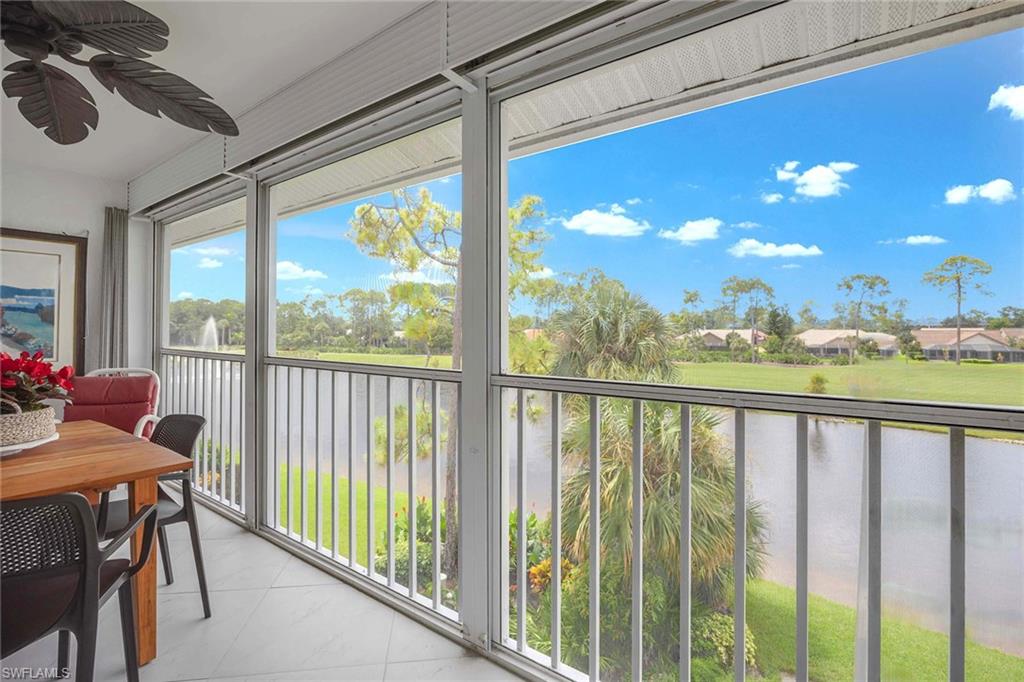 Welcome to Amberly Village! This two bedroom two bath top- floor property is turnkey furnished, perfectly priced and ready for you to move in and enjoy the 2026 Season! Upon entering, the remodeled eat-in kitchen is to the left with lots of natural light, granite countertops, stainless steel appliances and pantry. This unit is very nicely furnished and offers vaulted ceilings, a gorgeous remodeled primary bathroom and large walk-in closet. Porcelain tile flooring is throughout the main living areas with carpet in the bedrooms. Additional features include hurricane impact glass windows, storm shutter on the lanai and a large laundry room with with washer, dryer, and plenty of storage for your beach supplies. Enjoy your favorite beverage on your private screened-in lanai watching Naples nightly sunsets overlooking the fourteenth fairway. Amberly Village is perfect for snowbirds or full-time residents wanting to enjoy the best of Florida's lifestyle. Meet your new neighbors at Amberly's pool, tennis courts w/pickleball lines, and bocce courts or make your way to the clubhouse to enjoy the restaurant, fitness center, pro-shop, library, fire pit, etc. Royal Wood offers an 18-hole championship golf course w/multiple tees, 2 practice areas & walk-on privileges. Golf memberships are immediate with no waitlist & 70 brand new golf carts add to the fun! Social activities include live music, happy hours, cards, trivia, bingo, cornhole games, golf scrambles, holiday dinner dances & more! Located just 6 miles from Naples' famous 5TH AVE South, 3RD ST South & beautiful Gulf beaches, Royal Wood is just a few short miles from Naples Pickleball Center, Celebration "food truck" Park, Tin City, Sugden Park, Naples Botanical Gardens, Physicians Regional Hospital & more. Take a 15 mile drive to beautiful Isles of Capri or Marco Island and enjoy your new hometown.