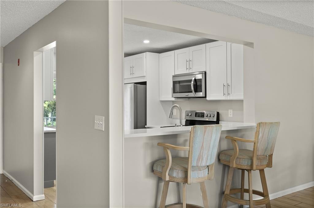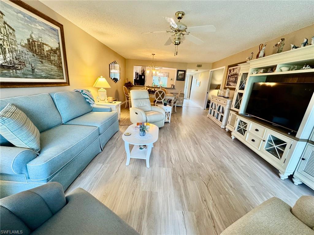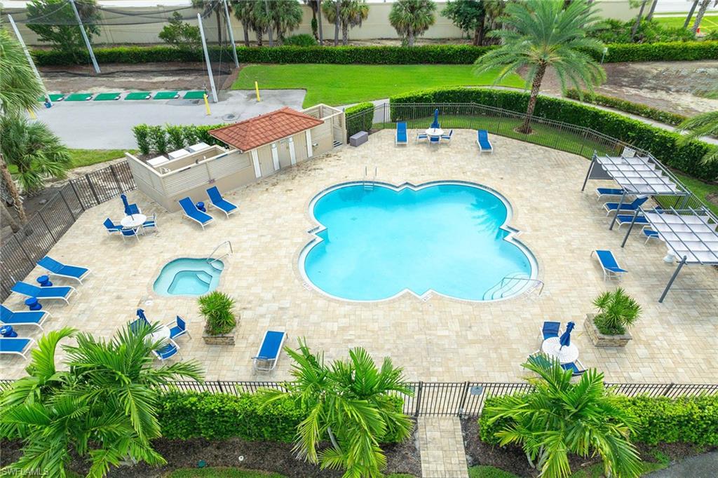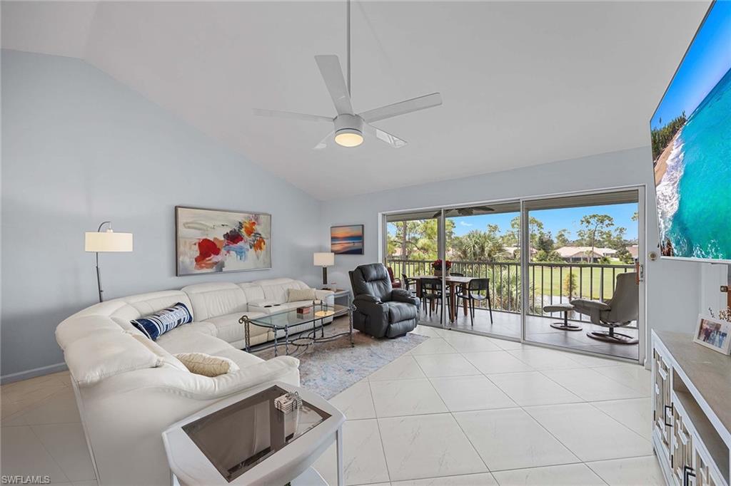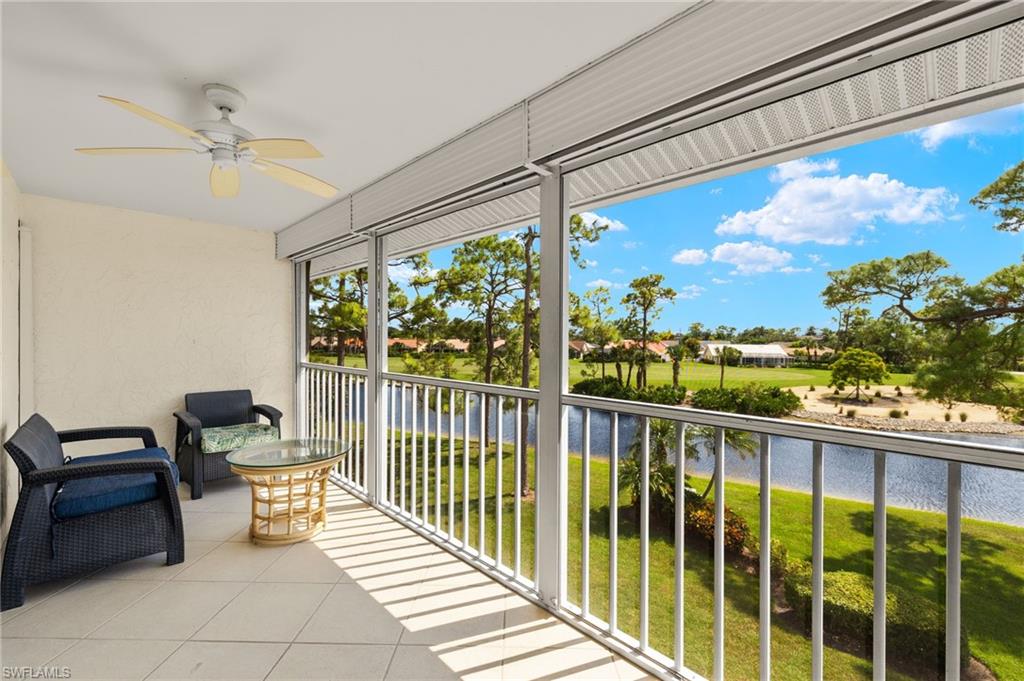 Welcome to Amberly Village! This two bedroom two bath top- floor property is turnkey furnished, perfectly priced and ready for you to move in and enjoy the 2026 Season! Upon entering, the remodeled eat-in kitchen is to the left with lots of natural light, granite countertops, stainless steel appliances and pantry. This unit is very nicely furnished and offers vaulted ceilings, a gorgeous remodeled primary bathroom and large walk-in closet. Porcelain tile flooring is throughout the main living areas with carpet in the bedrooms. Additional features include hurricane impact glass windows, storm shutter on the lanai and a large laundry room with with washer, dryer, and plenty of storage for your beach supplies. Enjoy your favorite beverage on your private screened-in lanai watching Naples nightly sunsets overlooking the fourteenth fairway. Amberly Village is perfect for snowbirds or full-time residents wanting to enjoy the best of Florida's lifestyle. Meet your new neighbors at Amberly's pool, tennis courts w/pickleball lines, and bocce courts or make your way to the clubhouse to enjoy the restaurant, fitness center, pro-shop, library, fire pit, etc. Royal Wood offers an 18-hole championship golf course w/multiple tees, 2 practice areas & walk-on privileges. Golf memberships are immediate with no waitlist & 70 brand new golf carts add to the fun! Social activities include live music, happy hours, cards, trivia, bingo, cornhole games, golf scrambles, holiday dinner dances & more! Located just 6 miles from Naples' famous 5TH AVE South, 3RD ST South & beautiful Gulf beaches, Royal Wood is just a few short miles from Naples Pickleball Center, Celebration "food truck" Park, Tin City, Sugden Park, Naples Botanical Gardens, Physicians Regional Hospital & more. Take a 15 mile drive to beautiful Isles of Capri or Marco Island and enjoy your new hometown.
