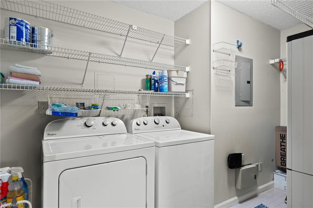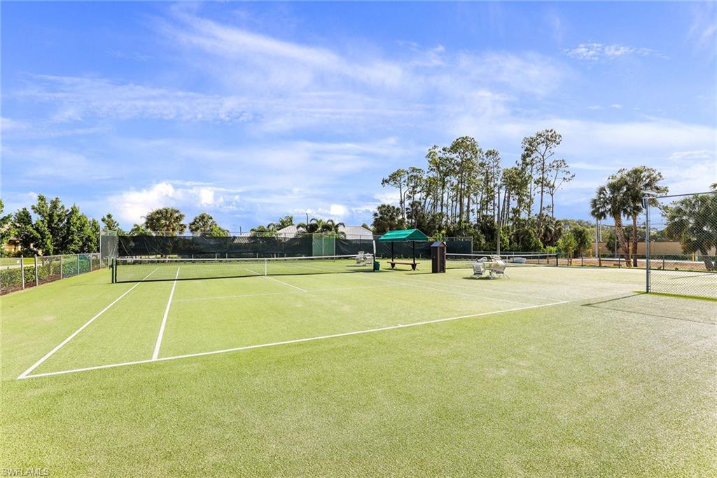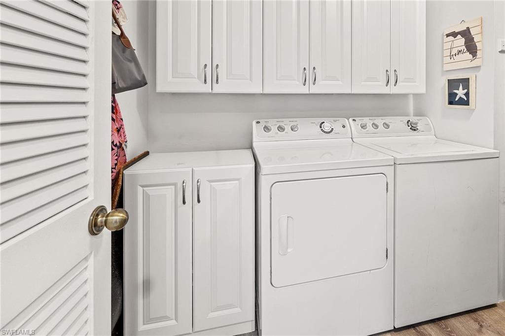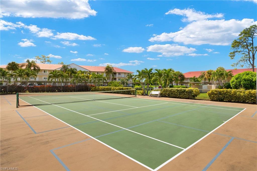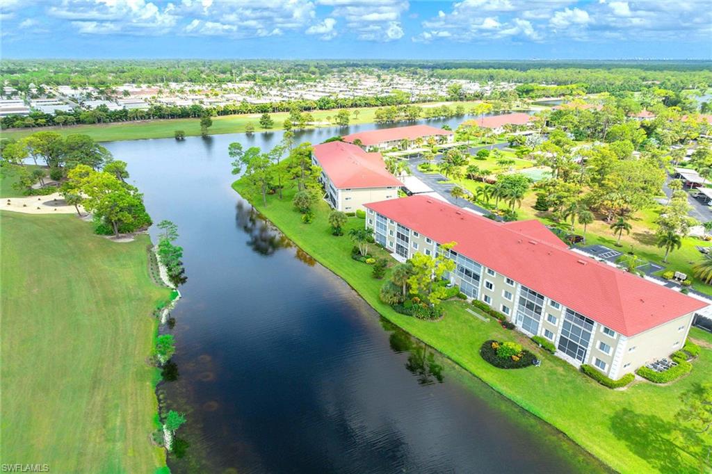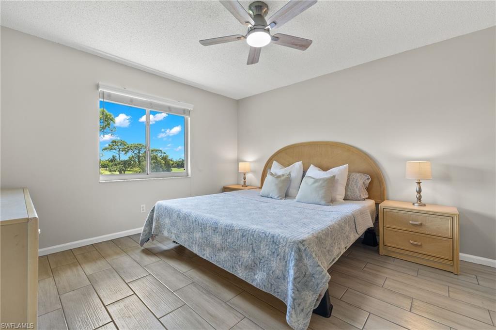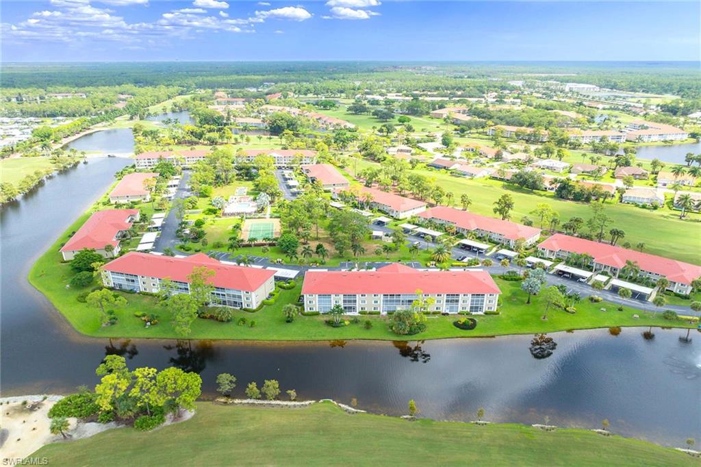 Welcome to Amberly Village in Royal Wood Golf & Country Club, an exceptionally located community central to everything you could want in a South Florida lifestyle. This is a rare, bundled golf community, only 5-6 miles from 5th Avenue, world class dining and shopping, the Naples Pier and our pristine beaches. This charming, updated condo features tile floors throughout, a beautifully appointed kitchen with custom cabinets, Quartz countertops, stainless steel appliances, and abundant storage. The 2 bedroom, 2 full bath layout is spacious and comfortable, while the 2nd floor location and west-facing screened balcony provides pretty views of the 14th fairway and the sunset, with the additional peace-of-mind that you're safe from any storm flood waters. The water heater and A/C were new in 2024 and in the laundry room you will find plenty of extra storage and a 2024 set of front-loading washer & dryer. Full golf and social memberships are yours as soon as you close, no wait-list, and amenities and activities abound. Amberly Village features a pool, spa, tennis/pickleball court and bocce for its residents, but if you're looking for a more social atmosphere, just head down to the Royal Wood clubhouse. There you will find a restaurant and bar, fitness center, racquet courts, library, pro-shop and all sorts of social activities, dances, trivia and more, and of course men's and lady's golf events on the Championship 18 hole course. When you do need to leave the community, all the needs of everyday life can be met with just a short drive...grocery stores, home improvement, medical needs and even more amusing things like Tin City, Celebration (food-truck) Park, the Botanical Gardens, the now famous Naples Pickleball Center and even beach, boating and water activities on Marco Island. Royal Wood is a great community for golfers and non-golfers alike, but with fewer and fewer public golf options and the sky-rocketing costs of private golf clubs, Royal Wood is a fantastic value. What are you waiting for? Start living and playing in Naples today!