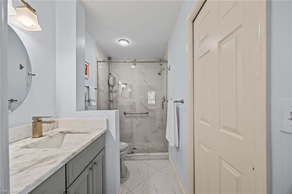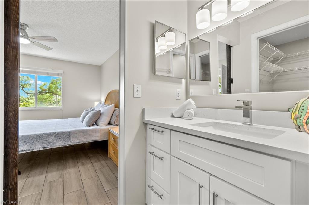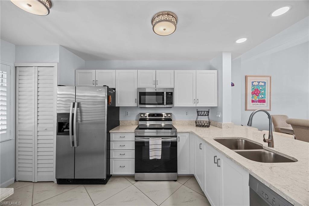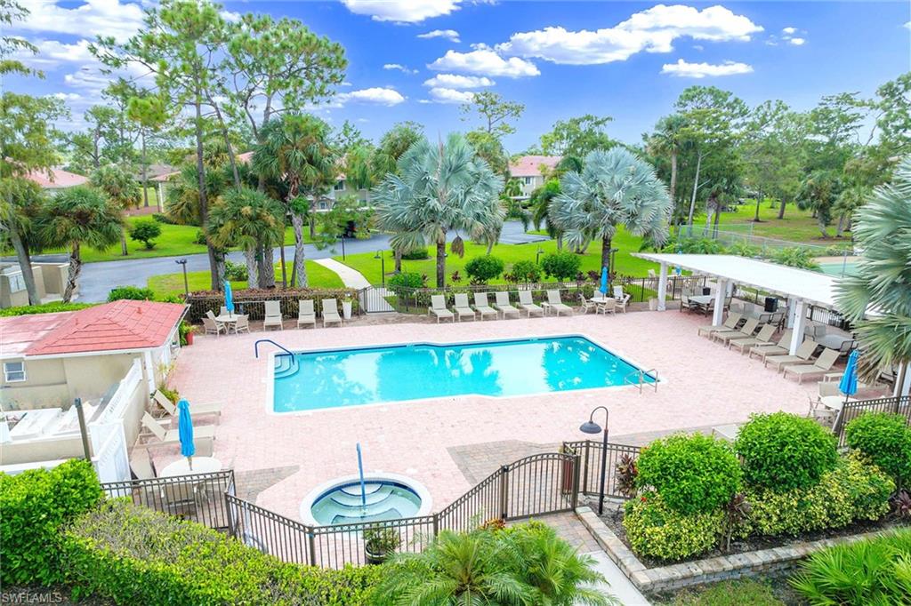 Welcome to Andover Square in Royal Wood Golf & Country Club – A Hidden Gem in the Heart of Naples tucked away in the serene enclave of Andover Square, this beautifully updated condominium offers a blend of elegance and coastal charm. From the moment you go inside, you're greeted by 28-inch diagonal tile flooring throughout and a thoughtfully designed split floor plan that provides comfort, privacy and style. The gourmet kitchen features gorgeous quartz countertops, stainless steel appliances, and opens seamlessly to the spacious living and dining areas. Enjoy the airy ambiance created by vaulted ceilings, designer lighting, and plantation shutters adorning every window. Retreat to the primary suite, a tranquil haven complete with a quartzite custom sink, coastal-inspired tiled shower and a generously sized walk-in closet. Additional highlights include a large laundry room with extra cabinetry and storage. Take in breathtaking views of the 10th hole and sparkling lake with fountain—some of the best vistas in the community—right from your home. Residents enjoy access to Royal Wood’s recently renovated clubhouse, offering formal and casual dining, a modern fitness center and a full suite of resort-style amenities. Within Andover Square itself, you'll find a private pool, barbecue area, bocce ball, pickleball courts and lively social activities that foster a warm community spirit. Ideally just minutes from Marco Island, 5th Avenue South’s fine dining, world-class shopping and Naples famous white sand beaches, this property offers exceptional value in one of Southwest Florida’s sought-after bundled golf communities. Don’t miss this opportunity to live the Naples lifestyle in one of Royal Wood’s desirable locations.