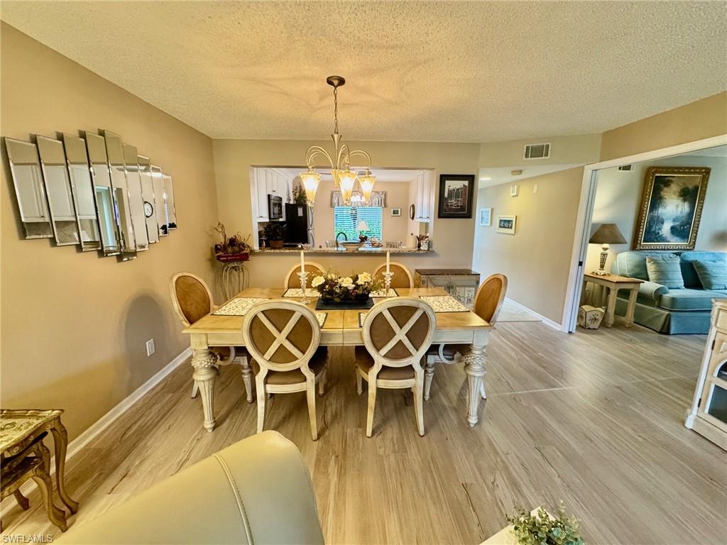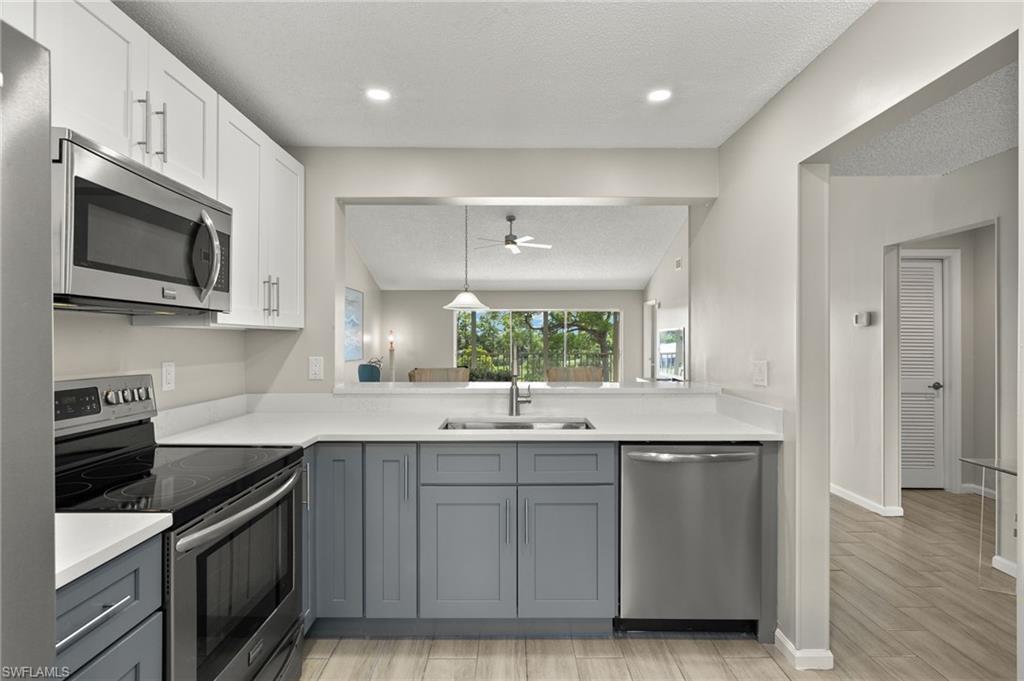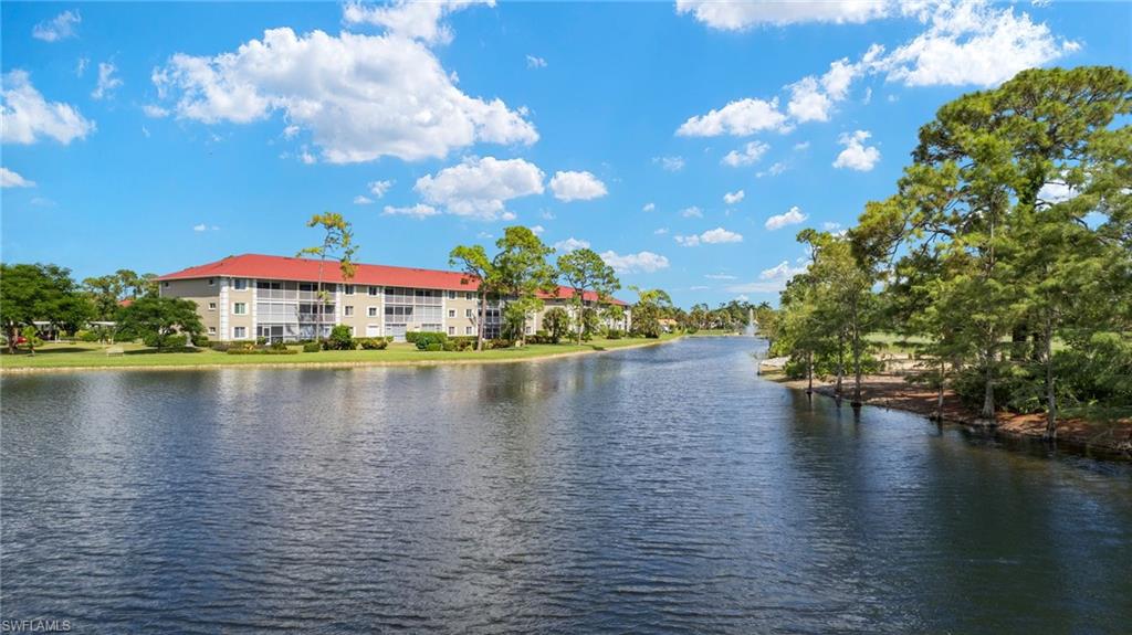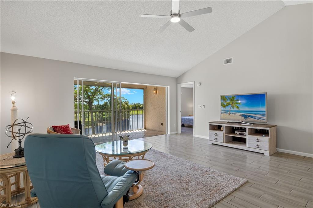 PRICE IMPROVEMENT! STUNNING LAKE & GOLF COURSE VIEWS WITH $45k IN RENOS! This light & bright 2 bedroom, 2 bathroom condo located on the 3rd floor with a common elevator, features 1172 sqft of living space, high ceilings and a plethora of new updates. Improvements include "wood look" tile flooring throughout (NO CARPET), full kitchen renovation with two-tone white & grey shaker cabinetry, quartz countertops, stainless steel appliances, new kitchen lighting, new hot water heater and both bathrooms have been tastefully revamped! The screened in balcony with SOUTHWESTERN exposure overlooking the 10th hole, makes for some incredible views while enjoying the outdoors- protected with hurricane shutters allowing for an extra piece of mind. This unit in Andover Square at Royal Wood INCLUDES GOLF and an array of activities. Amenities include a golf course and putting green, tennis, pickleball courts, a community pool & spa, a fully equipped fitness center, bocce ball, library, restaurant & a golf pro shop! Water, Cable & Internet included. Located just 15 minutes to downtown Naples, 5th Avenue & beaches. 5 minutes to several restaurants, Publix grocery store, Physicians Regional, gas station & much more!