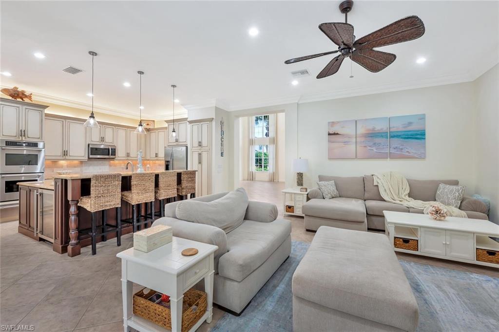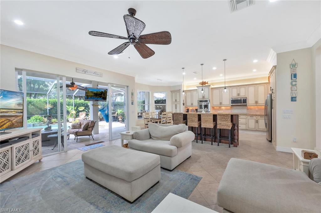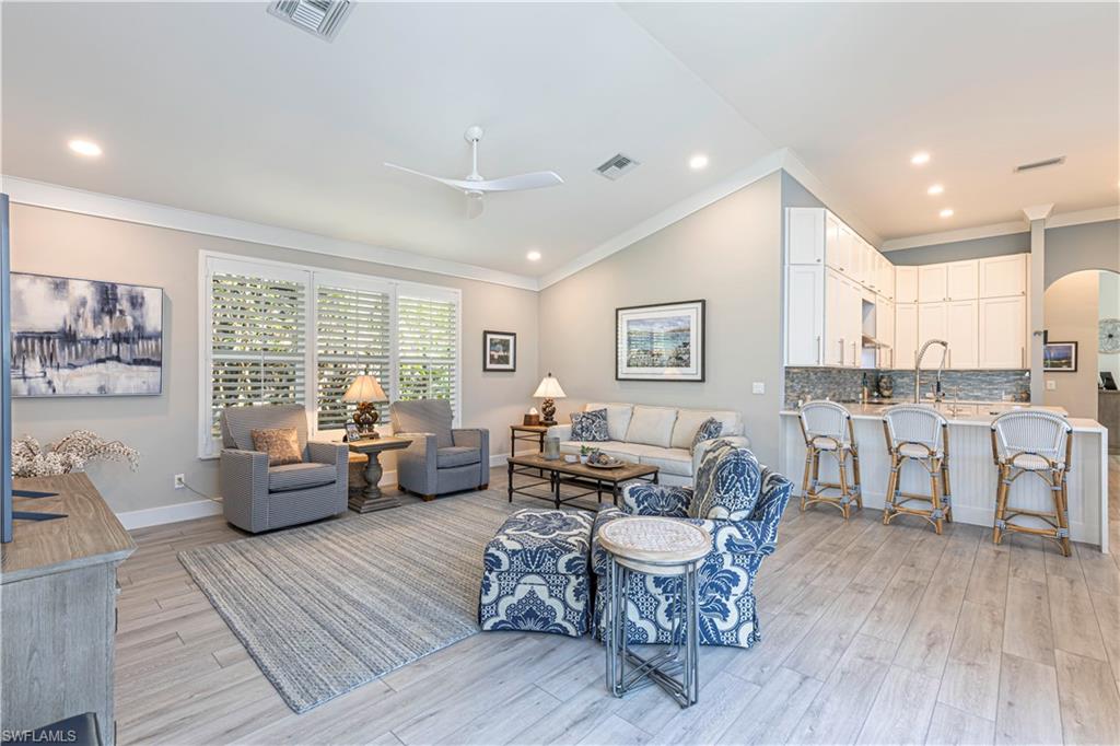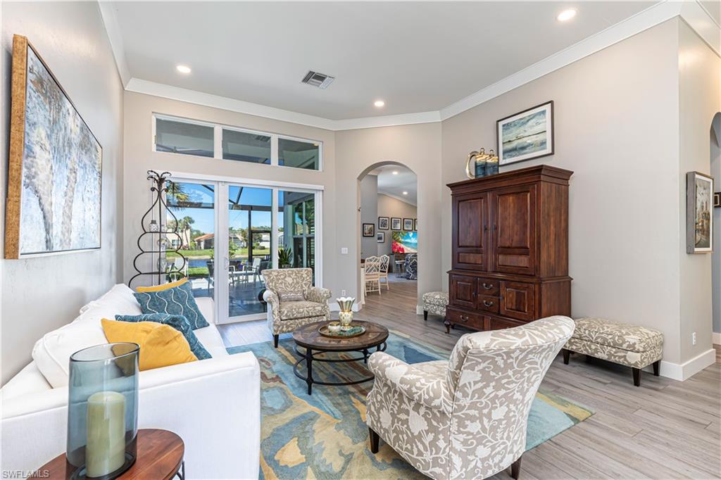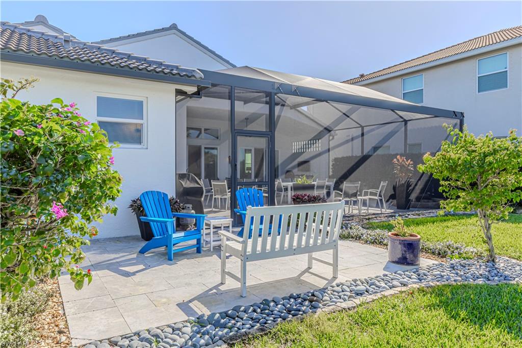 Immaculate Pearl Floor Plan in Saturnia Lakes – Designer Upgrades, Southern Exposure, Move-In Ready! Welcome to this rarely available Pearl model in the highly sought-after, gated community of Saturnia Lakes in Naples, Florida. Meticulously maintained and professionally designed, this 4-bedroom, 2.5-bathroom single-family home offers over 2,678 square feet of elegant living space with premium upgrades throughout including Impact windows. From the moment you arrive, you’ll appreciate the extra-wide paver walkway, curved entry step, and double front doors with impact-resistant glass inserts, perfectly complementing the home's architectural details. ? Interior Features & Designer Finishes 20" diagonal porcelain tile throughout main living areas Upgraded carpet in the spacious primary suite with private sitting area Luxury vinyl or wood-look floors in guest bedrooms Chef-inspired kitchen with deluxe cabinetry, stainless appliances, and oversized pantry Elegant bathrooms with upgraded cabinets and designer fixtures Custom closets, window film, plantation shutters, and motorized blinds Wall finishes and textures curated by a professional interior designer Garage-Tek custom garage storage system included ?? Outdoor Living & Security Resort-style pool with screened lanai Motorized storm shutters around the covered lanai for quick protection Southern rear exposure offers natural light all day Professionally landscaped with tropical curb appeal ?? Community & Location Saturnia Lakes is a gated, amenity-rich community offering a clubhouse, fitness center, resort pool, tennis, and more—all just minutes from dining, shopping, top-rated schools, and Gulf beaches. ?? Don’t Miss This Opportunity This move-in-ready home with luxury upgrades and a high-demand southern exposure lot won’t last long. Perfect for full-time residents or seasonal buyers looking for security, style, and comfort.