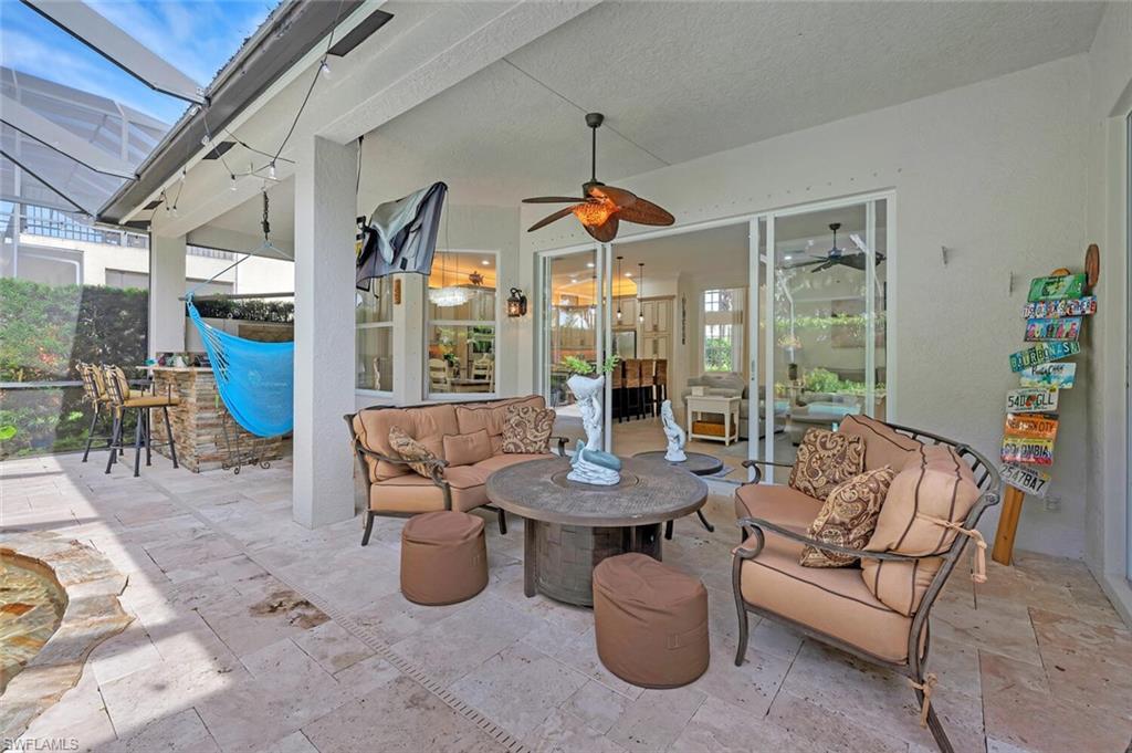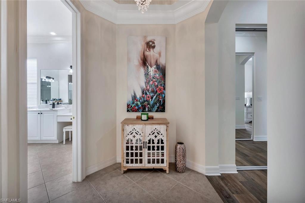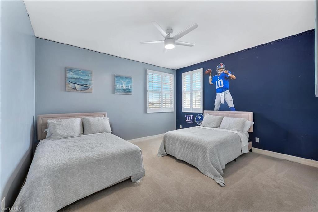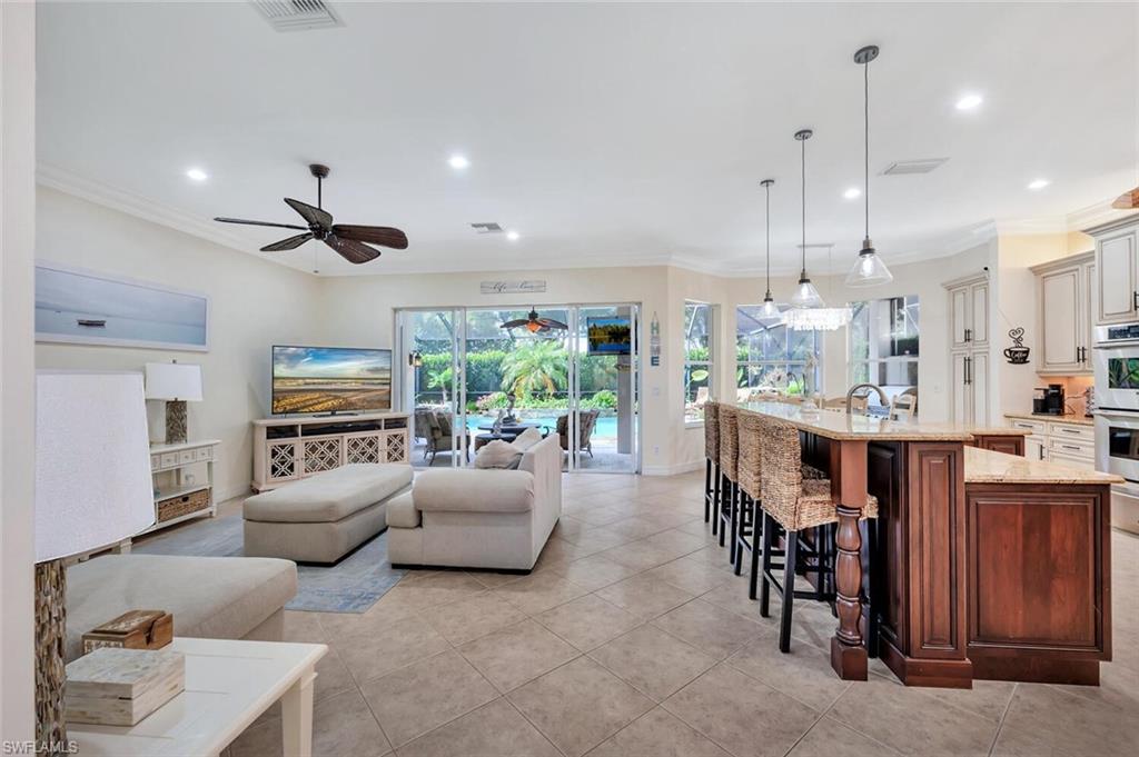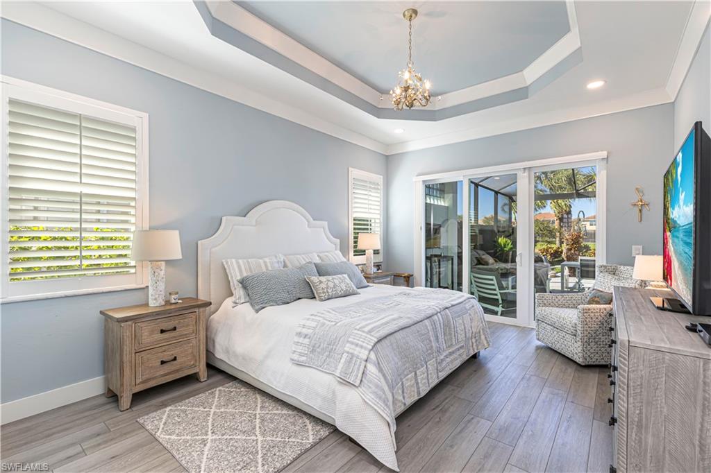 Immaculate Pearl Floor Plan in Saturnia Lakes – Designer Upgrades, Southern Exposure, Move-In Ready! Welcome to this rarely available Pearl model in the highly sought-after, gated community of Saturnia Lakes in Naples, Florida. Meticulously maintained and professionally designed, this 4-bedroom, 2.5-bathroom single-family home offers over 2,678 square feet of elegant living space with premium upgrades throughout including Impact windows. From the moment you arrive, you’ll appreciate the extra-wide paver walkway, curved entry step, and double front doors with impact-resistant glass inserts, perfectly complementing the home's architectural details. ? Interior Features & Designer Finishes 20" diagonal porcelain tile throughout main living areas Upgraded carpet in the spacious primary suite with private sitting area Luxury vinyl or wood-look floors in guest bedrooms Chef-inspired kitchen with deluxe cabinetry, stainless appliances, and oversized pantry Elegant bathrooms with upgraded cabinets and designer fixtures Custom closets, window film, plantation shutters, and motorized blinds Wall finishes and textures curated by a professional interior designer Garage-Tek custom garage storage system included ?? Outdoor Living & Security Resort-style pool with screened lanai Motorized storm shutters around the covered lanai for quick protection Southern rear exposure offers natural light all day Professionally landscaped with tropical curb appeal ?? Community & Location Saturnia Lakes is a gated, amenity-rich community offering a clubhouse, fitness center, resort pool, tennis, and more—all just minutes from dining, shopping, top-rated schools, and Gulf beaches. ?? Don’t Miss This Opportunity This move-in-ready home with luxury upgrades and a high-demand southern exposure lot won’t last long. Perfect for full-time residents or seasonal buyers looking for security, style, and comfort.