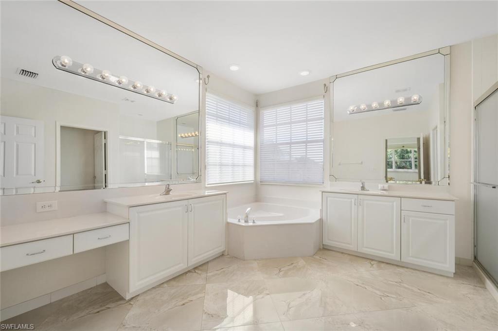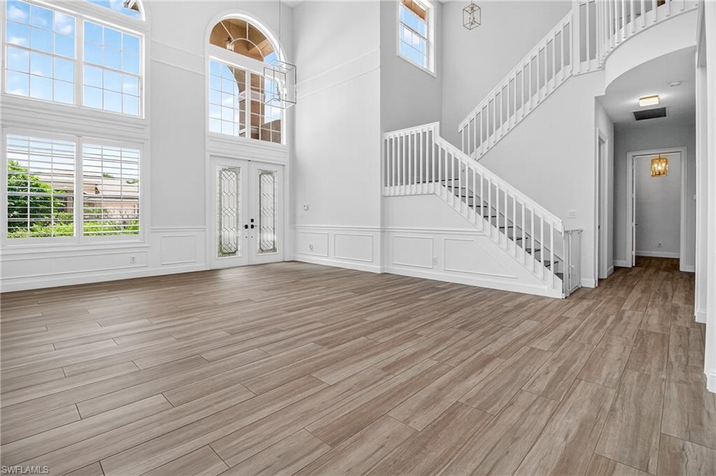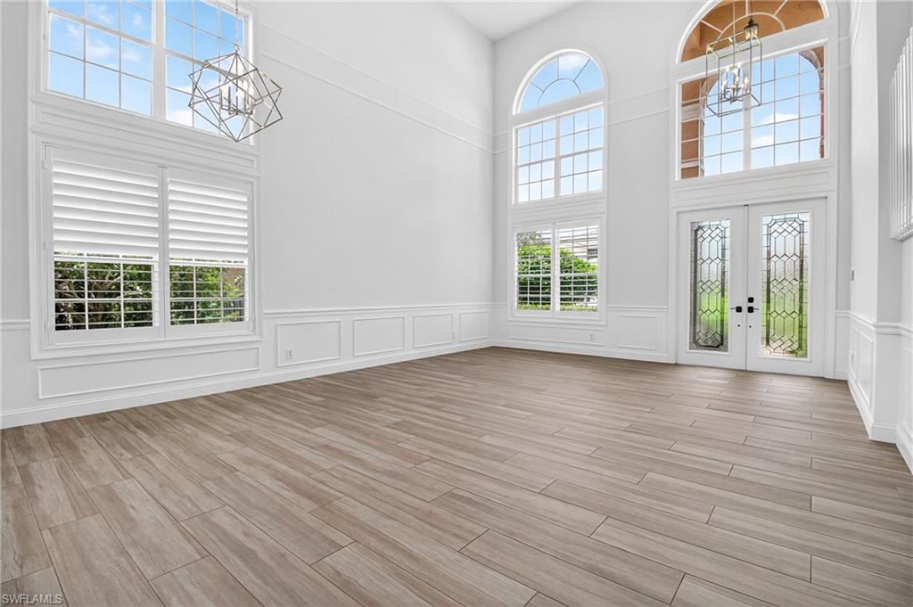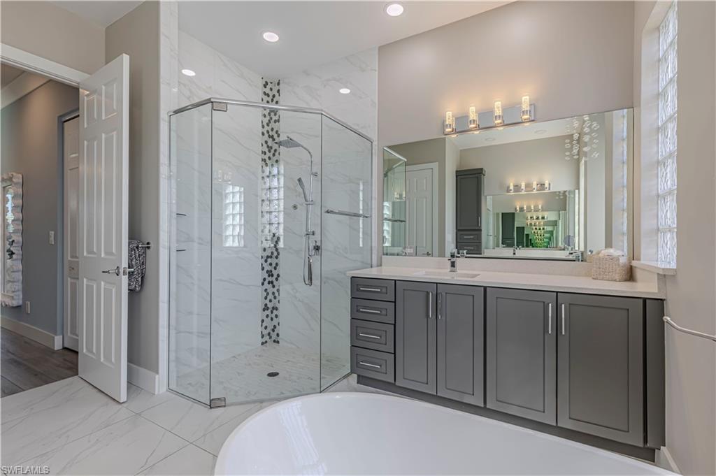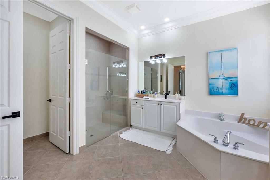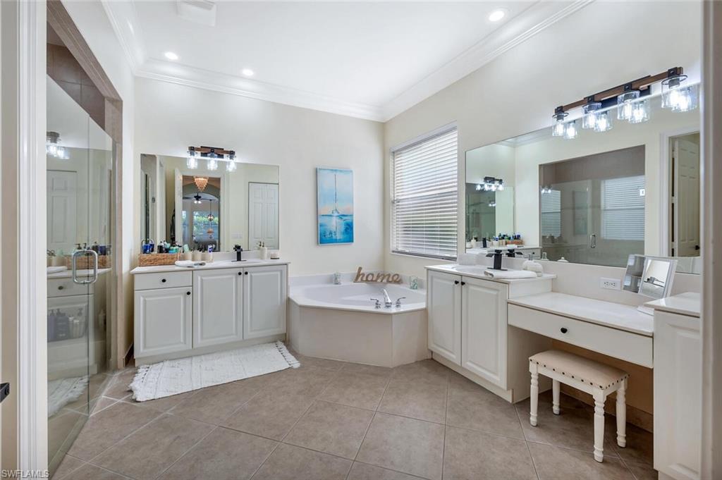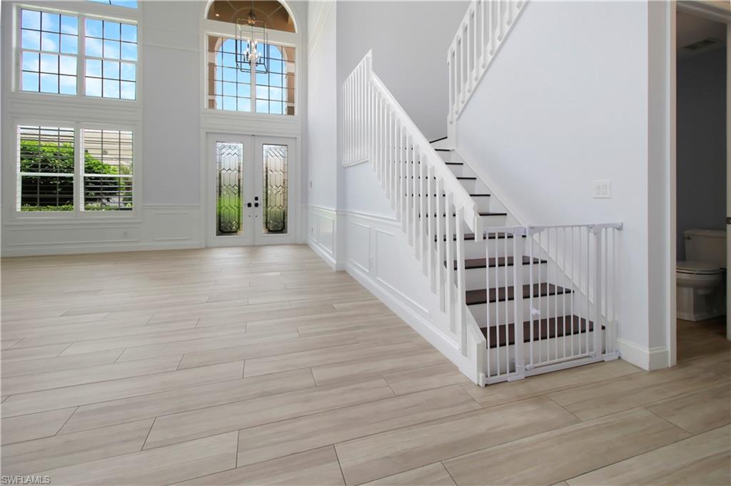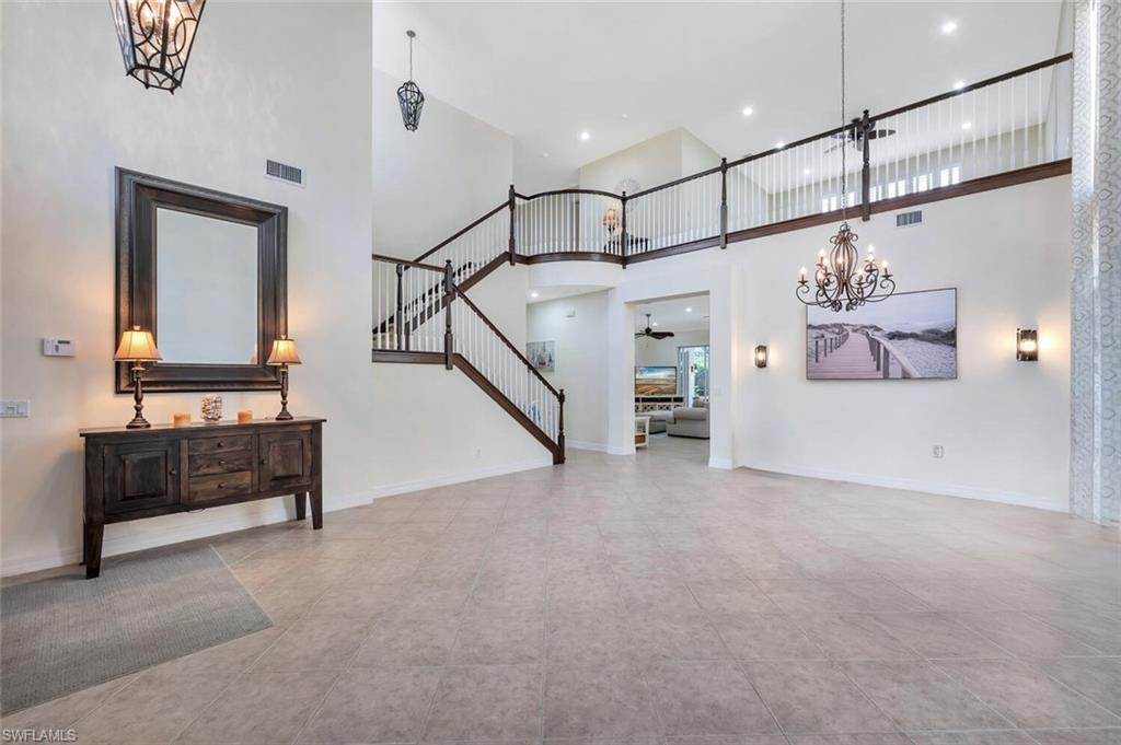 Spacious “Sapphire” floorplan (4 Bedrooms + Loft / 3.5 Baths / 3-Car Garage / 3,773 sq. ft.) is perfectly situated in the highly sought-after, amenity-rich community of Saturnia Lakes. From the moment you enter, you’ll be greeted by soaring 22-foot ceilings, luxury Brand New Epoxy floors throughout ground level and an open, light-filled layout with generously sized rooms throughout. The first-floor primary suite is a true retreat featuring two large walk-in closets, a cozy sitting area, French doors leading to the lanai, and a luxurious bath with dual vanities, a soaking tub, and a brand-new frameless glass shower. Master suite also includes dedicated AC/Heat unit. Upstairs, enjoy a spacious loft/bonus area, three oversized guest bedrooms, and two full bathrooms — perfect for family or guests. Brand new White luxury LVP floors throughout 2 nd floor and stairs. Step outside to your private solar-heated pool and soak up the Florida sunshine! The pool is powered by Brand New pump system. Additional upgrades include ; Grand chandelier at the entrance and new light fixtures throughout the first floor, Tinted windows in t California type build in linen, bedroom closets and pantry, a whole-house generator with 2 above ground 120LB (each) propane gas tanks, new roof (2021), roll-down shutters on all windows and doors (automated 1st floor shutters), newer A/C systems with new ductwork, and an electric car charger. Saturnia Lakes offers resort-style living with a multi-million-dollar clubhouse featuring a heated resort and lap pool, kiddie pool, hot tub, fitness center, dance studio, internet café, saunas, massage rooms, billiards, ballroom, 4 clay tennis courts, basketball court, putting green, playground, and miles of scenic walking paths and Nature Preserve Park. Located in an A-rated school district and close to shopping, dining, and Naples’ white sand beaches