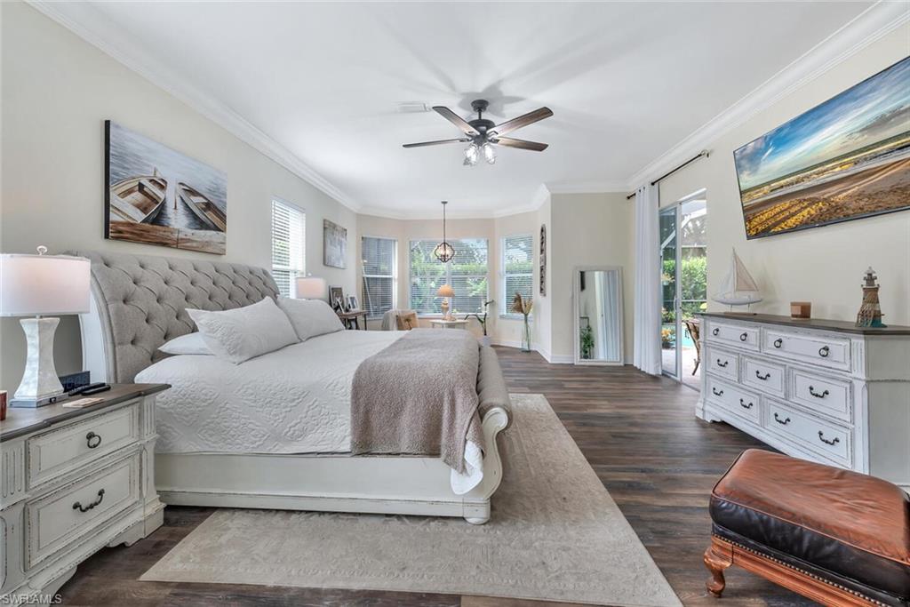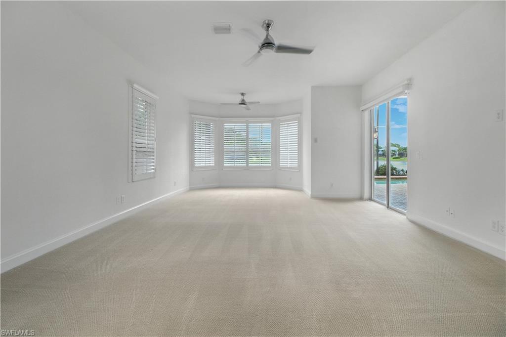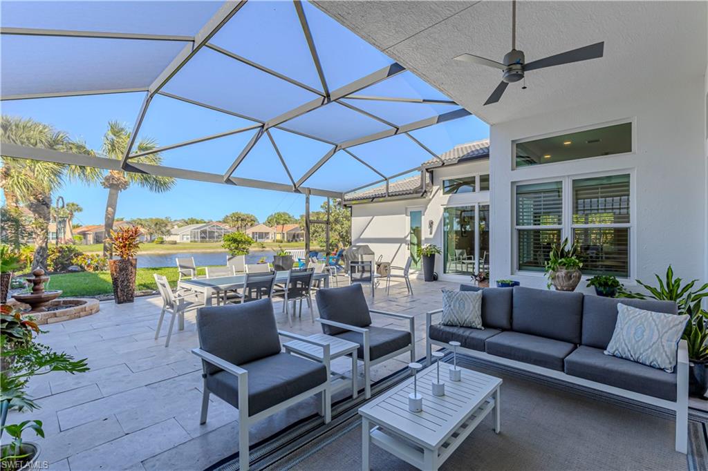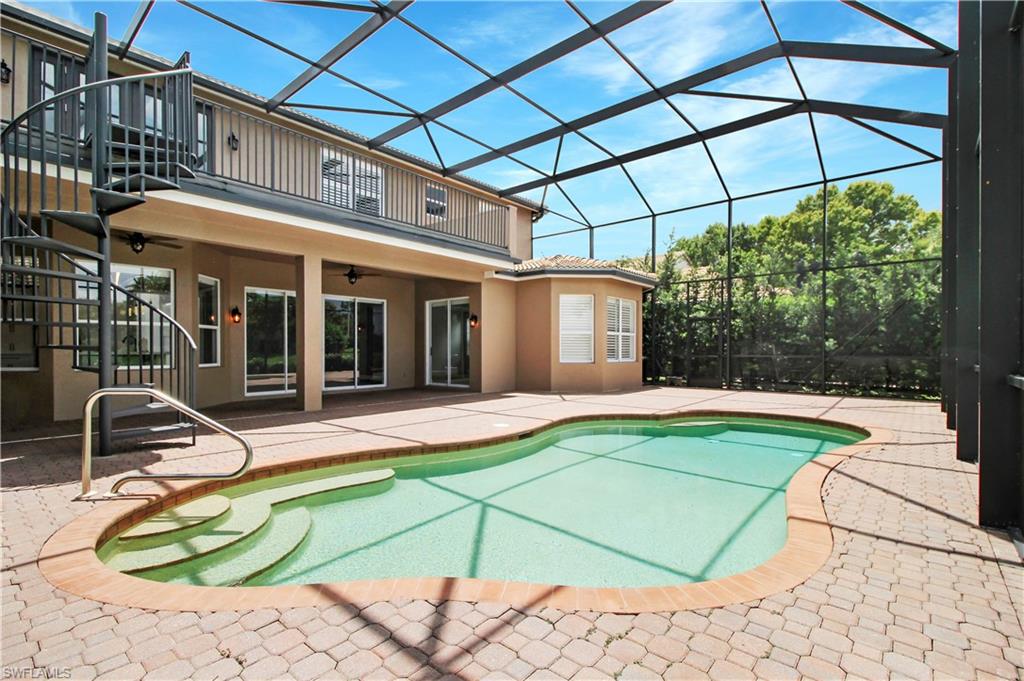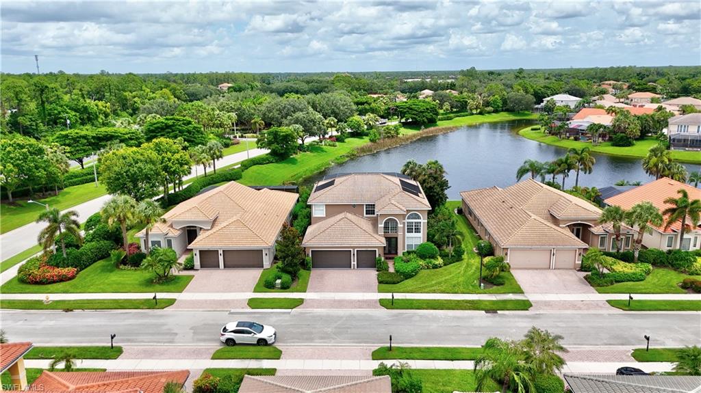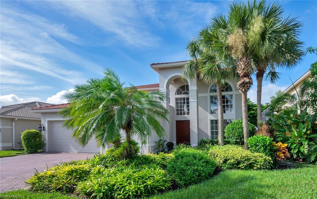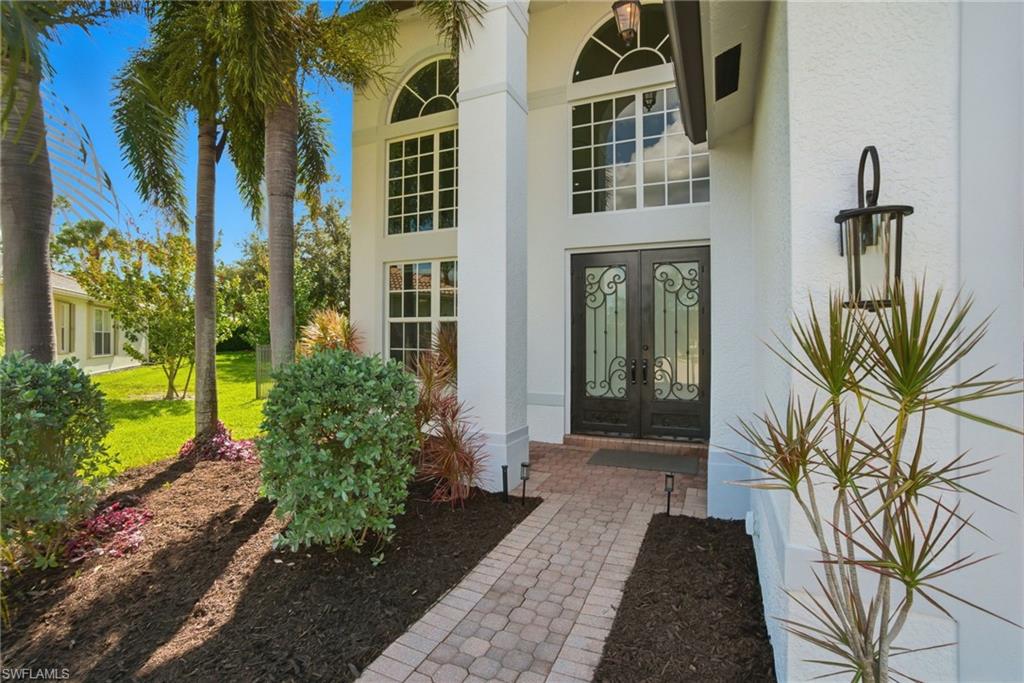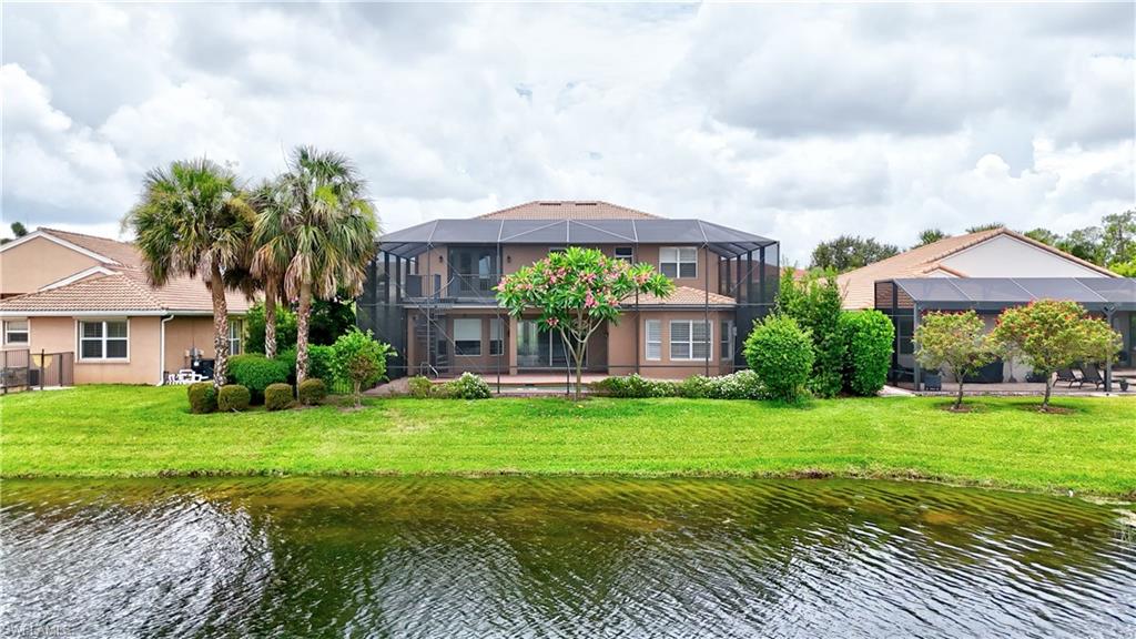 The view you’ve been dreaming of! This rare “Pink Diamond” model—one of the largest homes in Saturnia Lakes—sits on a premier cul-de-sac lot with 160 feet of lake frontage and breathtaking water views from three sides. Step through the leaded glass doors and immediately take in the wow-factor: an open, elegant layout that leads straight to those endless lake views. With 4,083 sq. ft., this home offers 5 bedrooms, 4 full baths, and 5 large walk-in closets, giving everyone space to relax. The expansive kitchen features wood cabinets, granite countertops, a center island, walk-in pantry, and a new 80-bottle wine fridge. The great room is perfect for movie nights, while the formal dining room easily seats ten. Outside, your private oasis awaits—picture-window lanai, lush palms, and a sparkling pool (with new heater) overlooking the lake, fountain, and bridge. Upstairs, the spacious primary suite includes an attached den/exercise room and French doors to a huge private veranda—the ideal spot for sunrise, sunset, and watching wildlife. Additional features include plantation shutters, crown molding, tray ceilings, updated fixtures, and a 3-car garage. Saturnia Lakes offers resort-style living with 3 pools, fitness center, yoga/dance studio, billiards, tennis, playground, and a vibrant clubhouse—plus top-rated schools and a short drive to Naples white sand beaches, world-class dining, and great shopping. A truly stunning home—don’t miss your chance to make it yours!