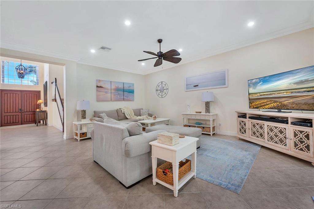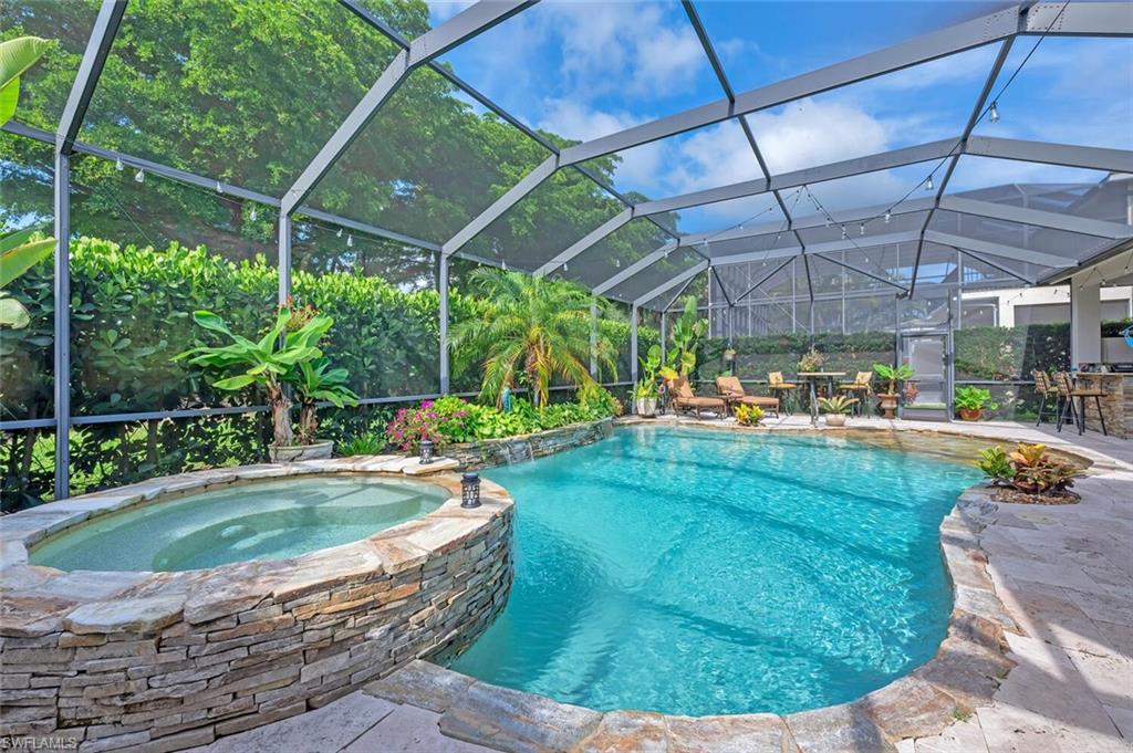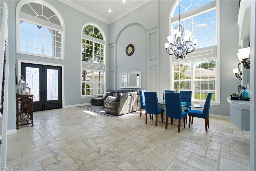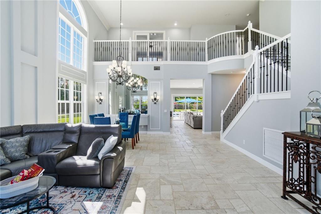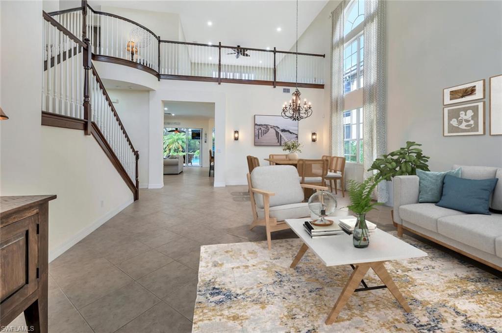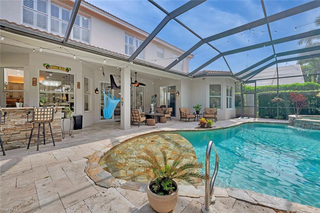 INCREDIBLE NEW PRICE IMPROVEMENT ::: you will be hard pressed to find a better OPPORTUNITY for a resort style, family home in NORTH NAPLES! Motivated Seller. A RARE chance to purchase a large, meticulously updated & well maintained N. Naples home w/nearly 3000 ft.² of interior air conditioned living space, 4 bedrooms + upstairs den/loft, 3 car garage and a 2 story caged “Miami Chic” pool/spa area w/almost 1,000 sq.ft. All in an exclusive N. naples gated community! Sought after Flamingo model. Can you hear the birds? The buttonwood tree lined street and protected tropical PRESERVE backyard delivers quiet, private solitude w/close proximity to the main gate AND steps to the sports center & resort amenities. Extensive designer improvements & favorable features include a RARE 1st AND 2nd floor concrete construction. The expansive rear entertainers dream is enveloped in a STUNNING 30’ high pool cage w/elegant shell stone white pavers and NEW Modern pool tile. NEW Impact windows & doors, NEW impact garage doors and motors (‘25), NEW roof & gutters (‘24), fresh exterior paint (‘25) provide value & peace of mind. HVAC systems replaced in ‘22 & ‘23. Additional luxury features include a smart water filtration & softener system (‘24), smart water softener, reverse osmosis system, central vacuum, instant hot water heater (‘23), NEW upstairs carpeting (‘25), & NEW washer/dryer. Designer remodeling finishes are throughout: NEW light toned LVP, CUSTOM pantry closet system & NEW designer bath remodels highlighted by the reimagined spa primary (‘25) w/freestanding soaking tub. Other custom details: NEW shiplap, coastal wallpaper, NEW baseboards, & interior trim (‘25), along w/a cozy custom electric fireplace adding warmth & character. *** SATURNIA LAKES is hidden behind cascading waterfalls & sparkling fountains on 6 acres. Have the “vacation” feel all year long w/extensive amenities: 12,000 square-foot clubhouse, resort style Olympic, lap & kiddie pool, hot tub, sandy beach, saunas, massage & card rooms, ballroom, billiards room, dance studio, Internet café & arts/crafts room. For WELLNESS enthusiasts: state of the art fitness center, Clay & Har-Tru tennis courts, playground, basketball court, lakeside putting green,& miles of walking/jogging paths. Walk to Gulf Coast HS thru ‘Passive Park.” Included in the $616 monthly HOA fee: high speed fiber optic Internet, HD/DVR cable service w/2 boxes, monitored alarm security, gate guard w/private side gate on Logan Blvd for residence only, irrigation, lawn, landscape, trimming & pest. Just minutes to highway 75, shopping & restaurants galore @ the NEW Founders Square & Logan Landing. A short 15 min to the Gulf of Mexico & 20 min to the airport. We challenge you to find a home with the square footage, in this condition, with these amenities and upgrades – for this price – in a gated A+ rated school district. We invite you to see in person what a REAL OPPORTUNITY this is for your family’s next DREAM COME TRUE!