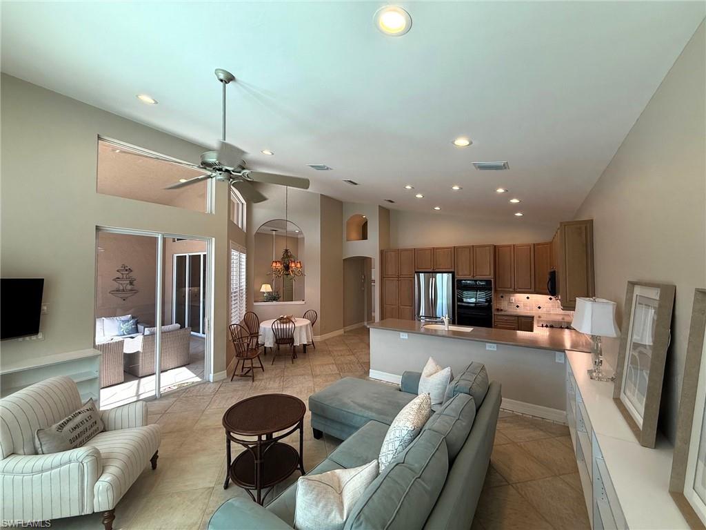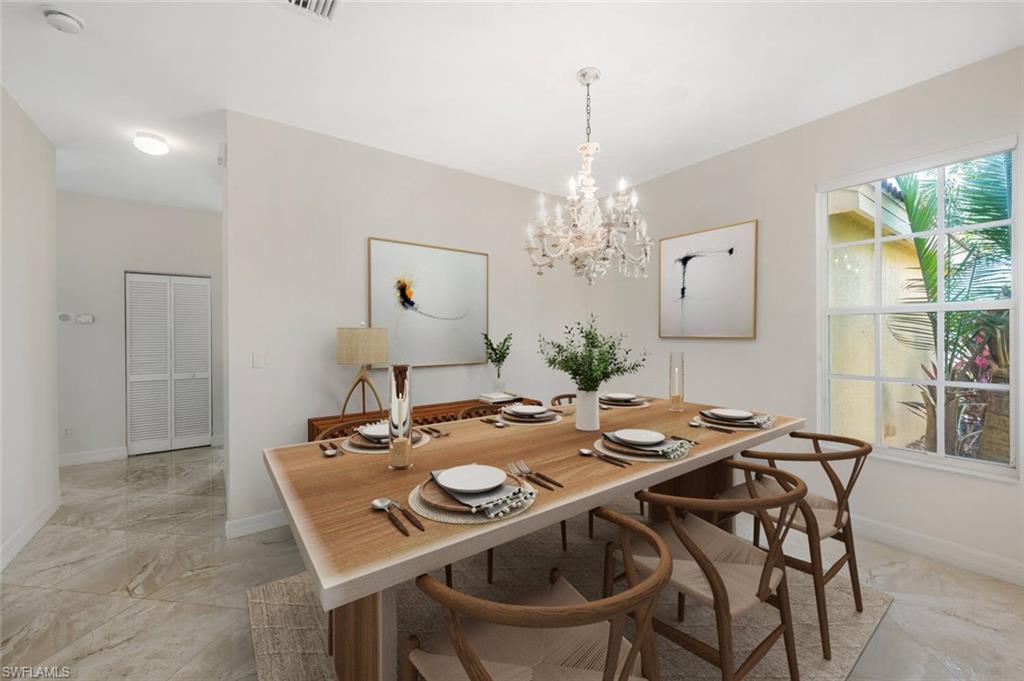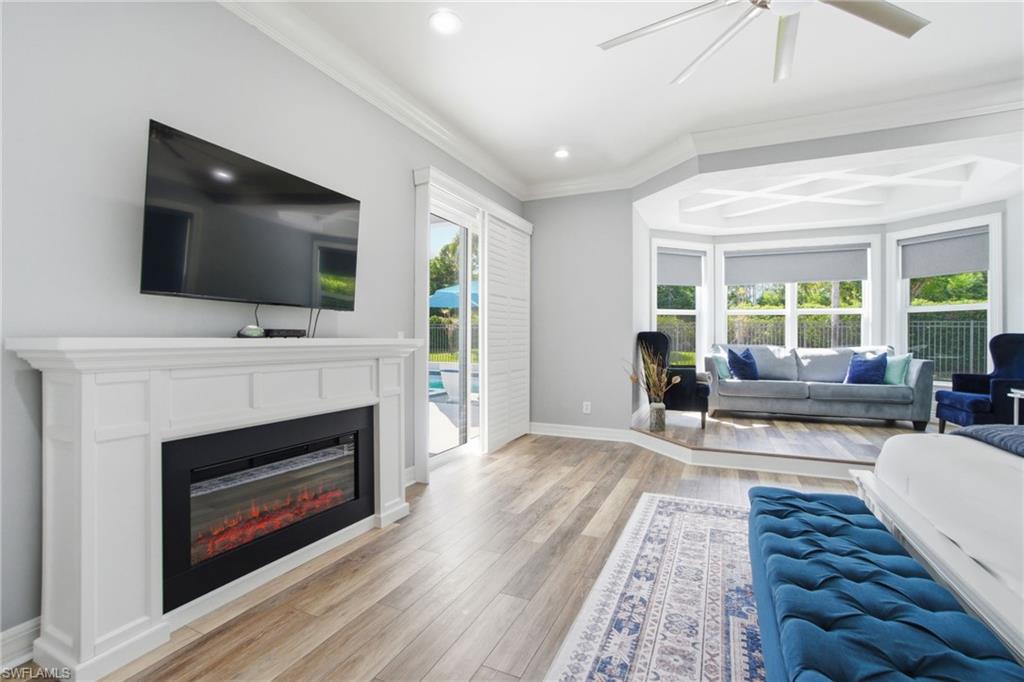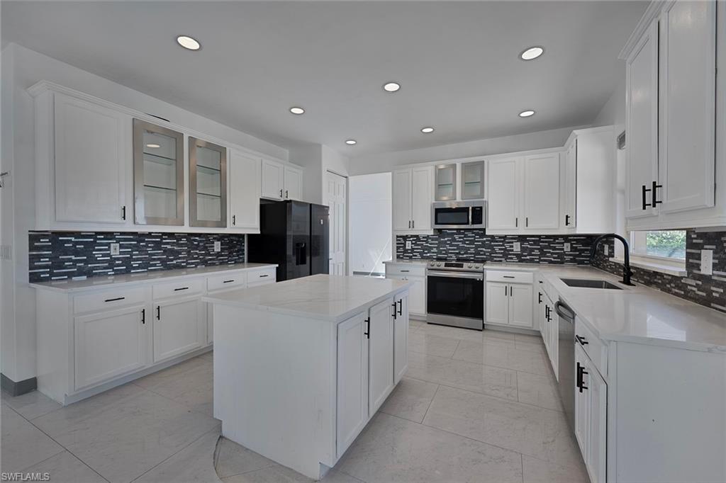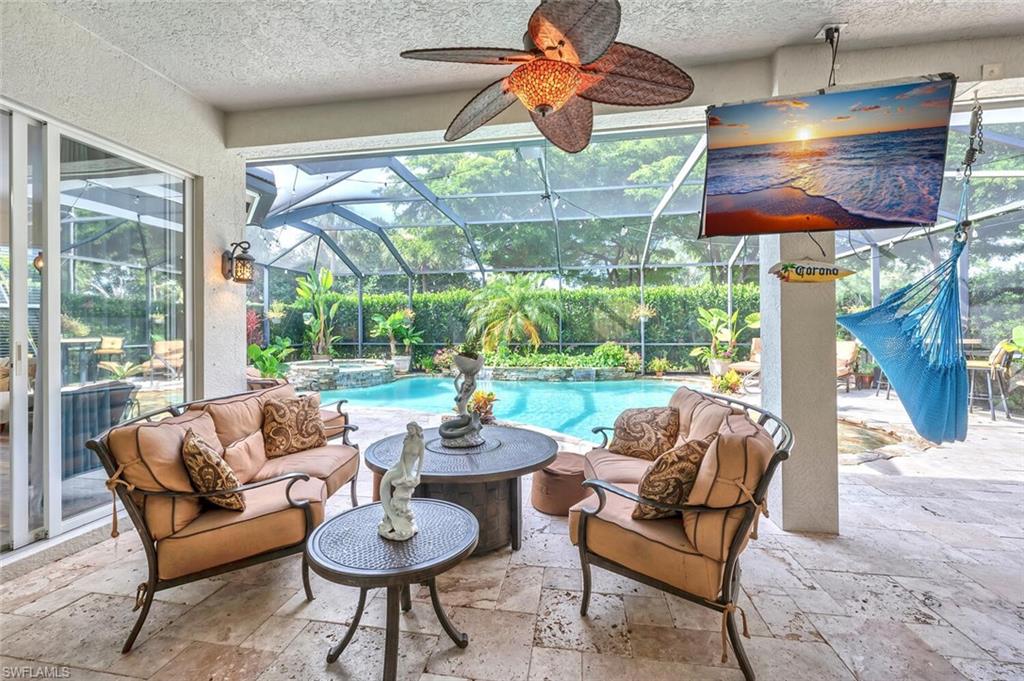 INCREDIBLE NEW PRICE IMPROVEMENT ::: you will be hard pressed to find a better OPPORTUNITY for a resort style, family home in NORTH NAPLES! Motivated Seller. A RARE chance to purchase a large, meticulously updated & well maintained N. Naples home w/nearly 3000 ft.² of interior air conditioned living space, 4 bedrooms + upstairs den/loft, 3 car garage and a 2 story caged “Miami Chic” pool/spa area w/almost 1,000 sq.ft. All in an exclusive N. naples gated community! Sought after Flamingo model. Can you hear the birds? The buttonwood tree lined street and protected tropical PRESERVE backyard delivers quiet, private solitude w/close proximity to the main gate AND steps to the sports center & resort amenities. Extensive designer improvements & favorable features include a RARE 1st AND 2nd floor concrete construction. The expansive rear entertainers dream is enveloped in a STUNNING 30’ high pool cage w/elegant shell stone white pavers and NEW Modern pool tile. NEW Impact windows & doors, NEW impact garage doors and motors (‘25), NEW roof & gutters (‘24), fresh exterior paint (‘25) provide value & peace of mind. HVAC systems replaced in ‘22 & ‘23. Additional luxury features include a smart water filtration & softener system (‘24), smart water softener, reverse osmosis system, central vacuum, instant hot water heater (‘23), NEW upstairs carpeting (‘25), & NEW washer/dryer. Designer remodeling finishes are throughout: NEW light toned LVP, CUSTOM pantry closet system & NEW designer bath remodels highlighted by the reimagined spa primary (‘25) w/freestanding soaking tub. Other custom details: NEW shiplap, coastal wallpaper, NEW baseboards, & interior trim (‘25), along w/a cozy custom electric fireplace adding warmth & character. *** SATURNIA LAKES is hidden behind cascading waterfalls & sparkling fountains on 6 acres. Have the “vacation” feel all year long w/extensive amenities: 12,000 square-foot clubhouse, resort style Olympic, lap & kiddie pool, hot tub, sandy beach, saunas, massage & card rooms, ballroom, billiards room, dance studio, Internet café & arts/crafts room. For WELLNESS enthusiasts: state of the art fitness center, Clay & Har-Tru tennis courts, playground, basketball court, lakeside putting green,& miles of walking/jogging paths. Walk to Gulf Coast HS thru ‘Passive Park.” Included in the $616 monthly HOA fee: high speed fiber optic Internet, HD/DVR cable service w/2 boxes, monitored alarm security, gate guard w/private side gate on Logan Blvd for residence only, irrigation, lawn, landscape, trimming & pest. Just minutes to highway 75, shopping & restaurants galore @ the NEW Founders Square & Logan Landing. A short 15 min to the Gulf of Mexico & 20 min to the airport. We challenge you to find a home with the square footage, in this condition, with these amenities and upgrades – for this price – in a gated A+ rated school district. We invite you to see in person what a REAL OPPORTUNITY this is for your family’s next DREAM COME TRUE!
