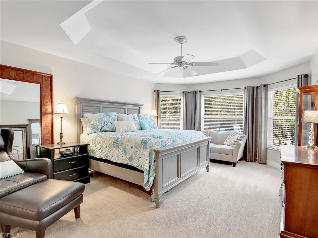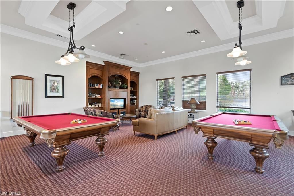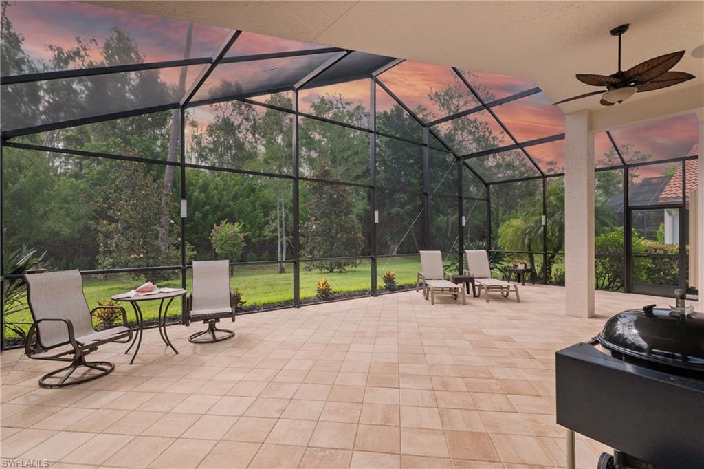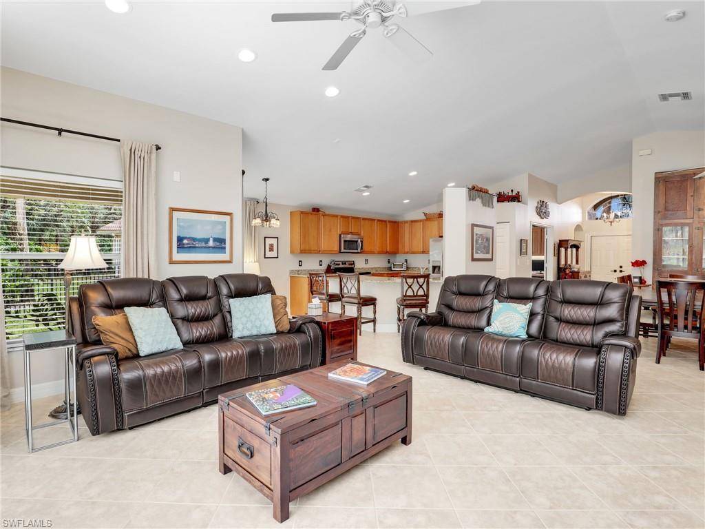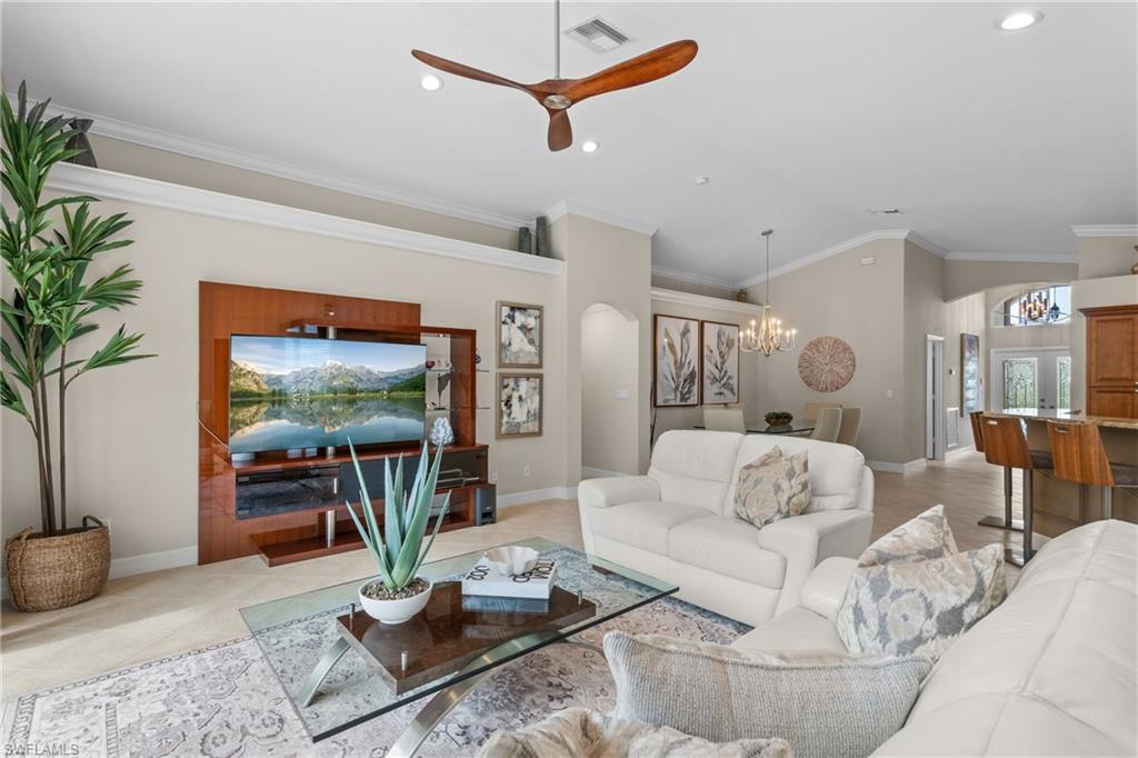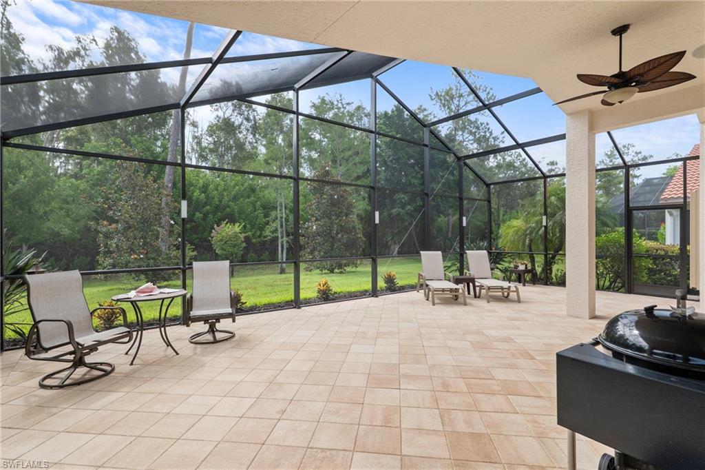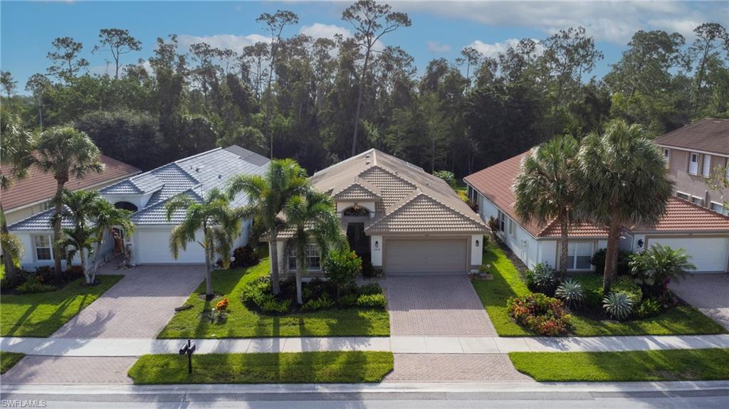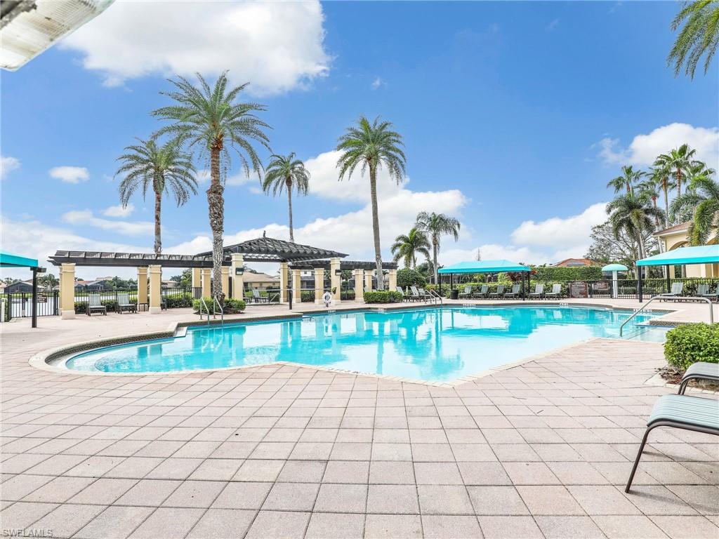 Enjoy sunsets from your backyard oasis on an oversized cul-de-sac lot. The well-maintained home is in a desirable gated community in North Naples. This popular model is 1601 sq ft with 3 bedrooms with 2 full baths. The large lot has a beautiful pool and fenced yard for the pets. The living room and dining room is bright & light which is perfect for entertaining. The home has vaulted and volume ceilings. The master bedroom is large with lots of natural light and two walk-in closets. The other two bedrooms are across the home which is great for out-of-town guests. This is a must see home! Saturnia Lakes is an award-winning community only 15 minutes from beaches that offers resort style living. It offers: 2 heated pools, hot tub, updated fitness room, dance studio, internet cafe, saunas, billiards room, ballroom, clay tennis courts, playground, basketball court, and putting green. A rated schools and minutes from shopping and restaurants makes this is a must-see home. FREE 12-MONTH HOME WARRANTY INCLUDED! Included in the $616 monthly HOA fee: High Speed Fiber Optic Internet, HD/DVR cable service with 2 boxes, monitored alarm security, home phone, lawn service, landscape trimming and outside pest control.