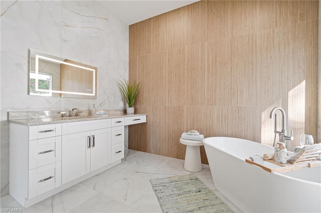 Welcome to 5215 Seashell Avenue in the highly coveted waterfront enclave of Seagate. Tucked away at the end of a quiet cul-de-sac surrounded by high-end homes is this 4 Bedroom/3 Bathroom waterfront home with 110 feet of canal frontage. This exceptional home was thoughtfully redesigned by renowned local architect, MHK Architects, and was completely renovated inside and out in 2023. This home boasts a light and airy mid-century contemporary flair inspired by California ranch-style architecture. Enter into an open-concept living space with spacious living room replete with vaulted ceilings, wide plank light oak hardwood floors and dramatic contemporary accent wall. Wall of glass opens to the rear outdoor space seamlessly blending indoor/outdoor living. A true chef's eat-in kitchen features sleek European-style flat panel cabinetry, oversized island with waterfall edges, stainless steel appliances, bar area plus lovely dining room ideal for entertaining. Master suite oasis with spacious bedroom with contemporary accent wall, walk-in closet with custom built-ins and a spa-like en-suite bath with custom double vanity, step-in shower, freestanding soaking tub and separate water closet. Split floor plan with 2 additional guest bedrooms with full baths plus a 4th bedroom currently set up as an office/media room. Convenient laundry room with great storage. 2-car attached garage with epoxy floor. Outdoor resort-style private oasis with covered living and dining area, TV, gorgeous pool and spa plus a canal front patio with firepit. A boater's dream with direct water access and a floating dock. Optional Seagate Beach Club membership offers private beachfront access. Truly exceptional and a great value for this highly desirable neighborhood. Easy access to schools, Waterside Shops, downtown Naples, I-75 as well as Naples and Fort Myers airports.