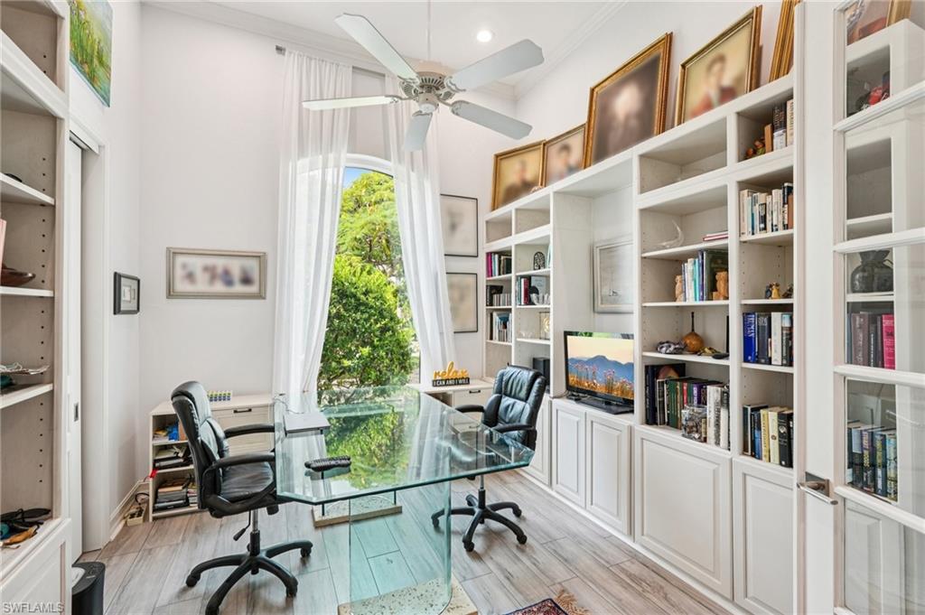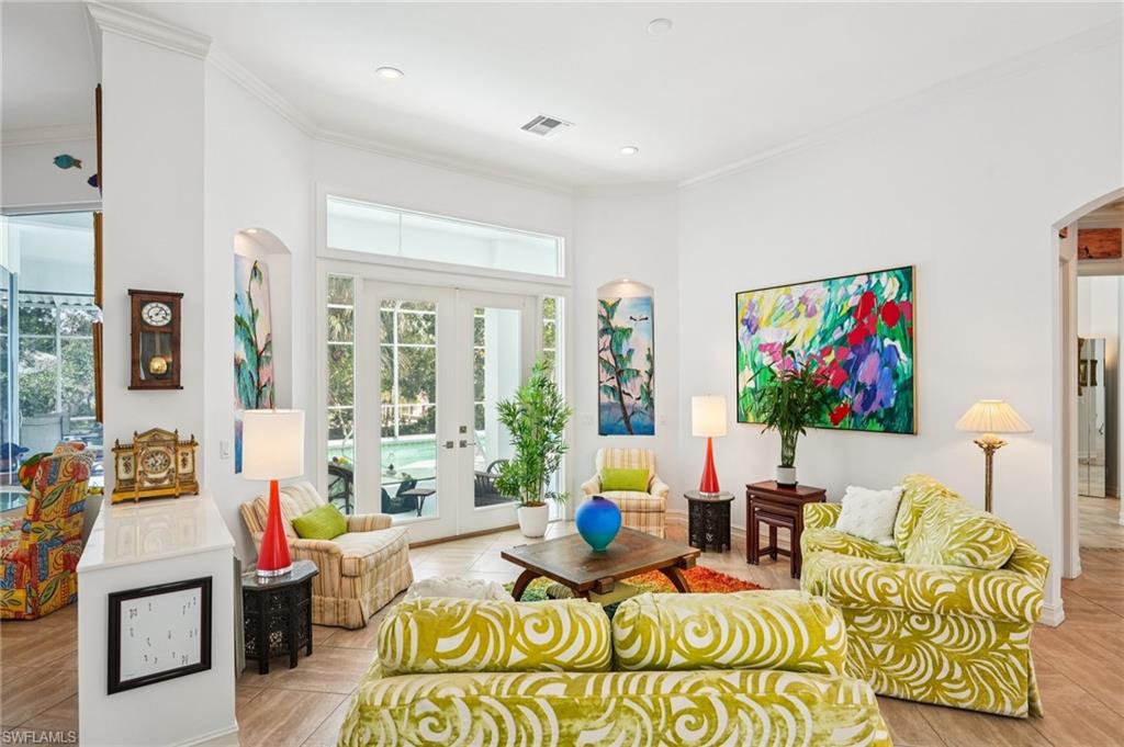 Waterfront Seagate home with tranquil mangrove views and a private dock on a navigable canal (indirect Gulf access; bridge/tidal—well-suited to kayaks, paddleboards, and smaller craft). Everyday living extends outdoors to a deep covered lanai and a screened, heated pool with a water feature and dedicated planting bed. A private, carriage-style studio suite sits above the three-car garage—currently configured as an art studio—with a kitchenette and full bath; its separation from the main house makes it ideal for visiting guests, creative work, or quiet retreat. Inside the main residence, four en-suite bedrooms include a first-floor primary retreat opening by French doors to the lanai, plus a nearby guest en-suite. A light-filled den with built-ins, a formal living room, and a separate family room support both entertaining and downtime, while the island kitchen and a breakfast nook overlook the pool. Peace-of-mind features include impact-rated windows and electric roll-down shutters; practical updates include newer A/C, water heater, and pool pump, fresh exterior paint, and a 2025 roof. The attached three-car garage adds a storage room and interior stairs to the studio. Seagate is a small West-of-41 waterfront pocket in central Naples with no mandatory HOA and easy beach access. Residents may apply for the optional Seagate Beach Club membership, which offers on-site beach parking and pavilion facilities (buyer to verify availability and terms). Minutes to Waterside Shops, Artis–Naples, and Clam Pass, with low-traffic streets and sidewalks that make biking simple. A coveted coast-close location delivering privacy and everyday convenience.