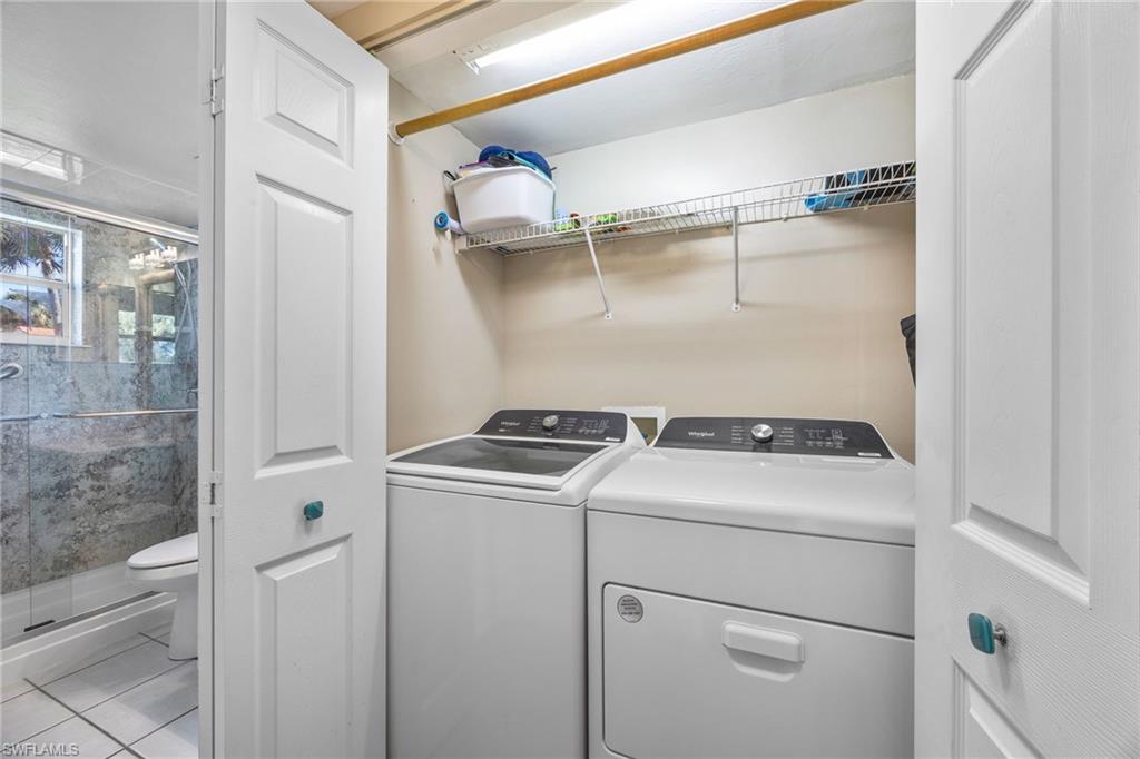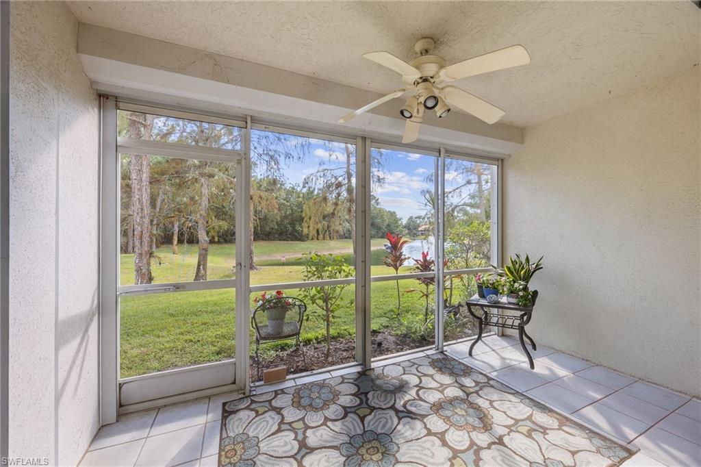 Welcome home to this first-floor end unit condo in the sought-after community of Sherwood, Naples. From the moment you walk in, you’re greeted by an expansive long lake view—one of the most beautiful in the neighborhood. Whether you’re enjoying your morning coffee while bird watching or winding down on your screened lanai as the sun sets over the water, this home was designed to bring the outdoors in. The interior is bright and open, with extra windows only an end unit can offer. The two-bedroom plus den floor plan provides flexibility, with French glass doors making the den perfect for a home office, guest space, or third bedroom. The updated kitchen is a central gathering place, featuring wood cabinetry with crown trim, granite countertops, stainless steel appliances, and a tumbled stone backsplash. It opens to the living and dining areas, creating a seamless flow for entertaining. Tile floors run throughout the home, with no carpet, and updated details give the condo a refreshed, move-in-ready feel. Both bathrooms have been beautifully renovated with granite counters and modern finishes. The primary suite offers a walk-in closet, plantation shutters, dual sinks, and a frameless glass shower. A custom laundry area with extra storage, along with a one-car garage and attic space, provide everyday convenience. Set on a quiet street, Sherwood offers resort-style amenities including two community pools, a fitness center, tennis, and pickleball. The location is just as appealing, with quick access to I-75, downtown Naples, world-class dining and shopping, pristine Gulf beaches, and attractions like the Paradise Coast Sports Complex and Great Wolf Lodge. This condo is being sold unfurnished and meticulously maintained, offering a rare opportunity to enjoy a move-in-ready home with one of the best views in the community.