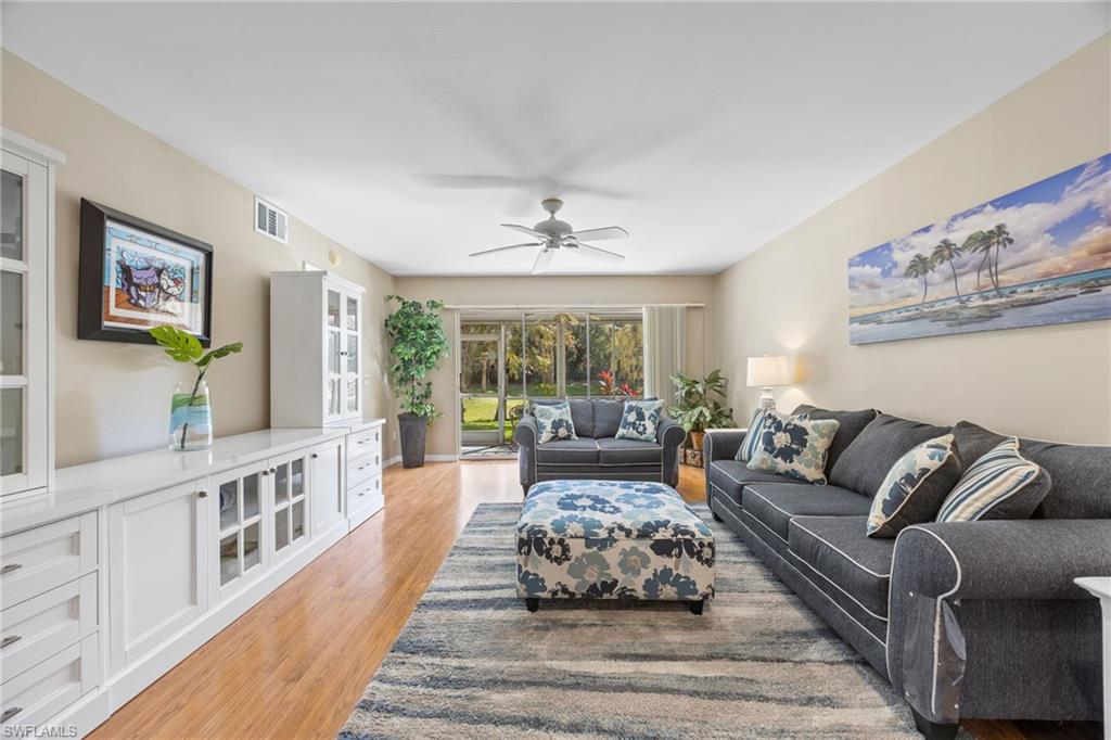 Light, Bright & Beautiful—Your Naples Oasis Awaits in Sherwood! Discover sunshine, serenity, and scenic lake views in this inviting first-floor condo (no steps) located in the highly desirable Sherwood community of East Naples. Offering partially furnished 3 bedrooms and 2 bathrooms (one of the bedroom has double doors and could make the perfect den), this residence is perfectly positioned in a non-flood zone with sunny southern rear exposure. Step inside and feel instantly at home. The open-concept living area features breezy coastal décor and flows seamlessly to a screened lanai where peaceful lake and preserve views set the tone for tranquil mornings and picture-perfect sunsets. Whether you’re sipping coffee, birdwatching, or winding down at the end of the day, this backdrop is nothing short of exceptional. The spacious kitchen blends style and functionality with updated cabinetry, stainless steel appliances, a kitchen bar with plenty of seating, and a cozy breakfast nook—ideal for relaxed meals or entertaining friends. The primary suite offers comfort and privacy with an ensuite bath with a walk-in closet and tiled shower. Two guest bedrooms share a full bath, giving everyone their own comfortable retreat. Additional perks include in-residence laundry, a dedicated one-car garage, an assigned parking space, roll-down hurricane shutter on the lanai and upcoming new hurricane-impact windows scheduled for installation this spring, ensuring peace of mind for years to come. Recent upgrades include a new HVAC system (2023), a newer roof (2019) and new washer/dryer (2024). This home has been meticulously maintained, offering a move-in-ready opportunity to enjoy one of Sherwood’s best views. Sherwood is beloved for its lush landscaping, expansive lakes, and warm, welcoming atmosphere. Residents enjoy an active resort-style amenities including two sparkling community pools, a clubhouse, fitness center, tennis and pickleball courts, and scenic walking paths. With just 336 coach homes and condos, the community strikes the perfect balance between peaceful living and vibrant social opportunities. The location couldn’t be better—just minutes to downtown Naples, 5th Avenue shopping, the Naples Pier, pristine Gulf beaches, Marco Island, Tin City, and world-class dining. Quick access to I-75 ensures convenient travel to RSW Airport, the Paradise Coast Sports Complex, Great Wolf Lodge, and countless local attractions. Zoned for an excellent school district and offering low quarterly fees that include cable and internet, Sherwood delivers both value and lifestyle. If you’ve been dreaming of a bright, peaceful, move-in-ready home with postcard-worthy views, this Sherwood gem is your chance to make it reality.