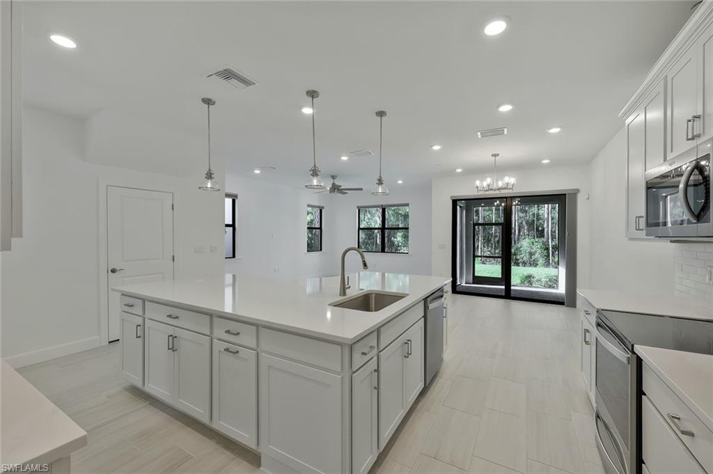 Welcome home to this stunning end-unit townhouse in brand-new SONOMA OAKS! You and your guests will enjoy this spacious open floorplan that features 3 bedrooms / 2.5 baths / 2 car garage and a screened-in lanai with brick pavers and more! Built in 2024, this unit offers over 2000 square feet of living space with high-end upgrades throughout. Featuring impact-resistant hurricane windows and doors, upgraded carpeting in the upstairs area, and custom ceiling fans and kitchen lighting, this unit truly is one of a kind. But that’s not all! Each closet is fully customized by Inspired Closets, the windows each have blackout honeycomb blinds, the sliding glass doors feature a vertiglide patio blind from Hunter Douglas, and all bathroom hardware has been upgraded by Baldwin Brass. The home has an ADT alarm system with doorbell camera ready to be activated and is wired for wall-mounted TVs. Everything is ready for you to move in and start enjoying the Naples lifestyle that features the best selection of dining, shopping, golfing, and gorgeous beaches. Sonoma Oaks is a pet-friendly, family-friendly gated community that includes a heated community pool and cabana and is conveniently located between Vanderbilt Beach Rd and Collier Blvd.