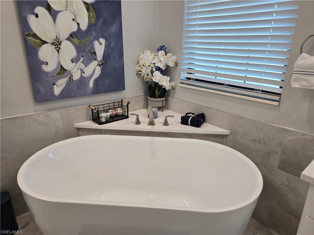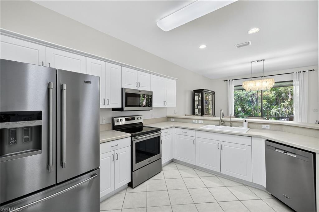 Skip the updates—this home is already done for you. Every detail has been thoughtfully finished, blending modern comfort with a touch of luxury. This spacious end unit offers three bedrooms plus a versatile den, ideal for a home office or guest suite. The kitchen immediately stands out with quartzite countertops and a premium appliance package, combining beauty and function in one sleek space. You’ll also find LVT flooring throughout and a whole-home Sonos sound system that set the tone for relaxed, modern living. The south-facing exposure fills the home with natural light, while the primary suite invites you to unwind, with a Jacuzzi soaking tub and relaxing, high-end finishes that create a peaceful retreat. The home also offers a 2-car garage for added convenience. This gated community features peaceful water views and resort-style amenities including a pool, tennis and basketball courts, and a fitness center. Located near Founders Square, beaches, dining, and I-75, this home has all the updates, location, and ease you’ve been searching for.